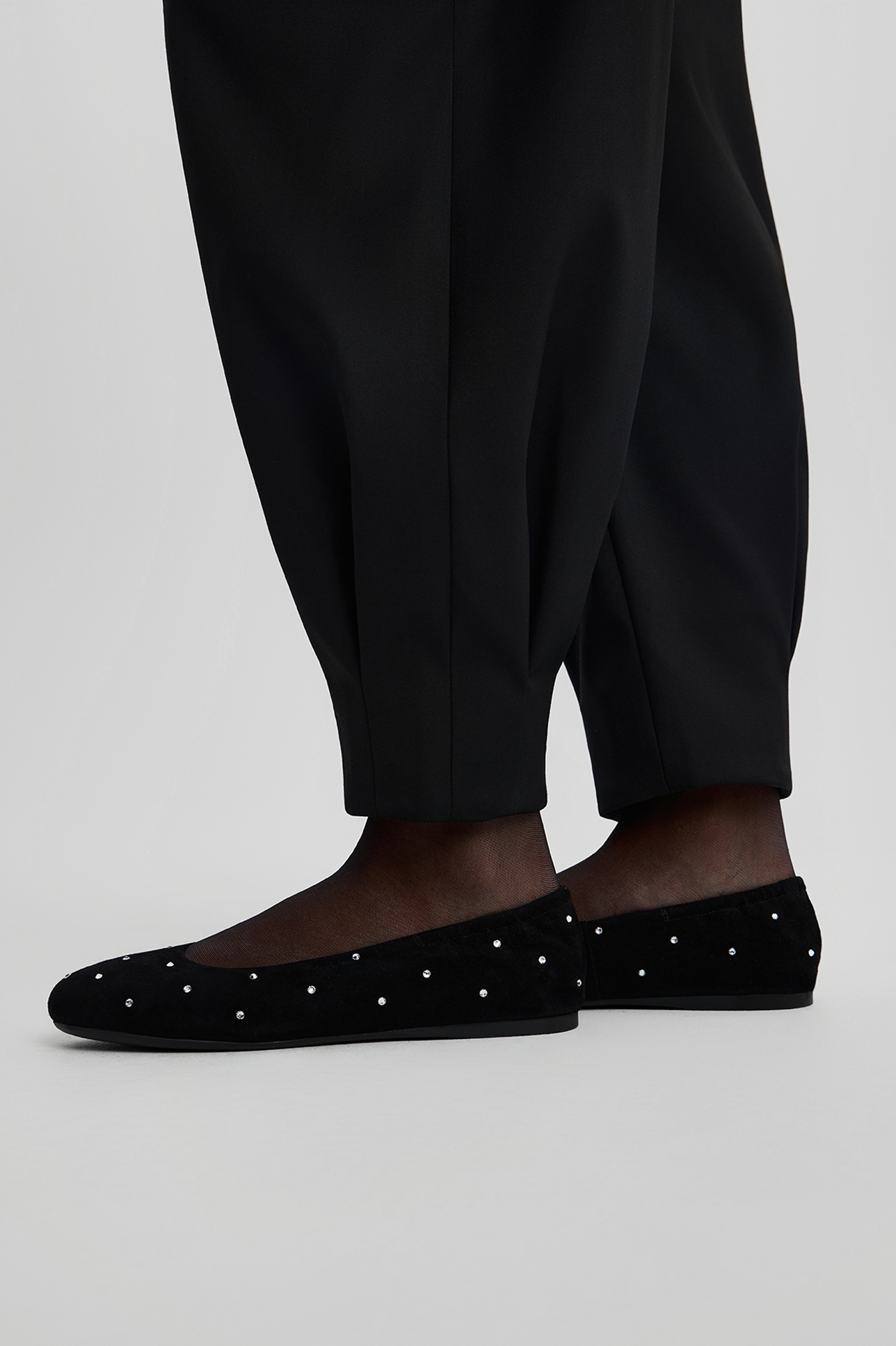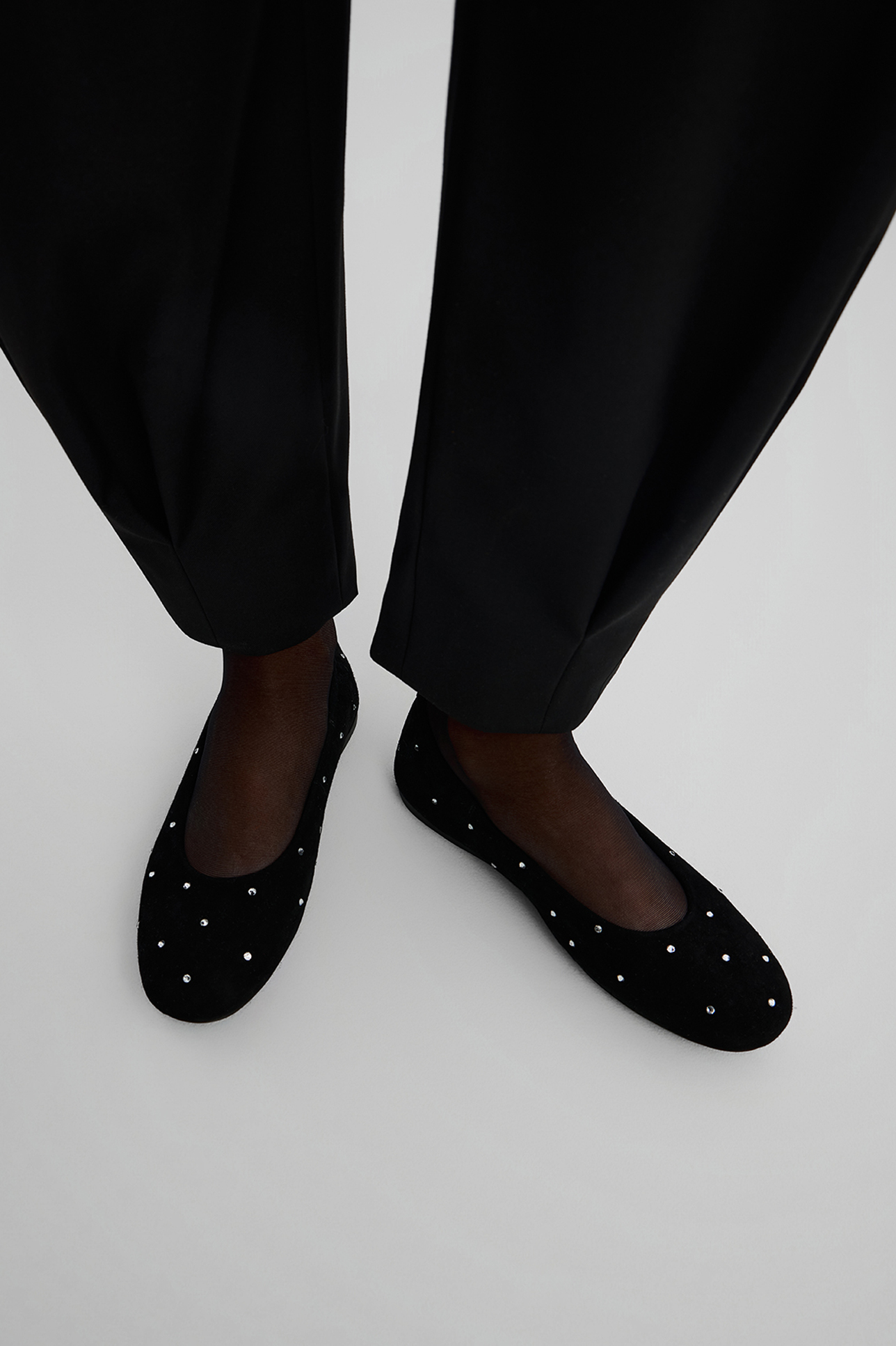 Мягкие балетки с кристаллами черного цвета