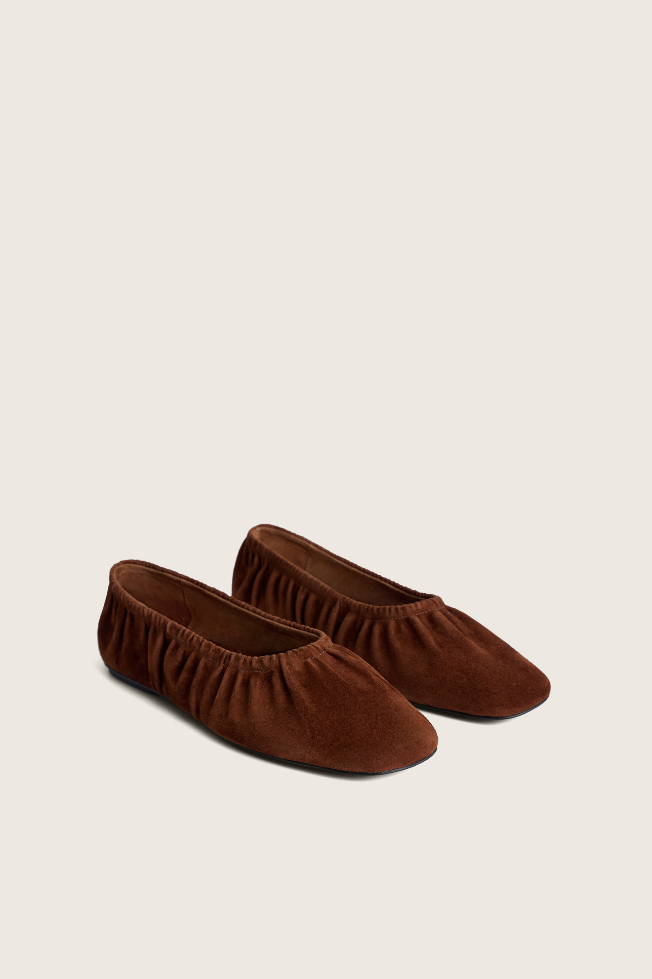 Балетки со сборкой коричневого цвета