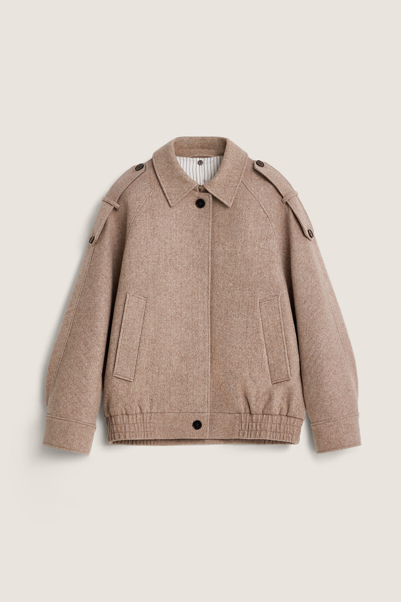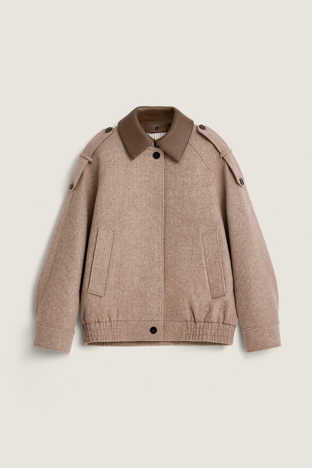 Шерстяной бомбер с отделкой из кожи