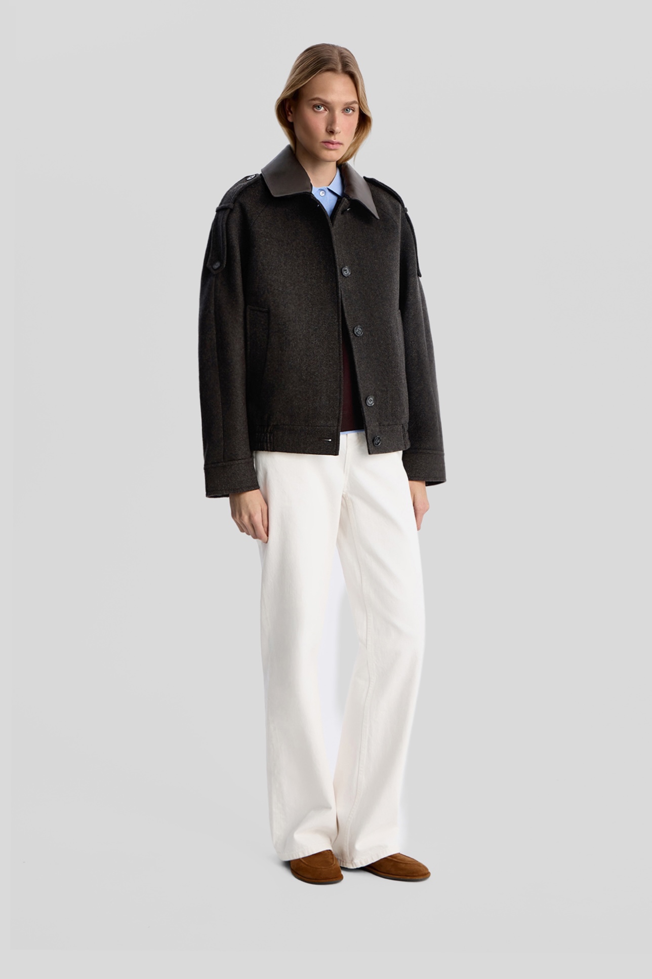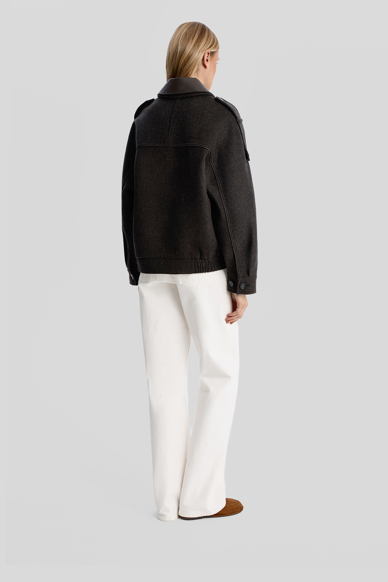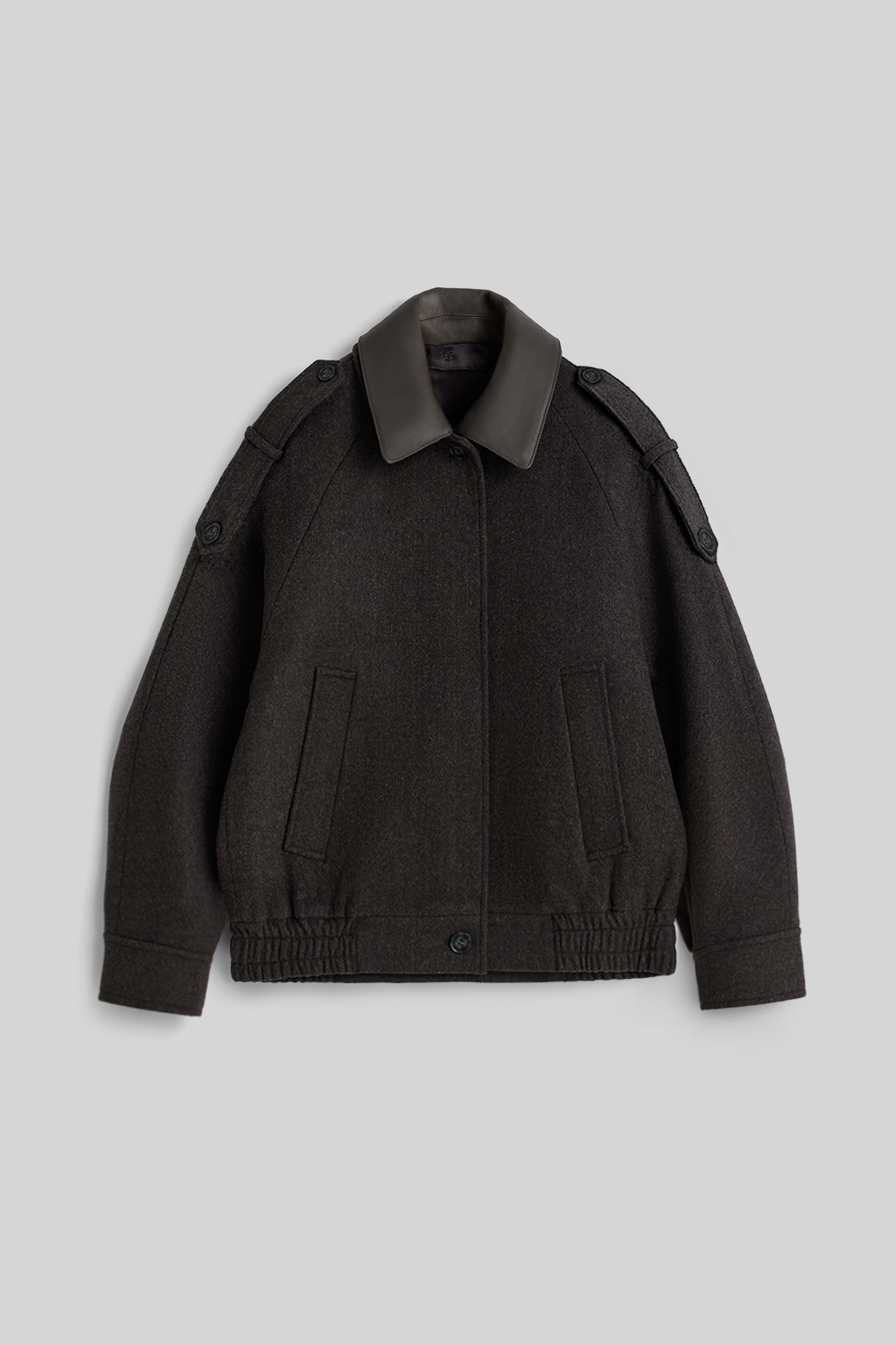 Шерстяной бомбер с отделкой из кожи