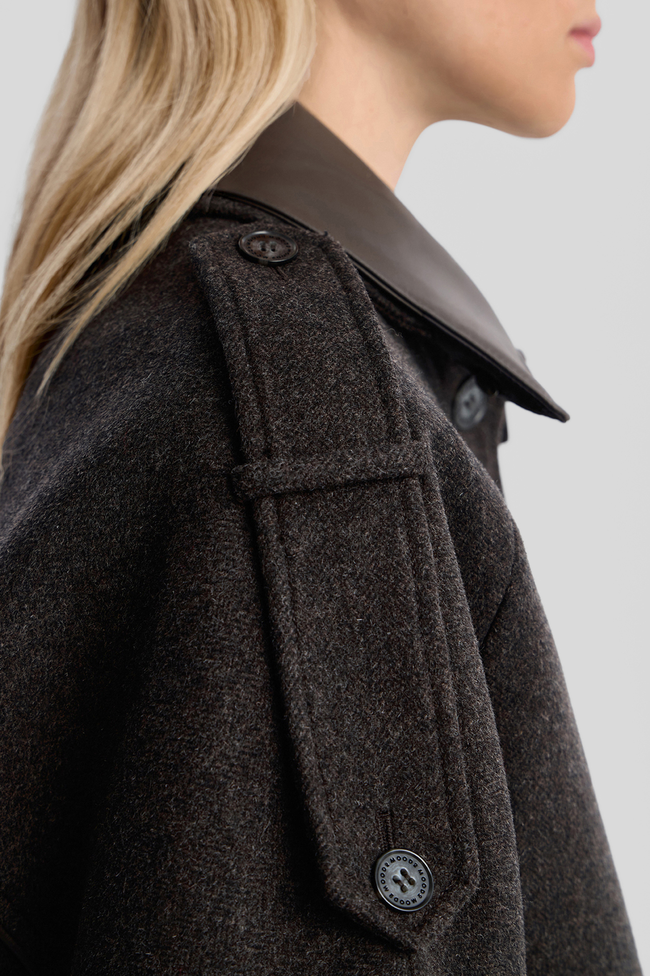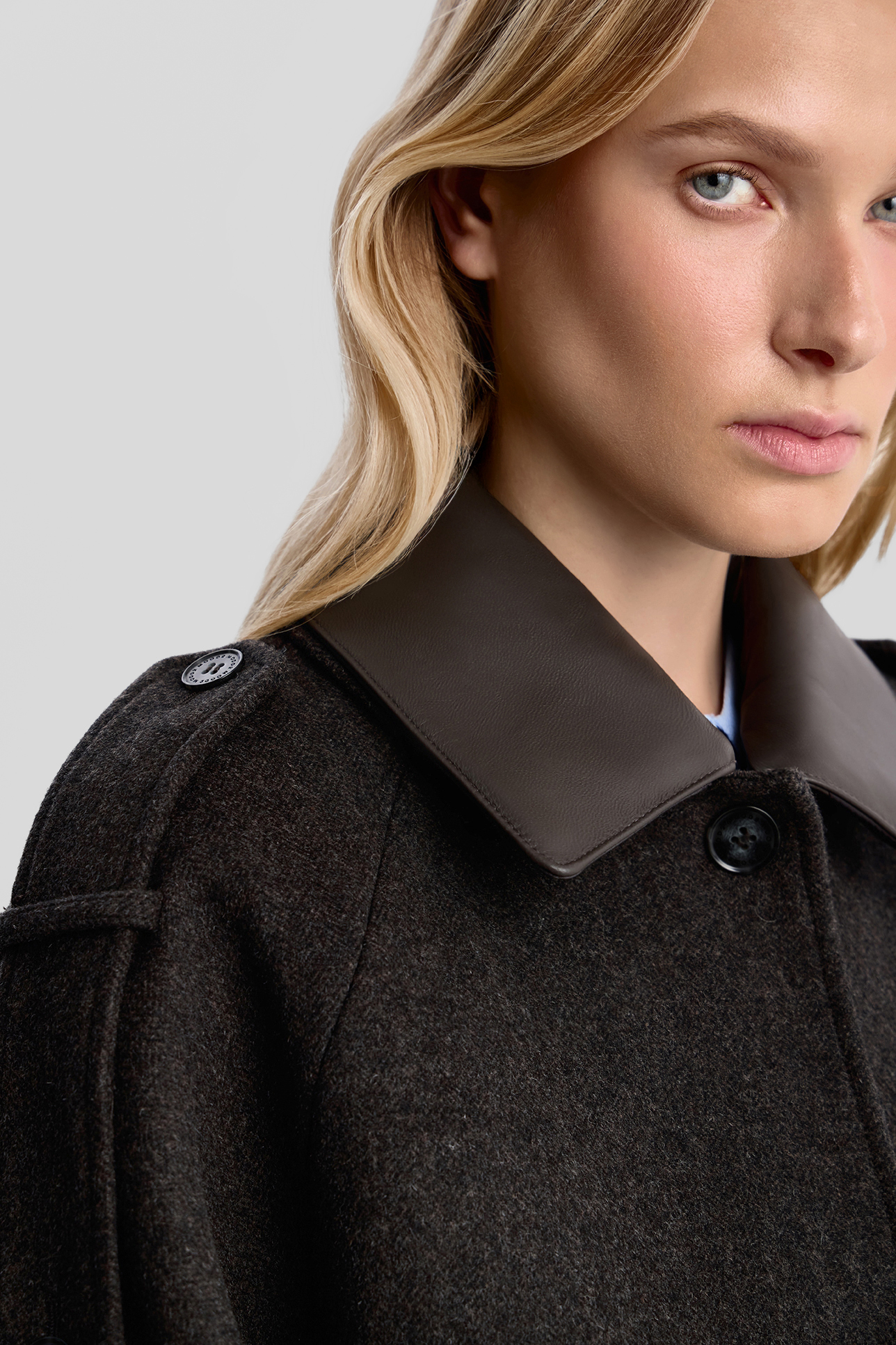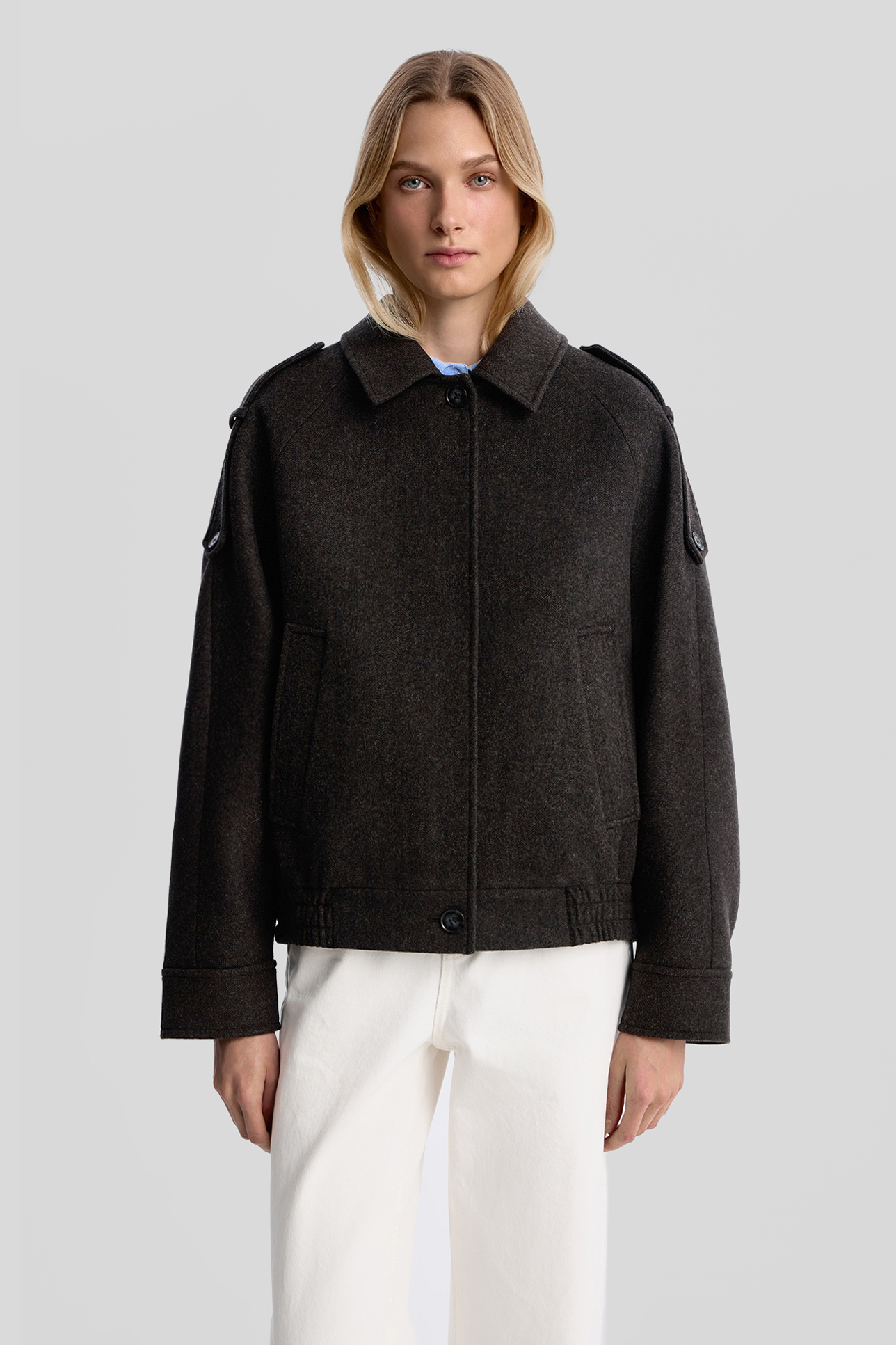 Шерстяной бомбер с отделкой из кожи
