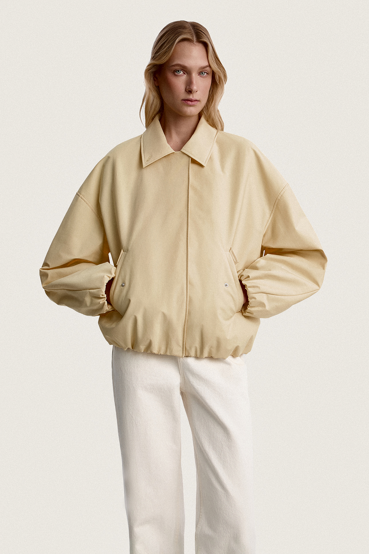 Утепленный бомбер с акцентным воротником