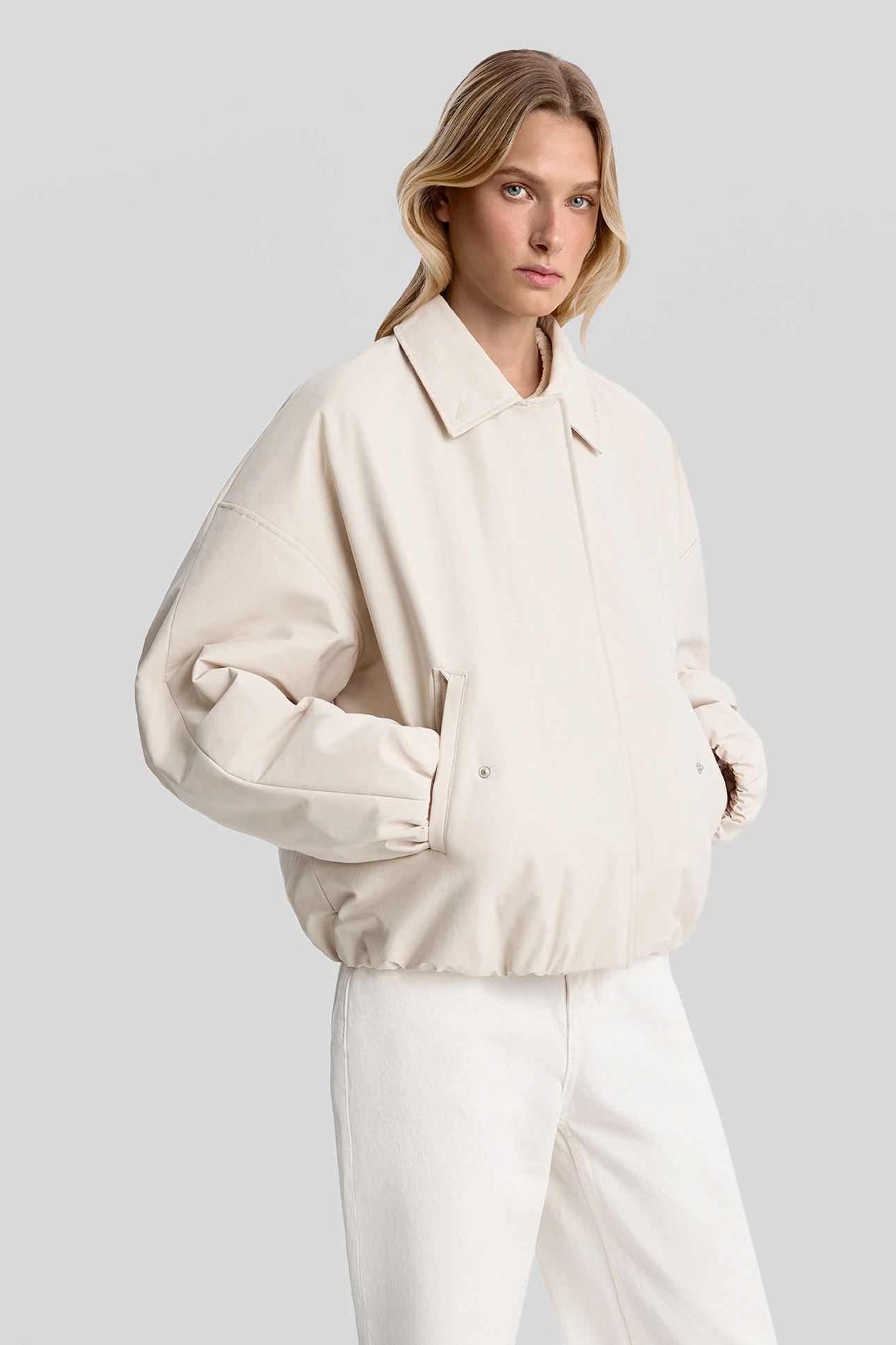 Утепленный бомбер с акцентным воротником