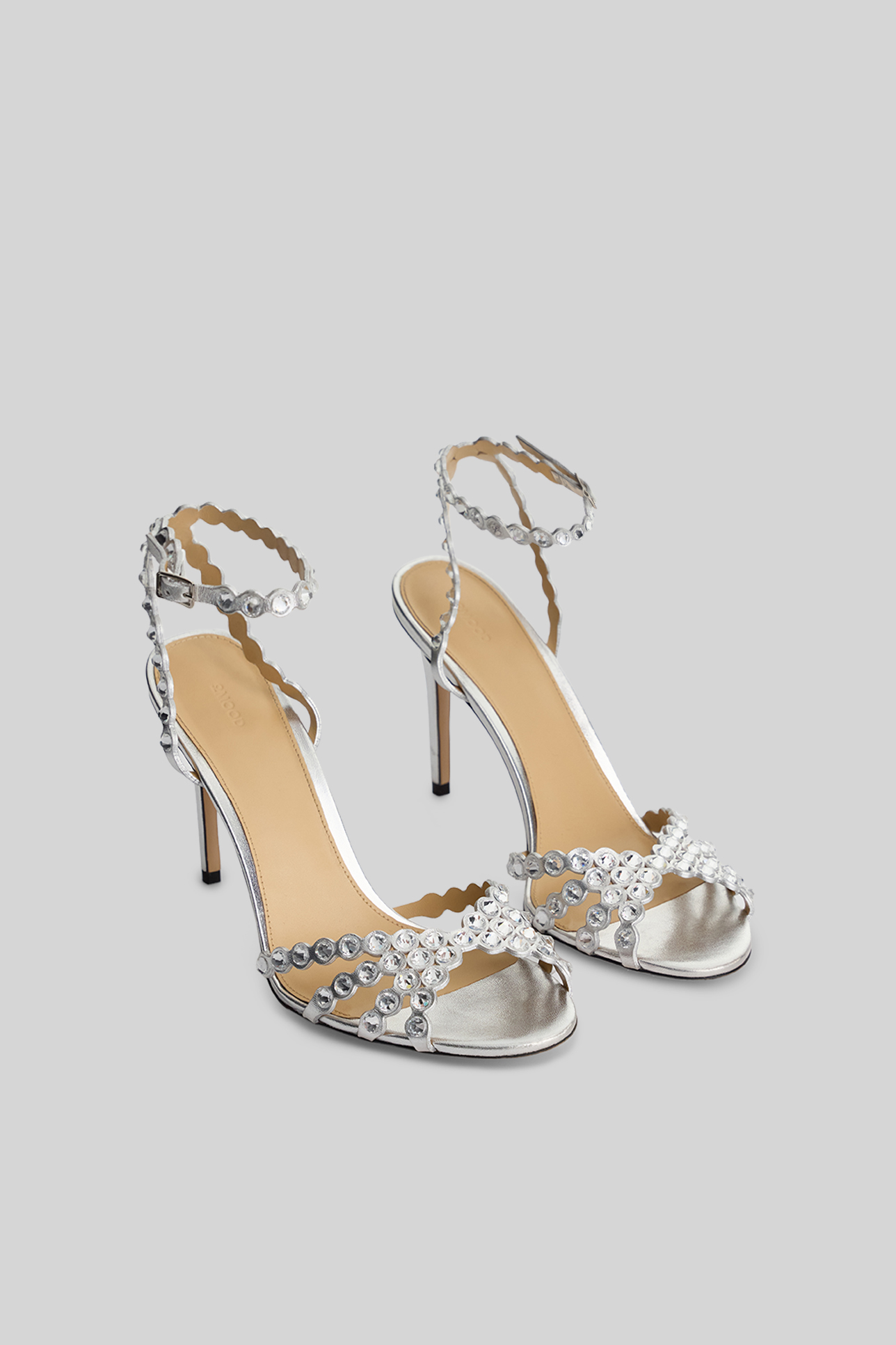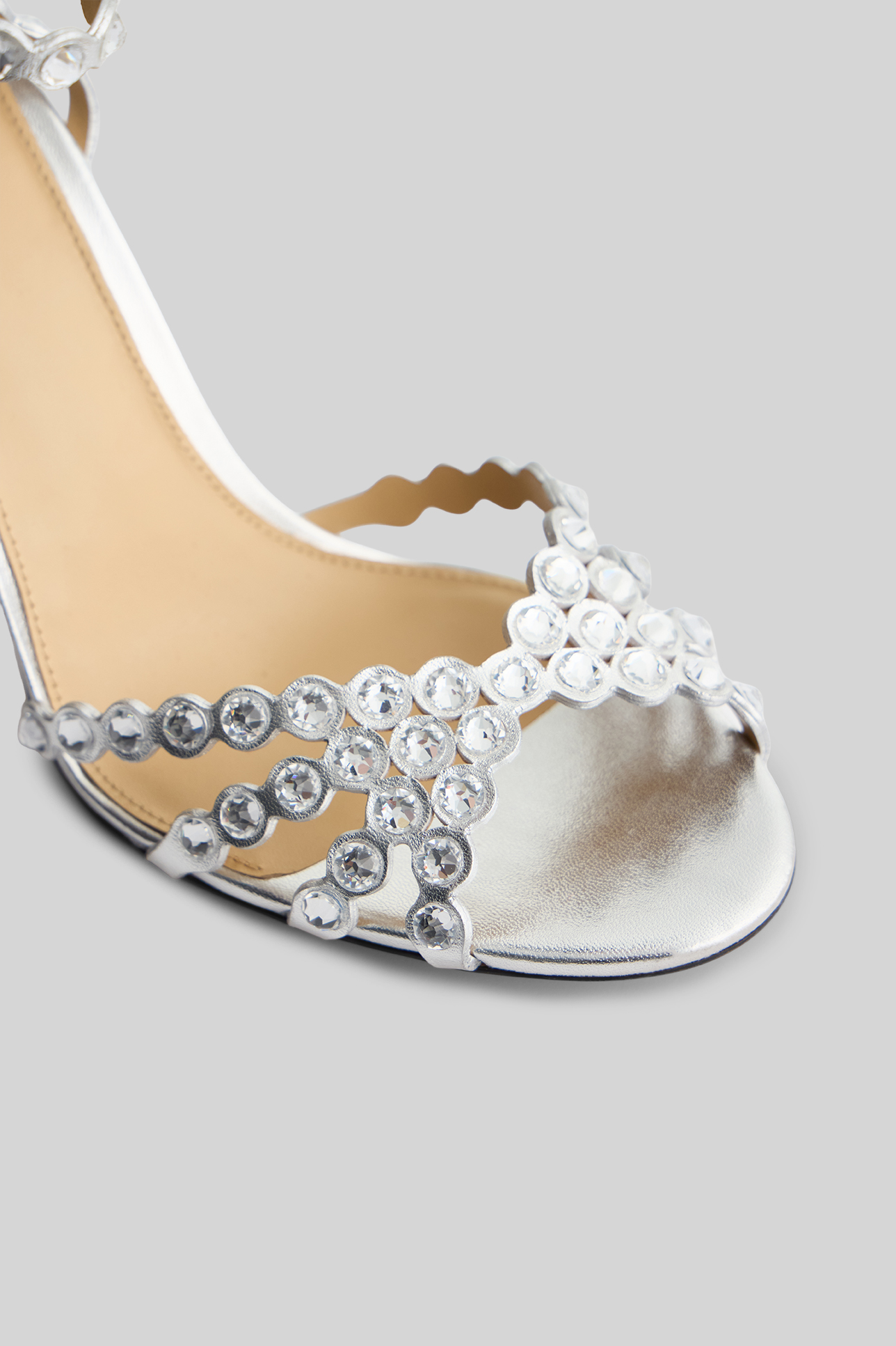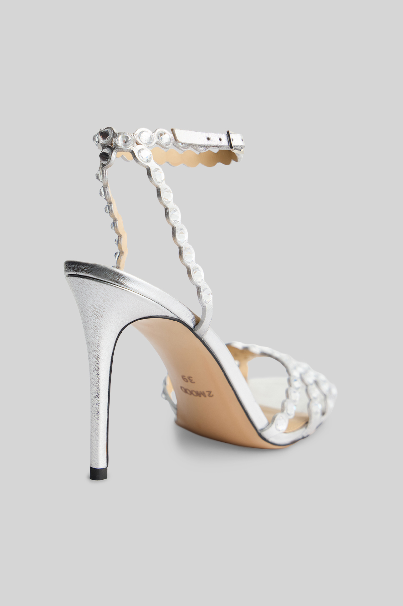 Босоножки со стразами серебряного цвета
