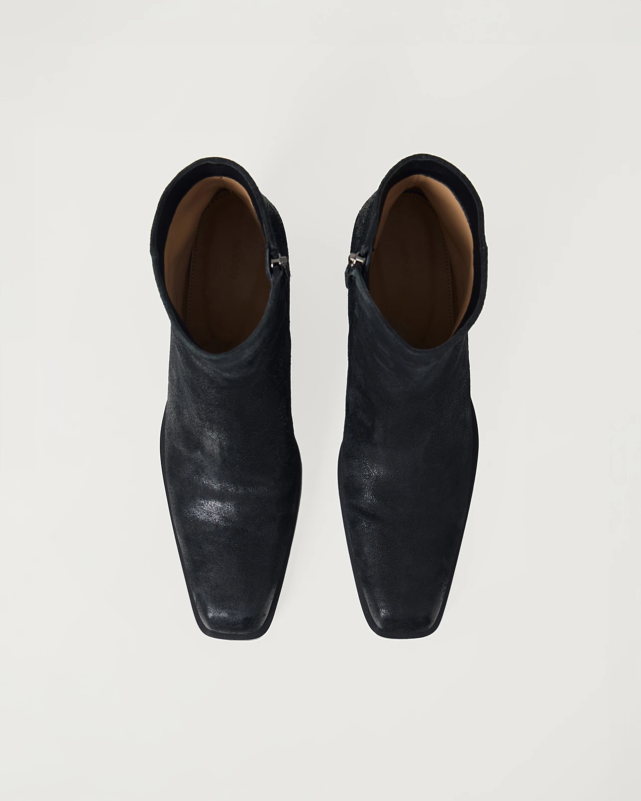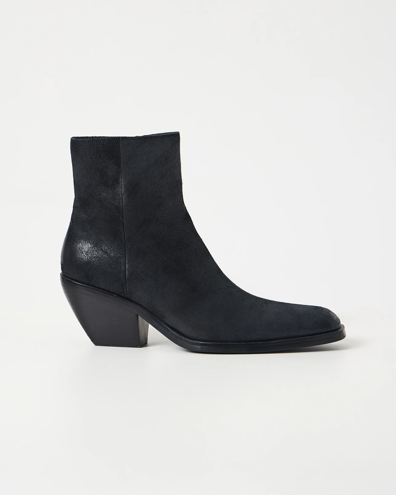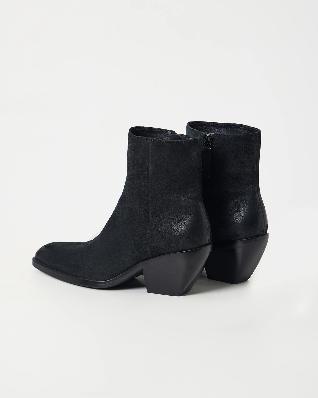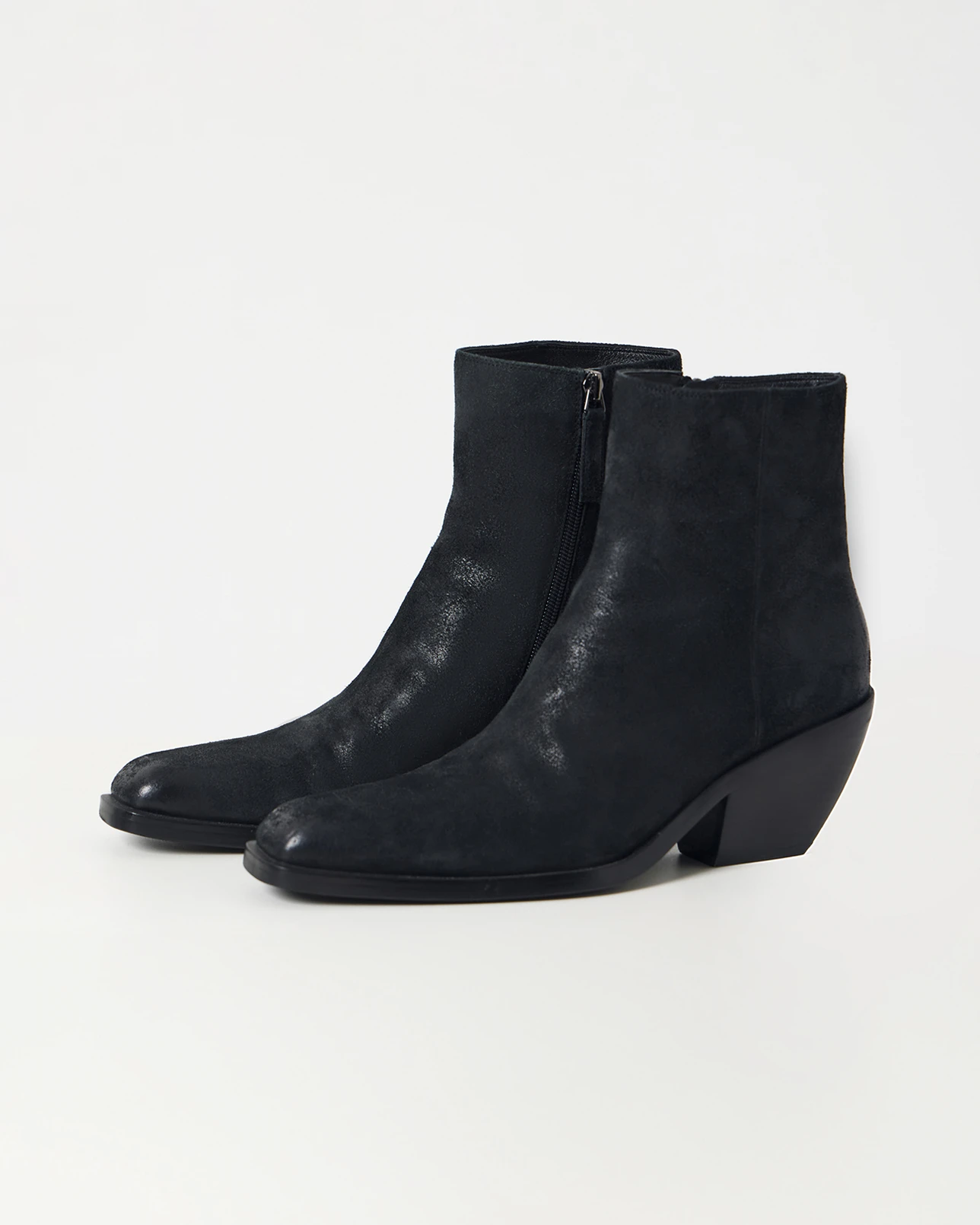 Ботильоны из замши на скошенном каблуке черного цвета