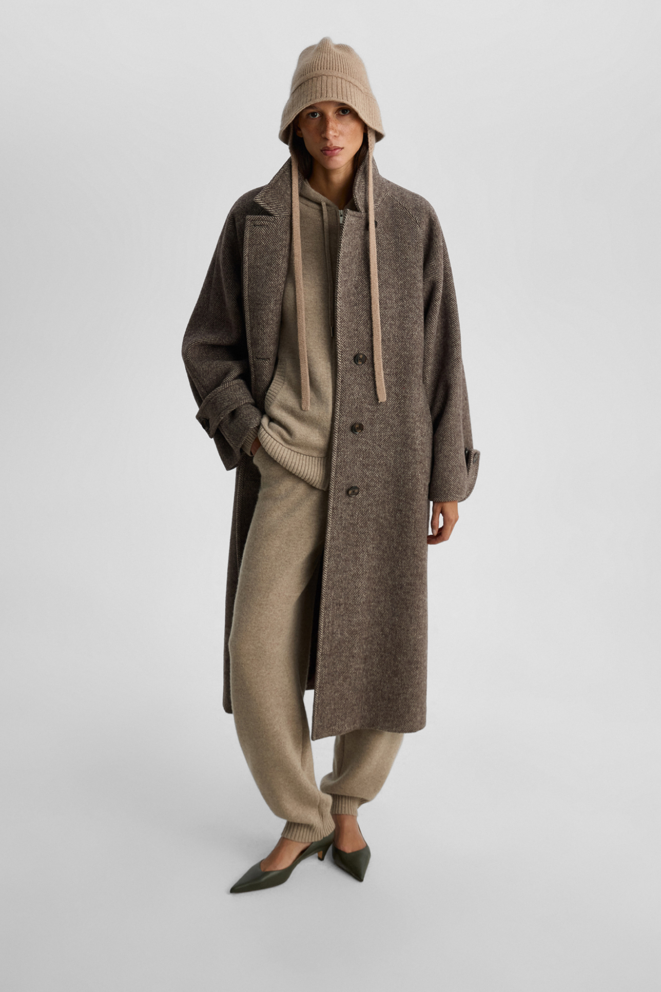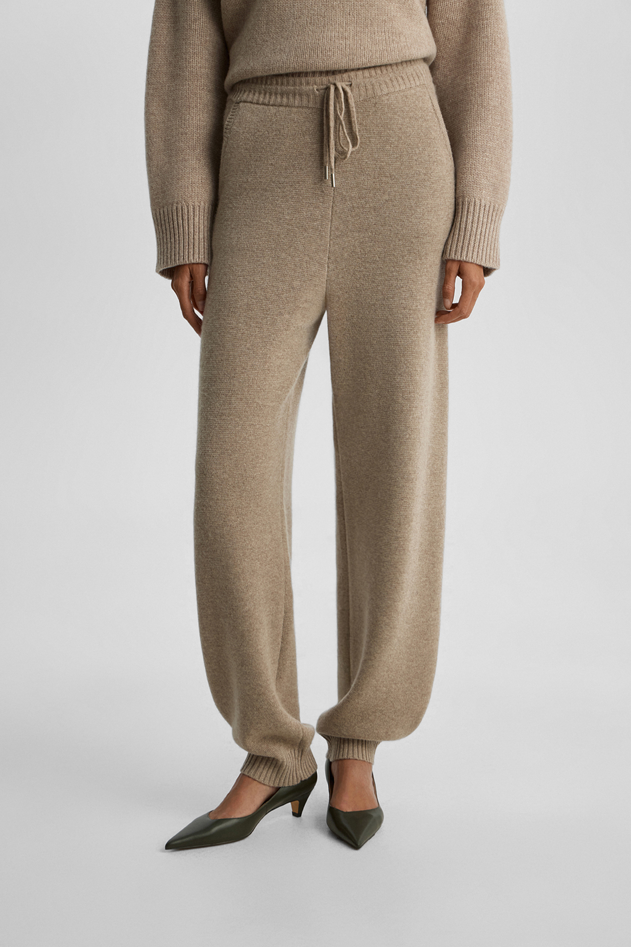 Брюки-баллоны из шерсти с добавлением кашемира бежевого цвета