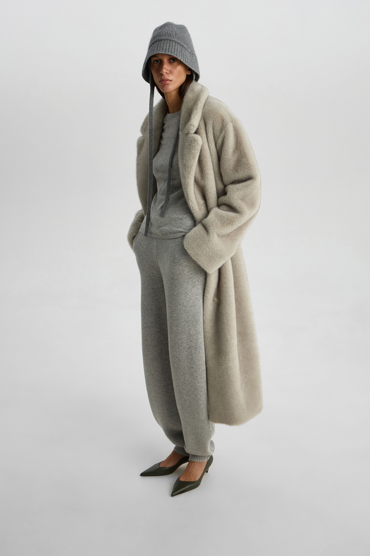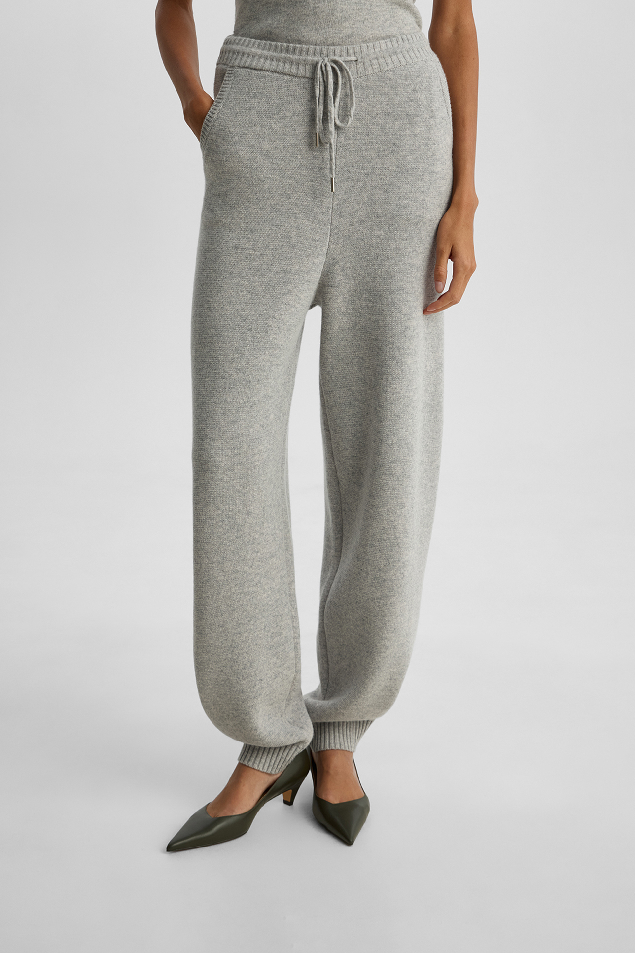 Брюки-баллоны из шерсти с добавлением кашемира светло-серого цвета