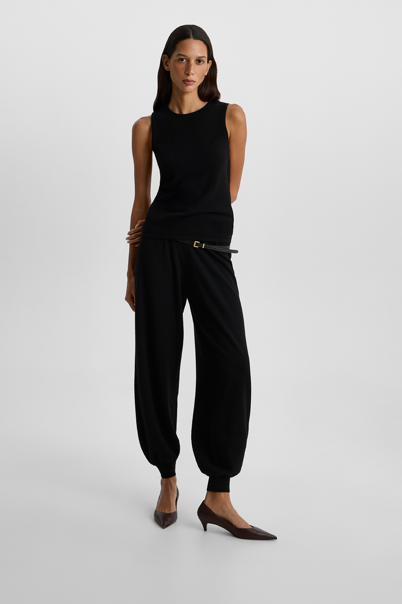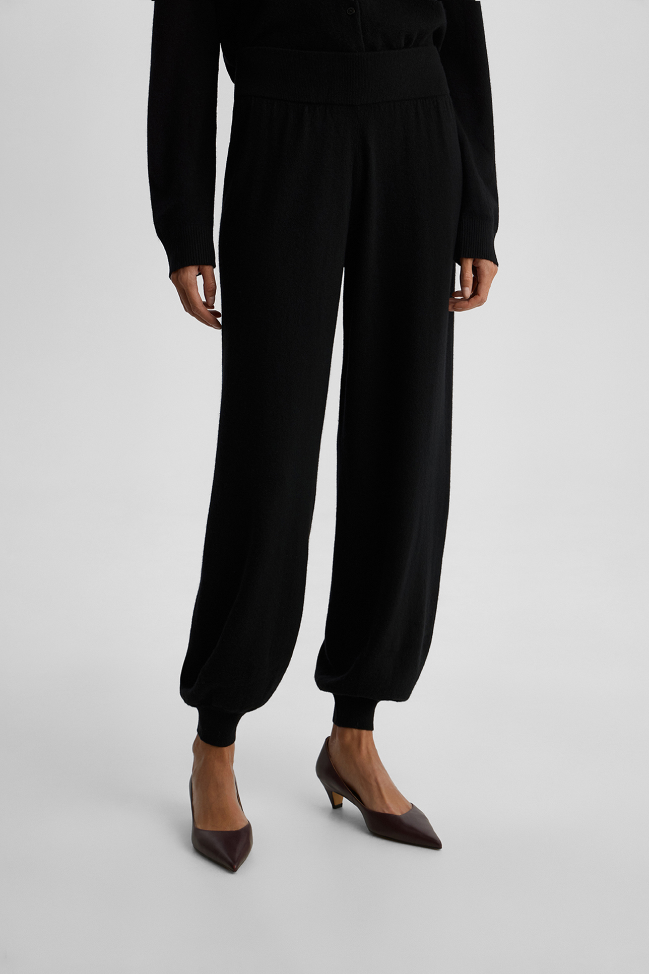 Брюки-аладдины из шерсти с добавлением кашемира черного цвета