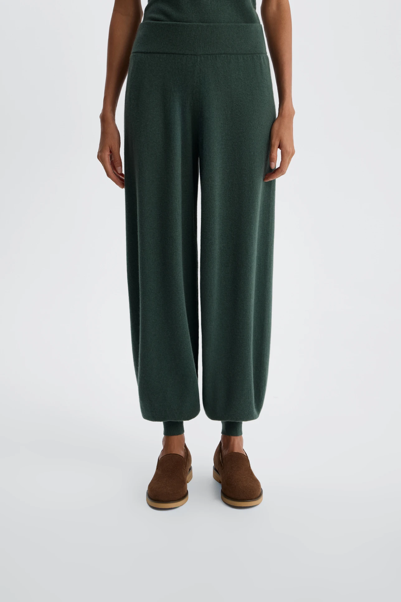 Брюки-аладдины из шерсти с добавлением кашемира изумрудного цвета