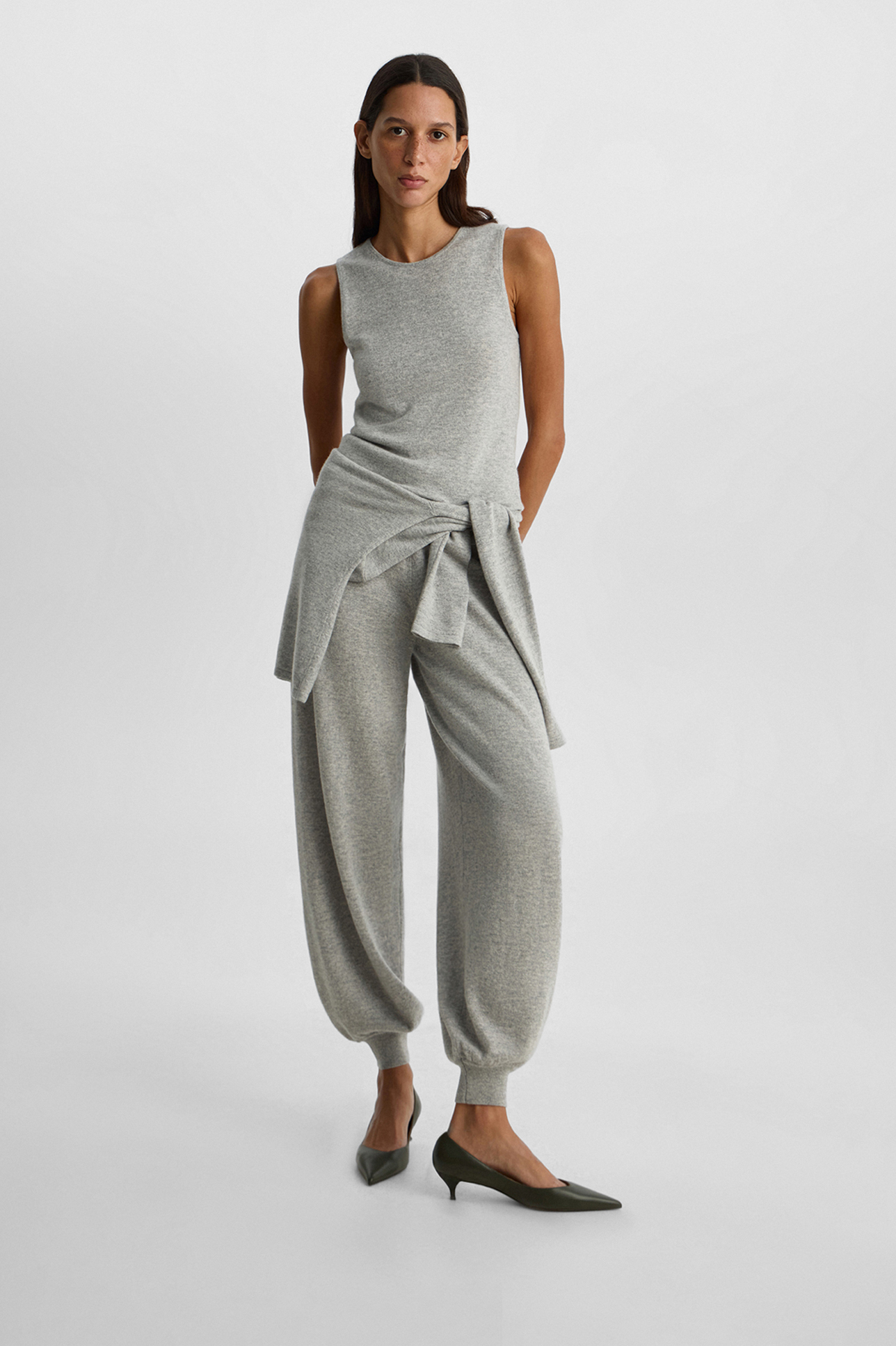Брюки-аладдины из шерсти с добавлением кашемира светло-серого цвета