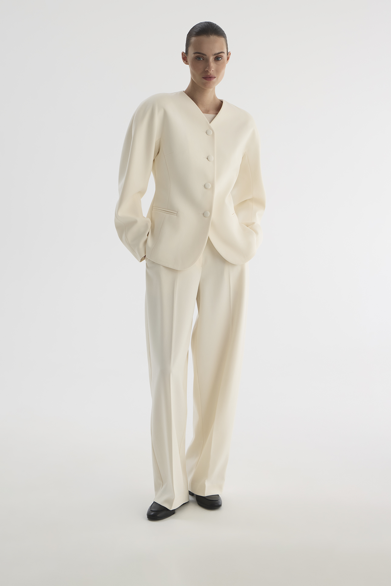 Брюки-бананы молочного цвета