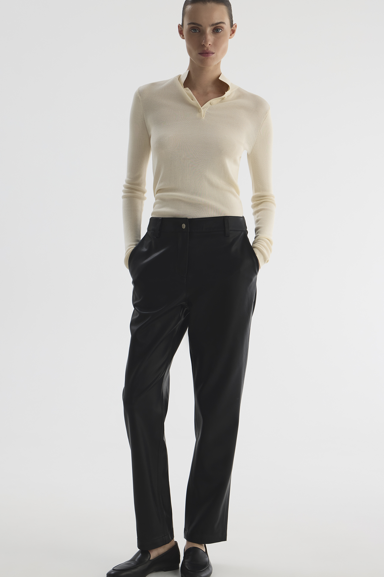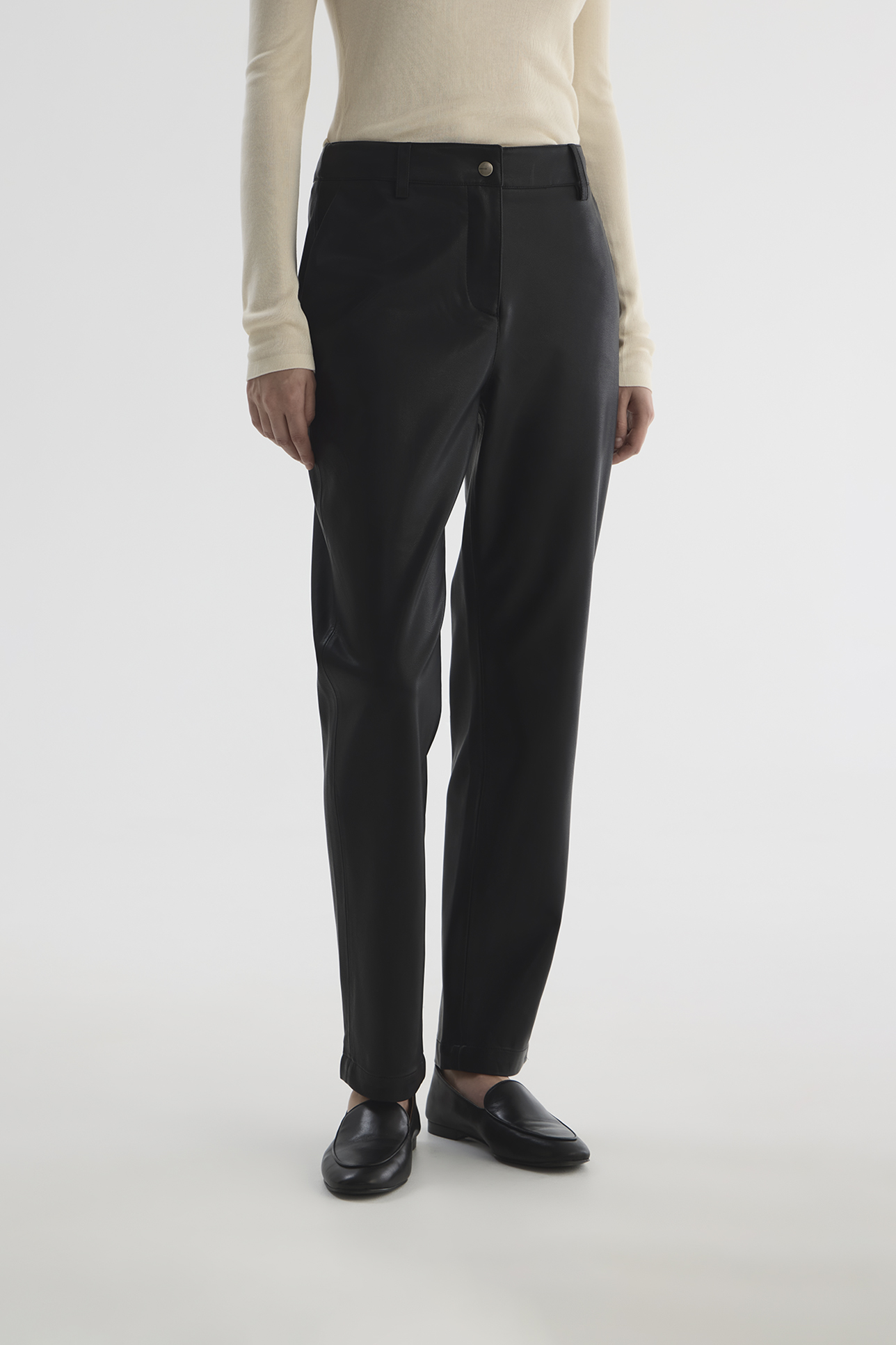 Брюки из экокожи черного цвета