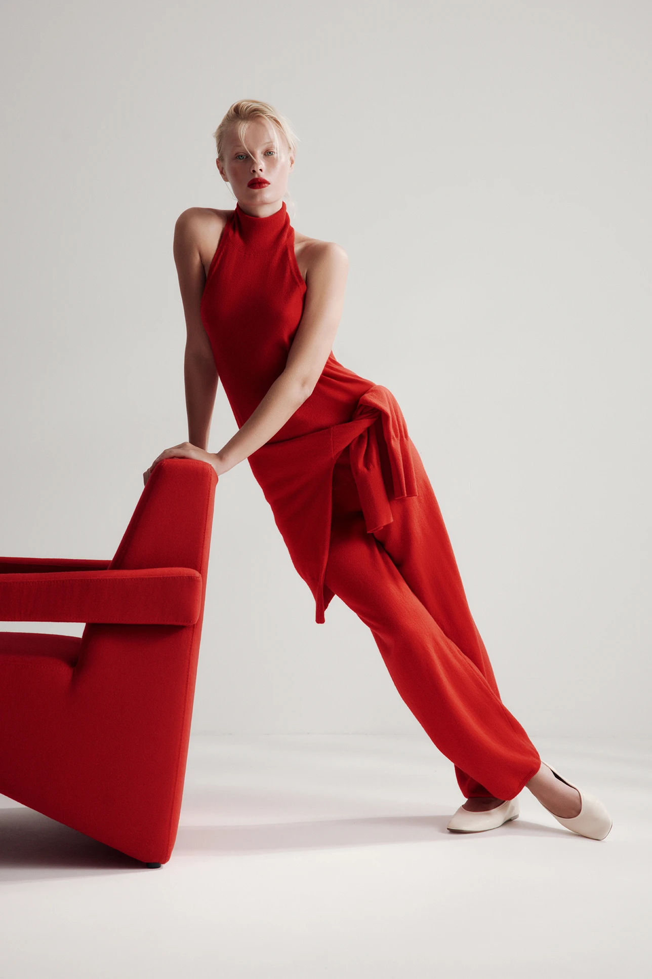 Брюки из кашемира красного цвета