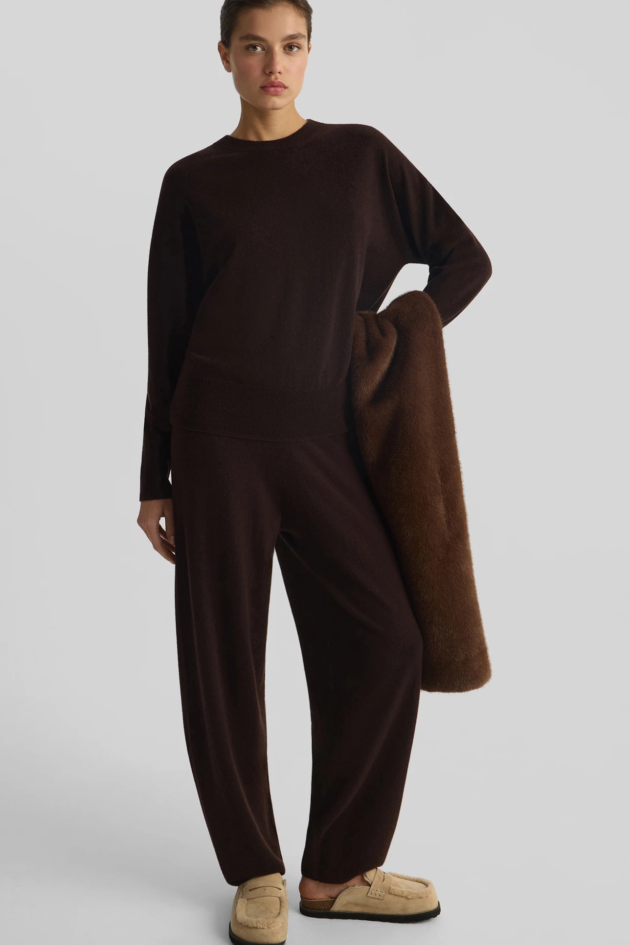 Брюки из кашемира шоколадного цвета