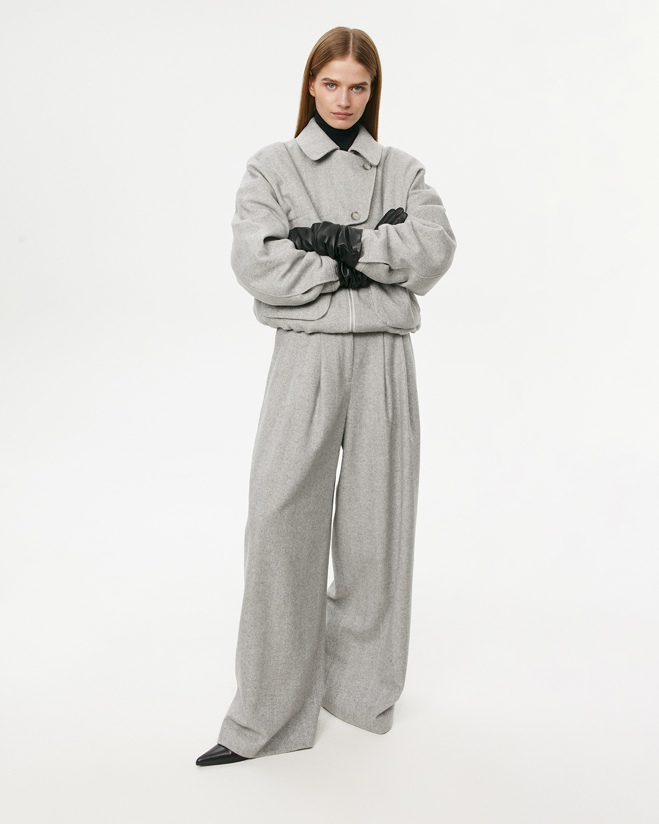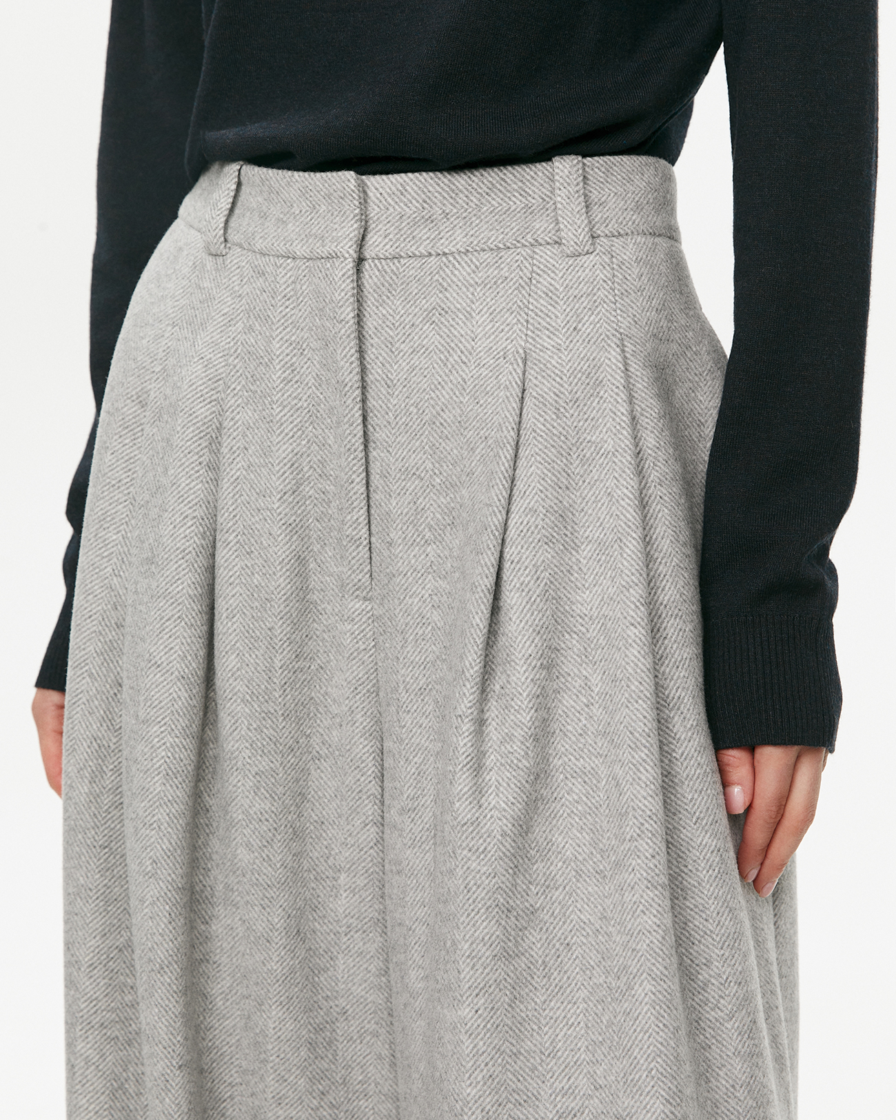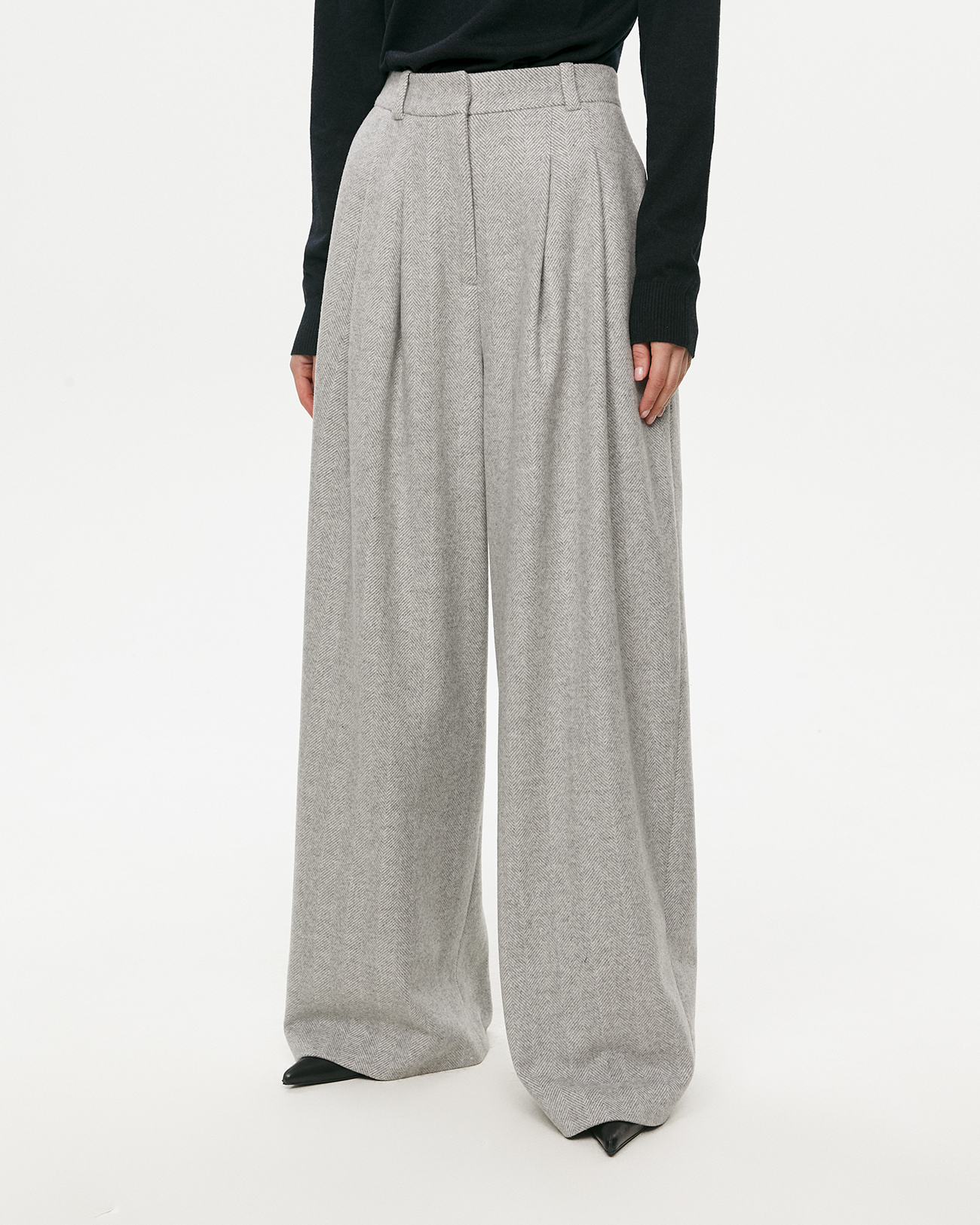 Брюки из шерсти в елочку светло-серого цвета