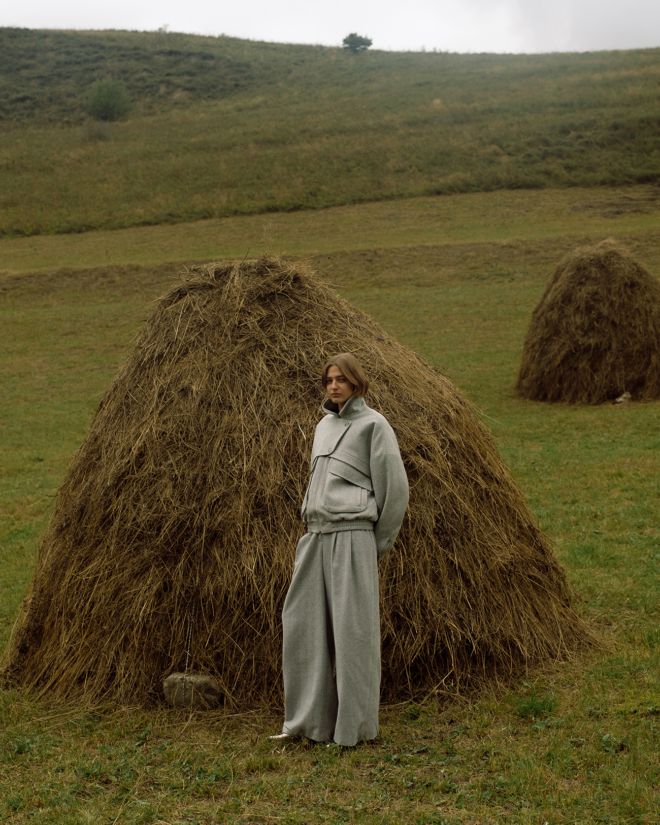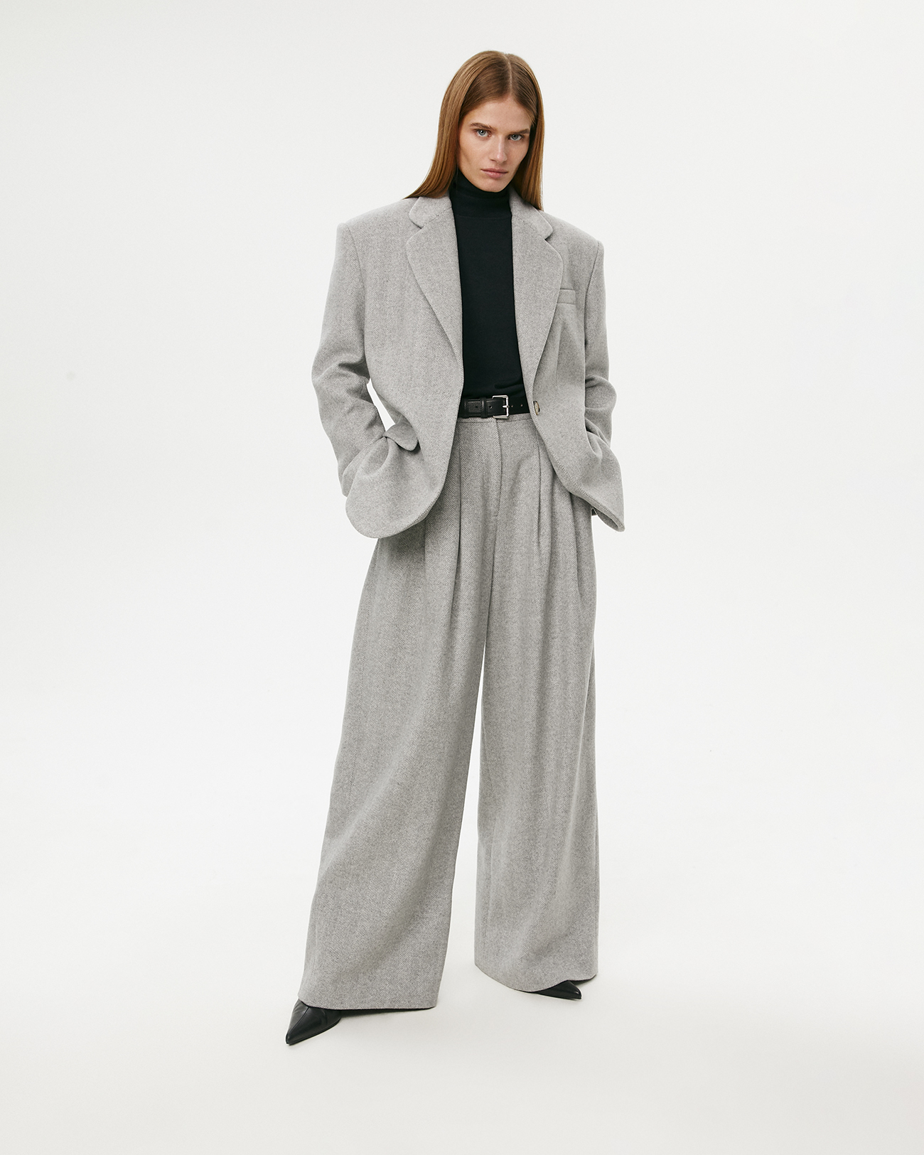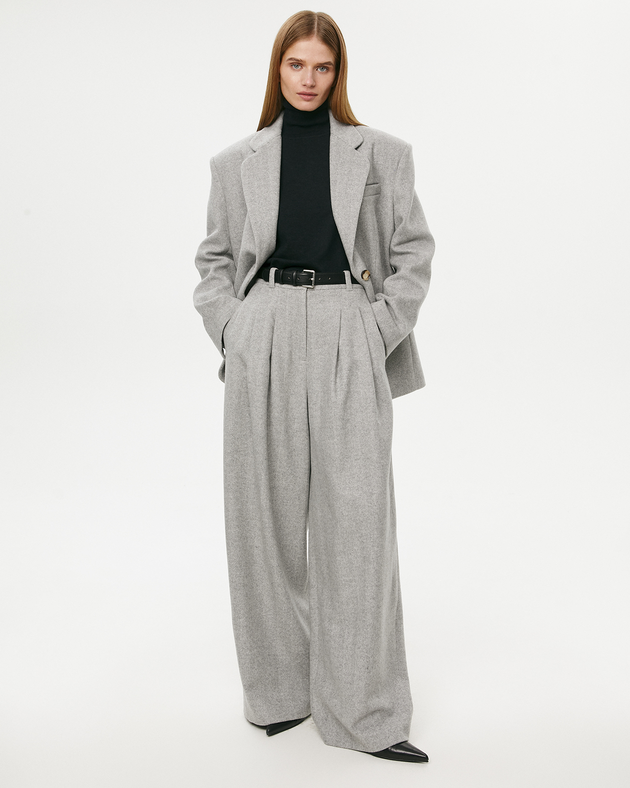 Брюки из шерсти в елочку светло-серого цвета