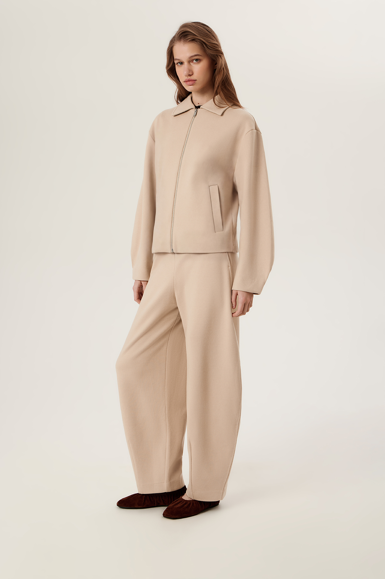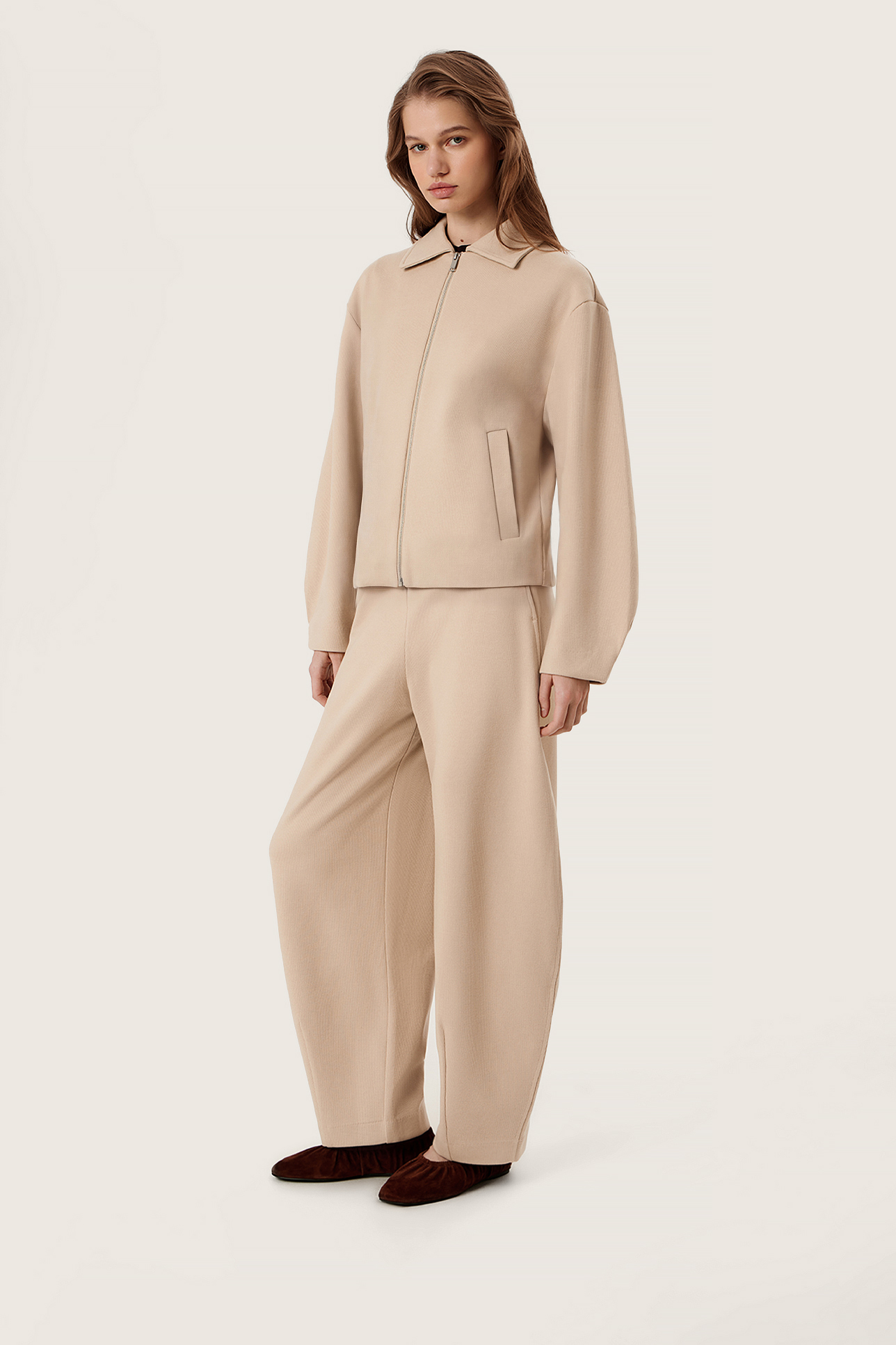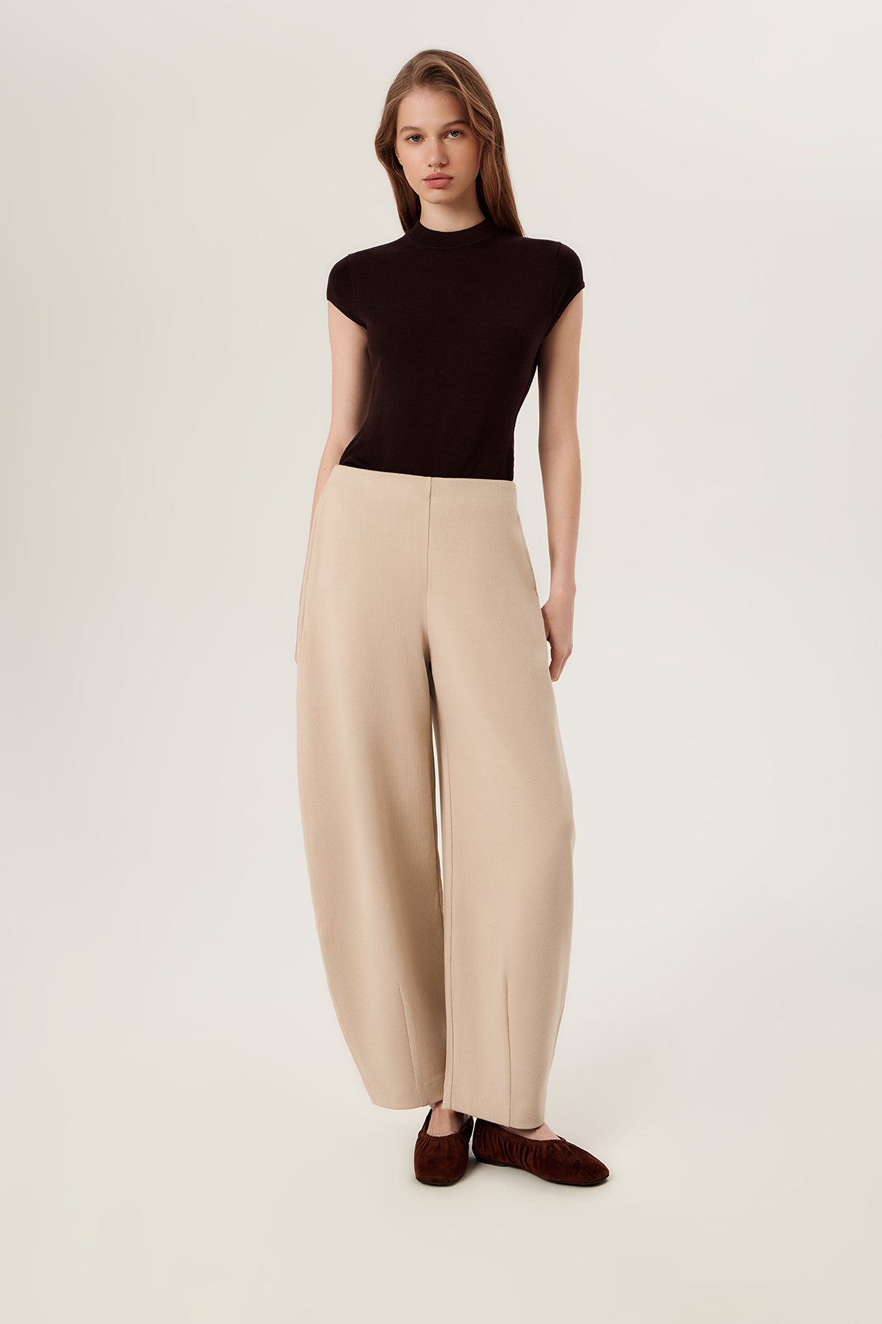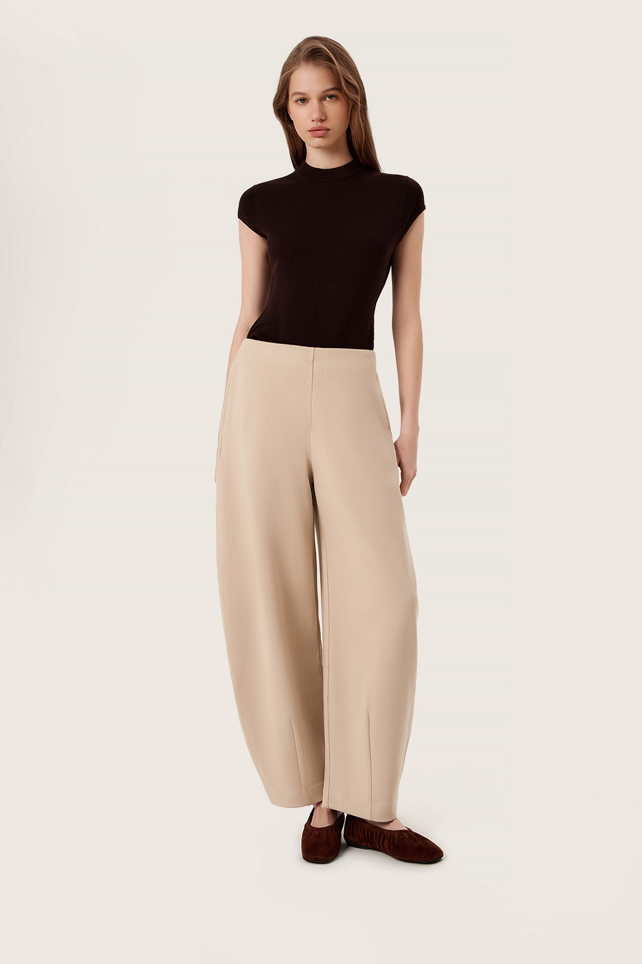 Брюки широкие бежевого цвета