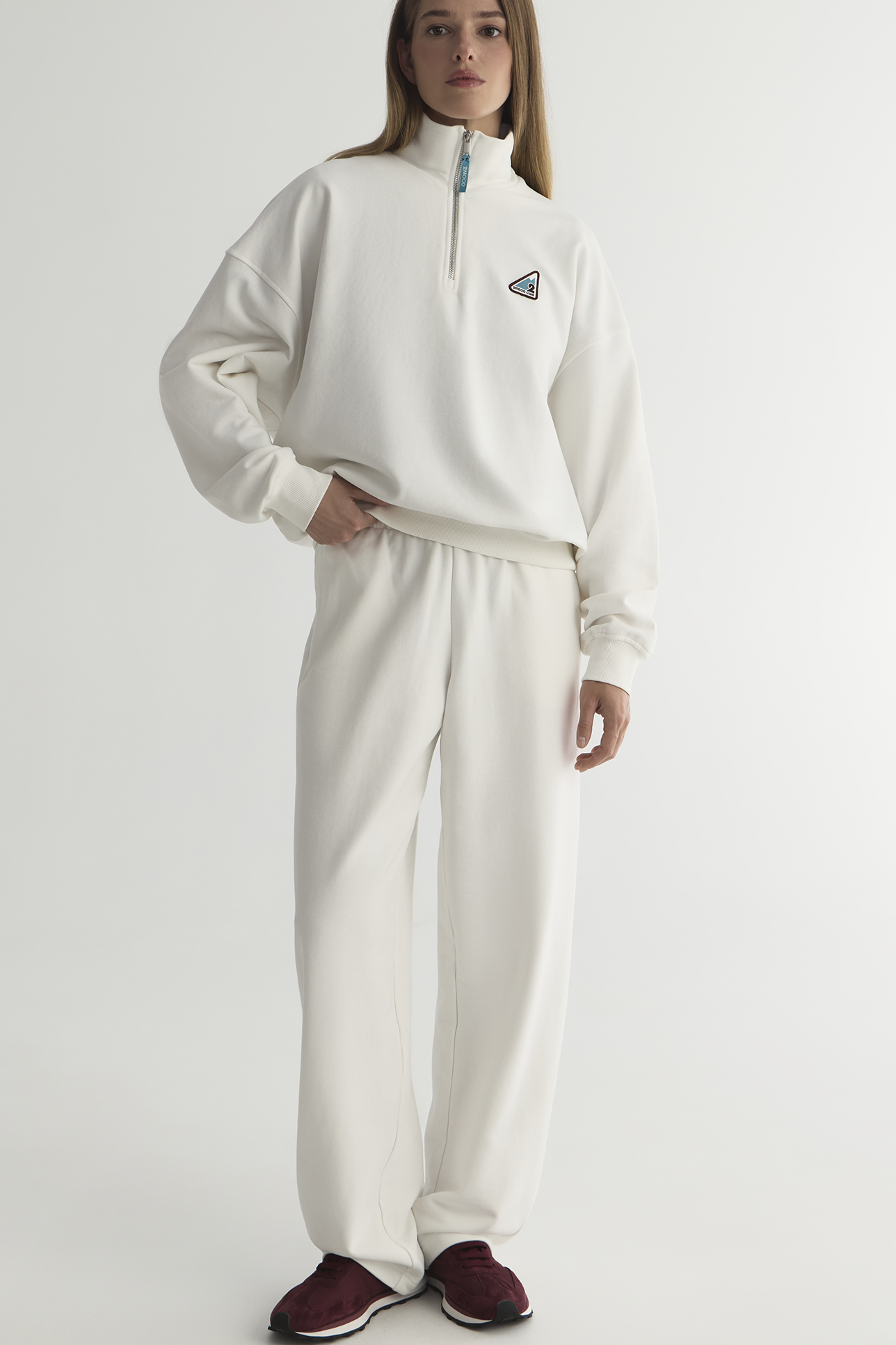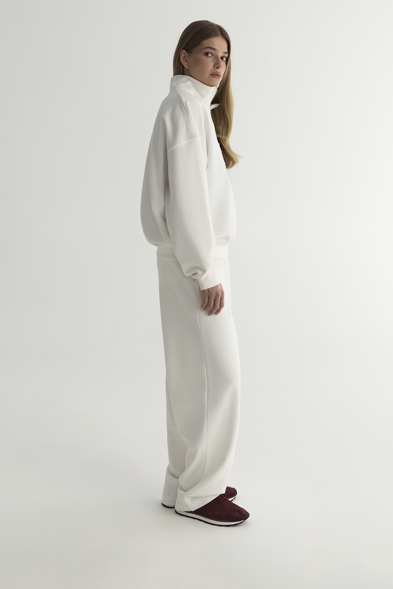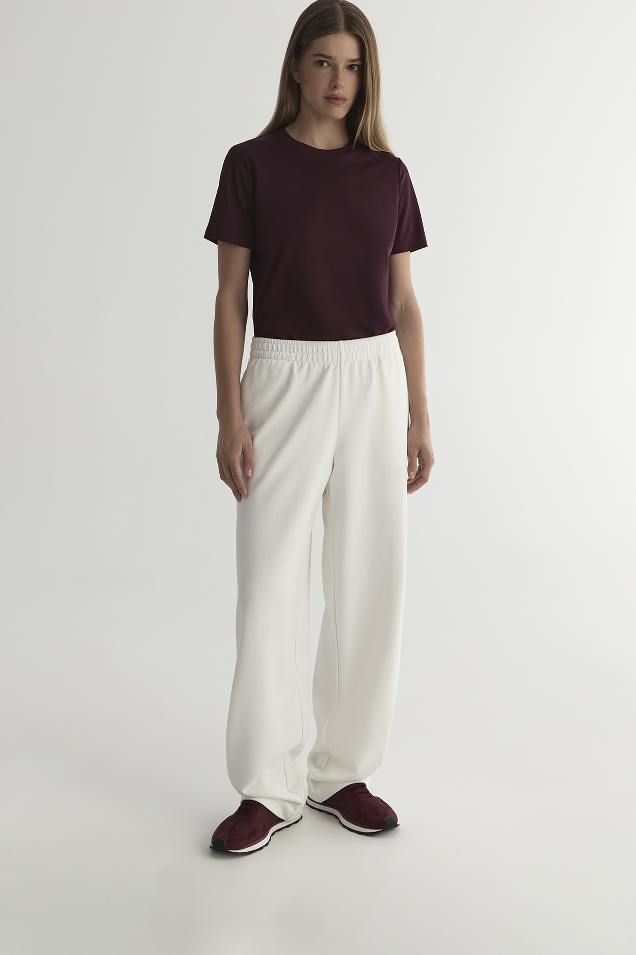 Брюки из футера молочного цвета