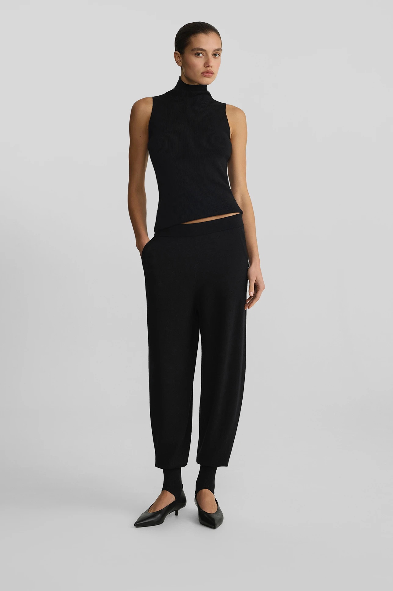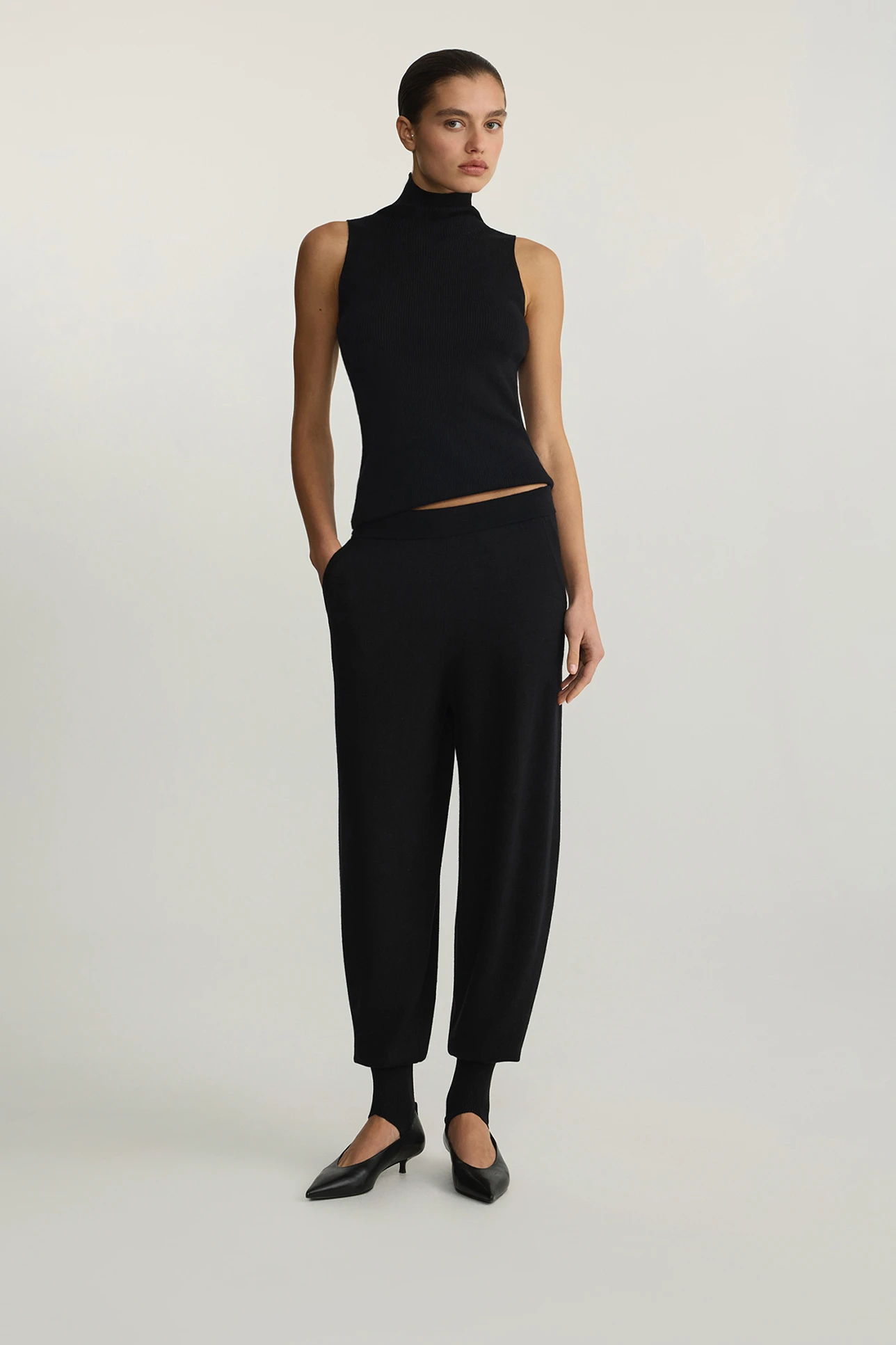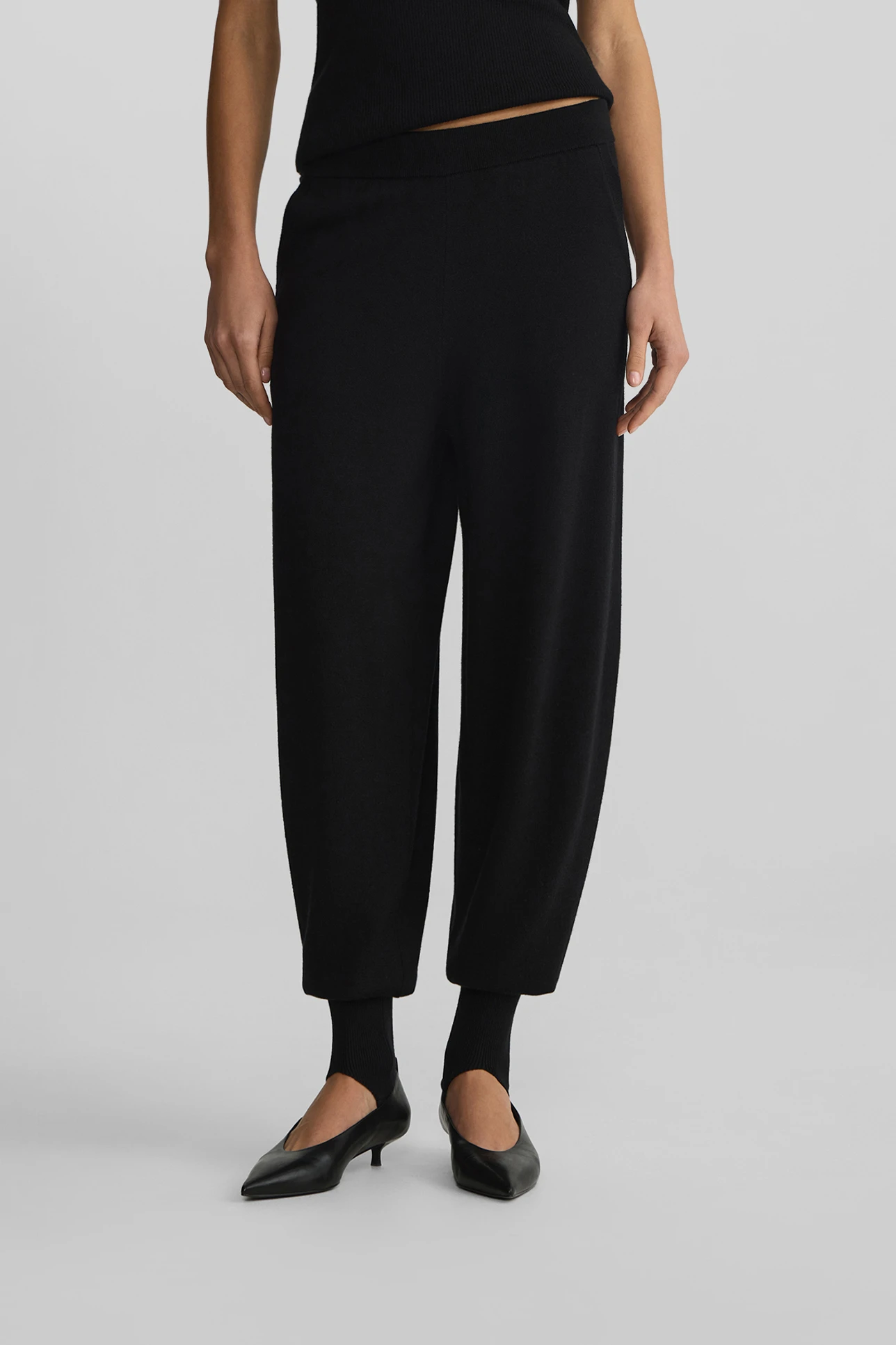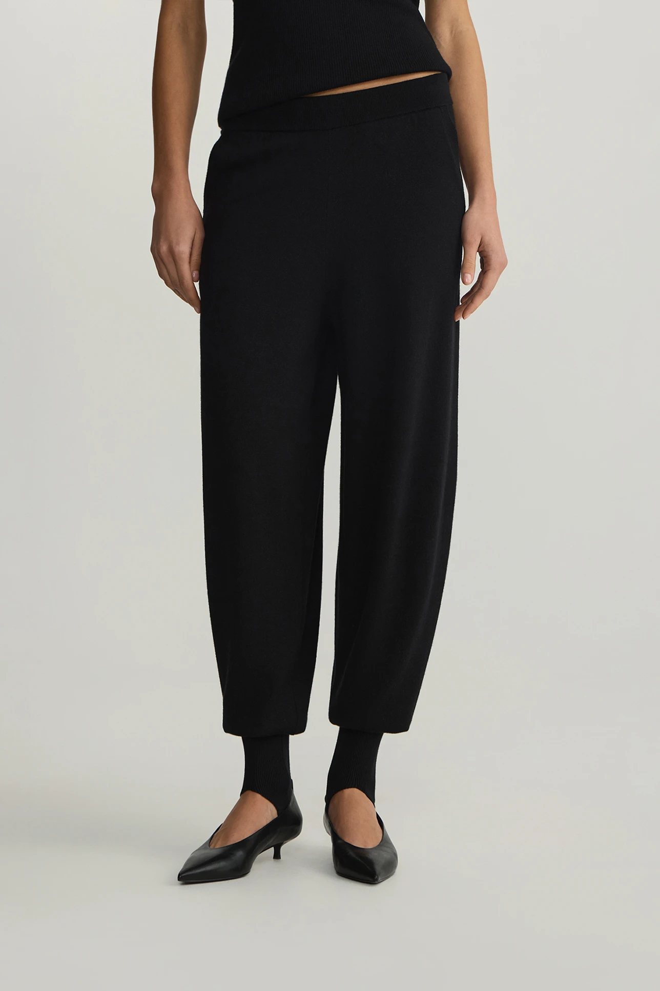 Брюки со штрипками из мериносовой шерсти черного цвета