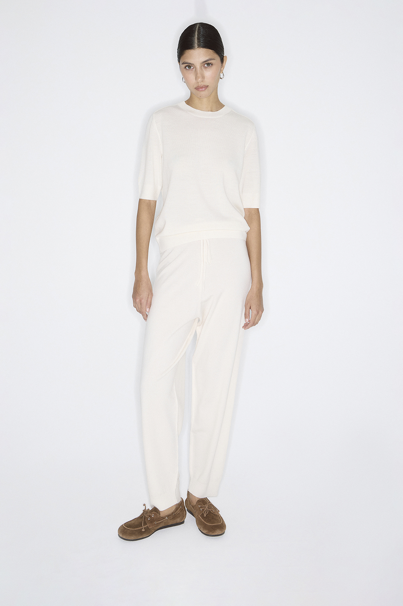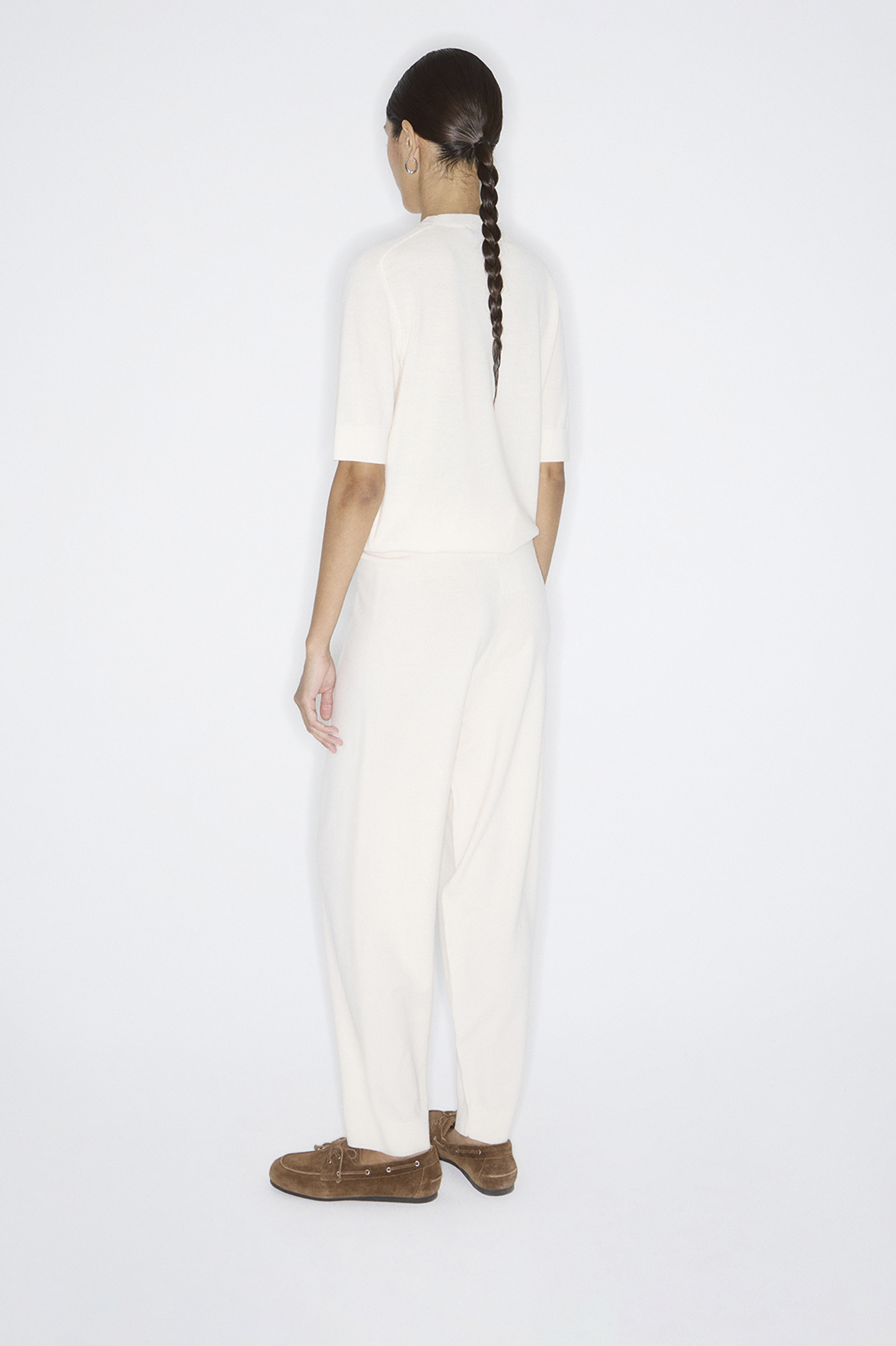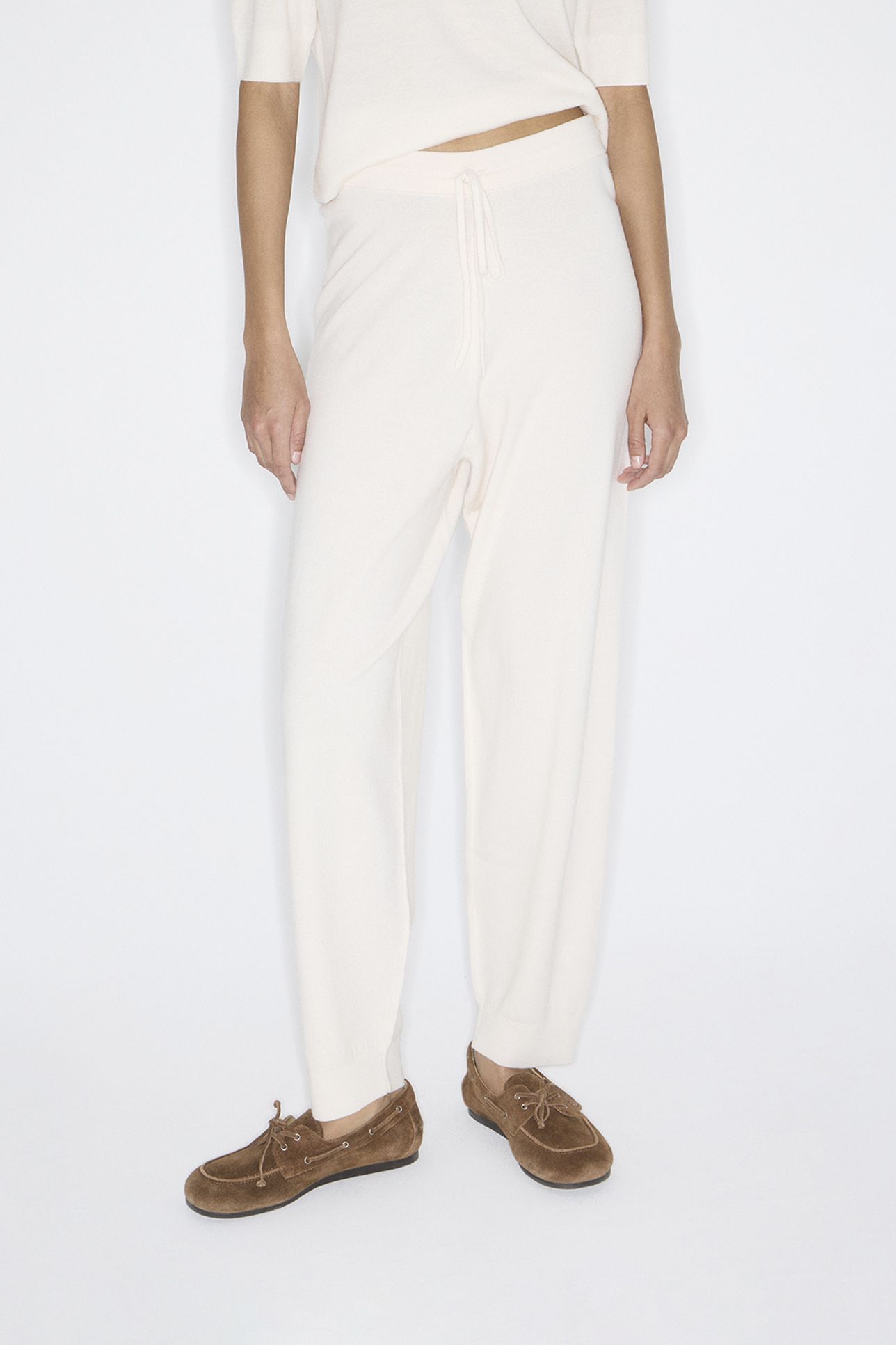 Брюки тонкие из шерсти мериноса молочного цвета