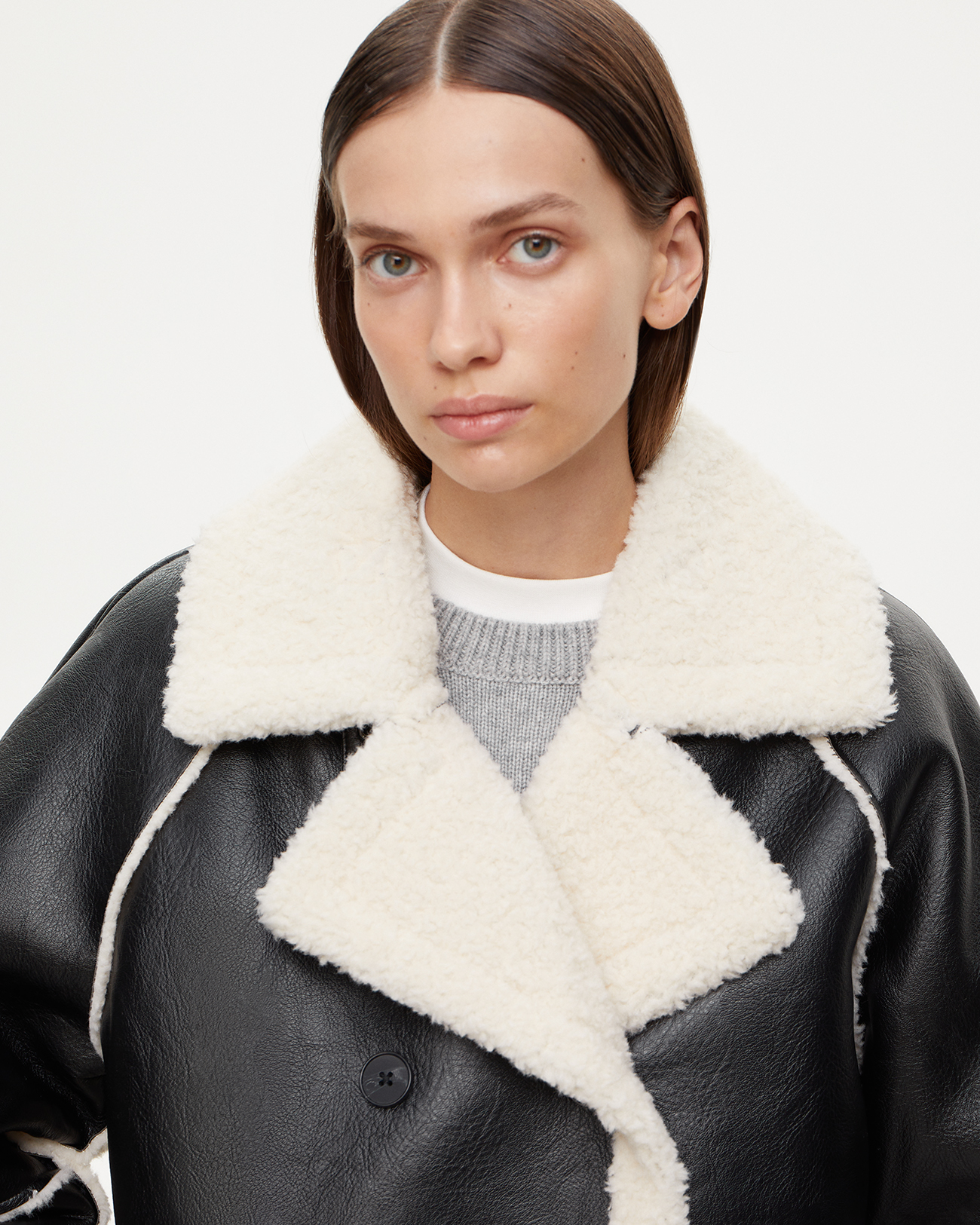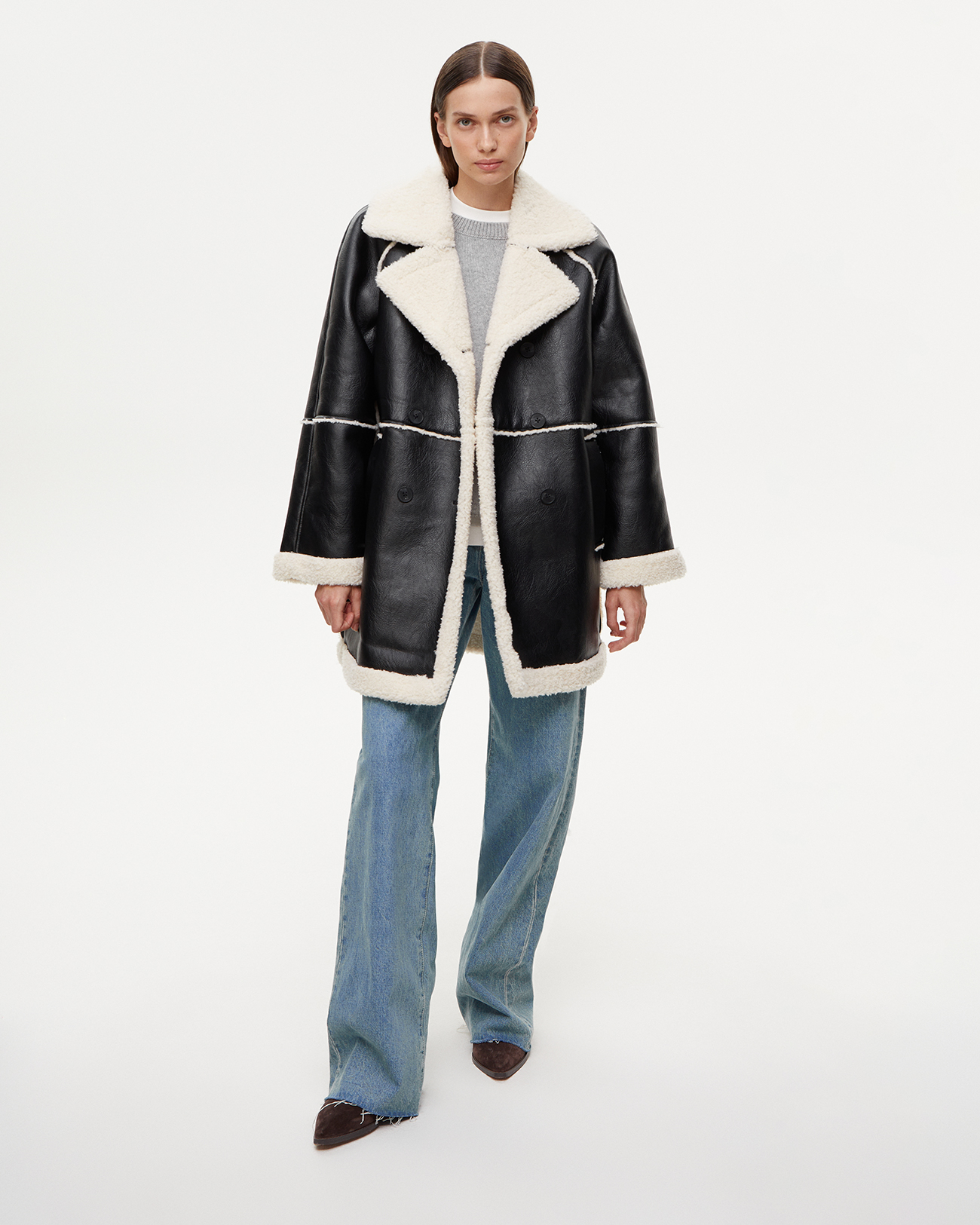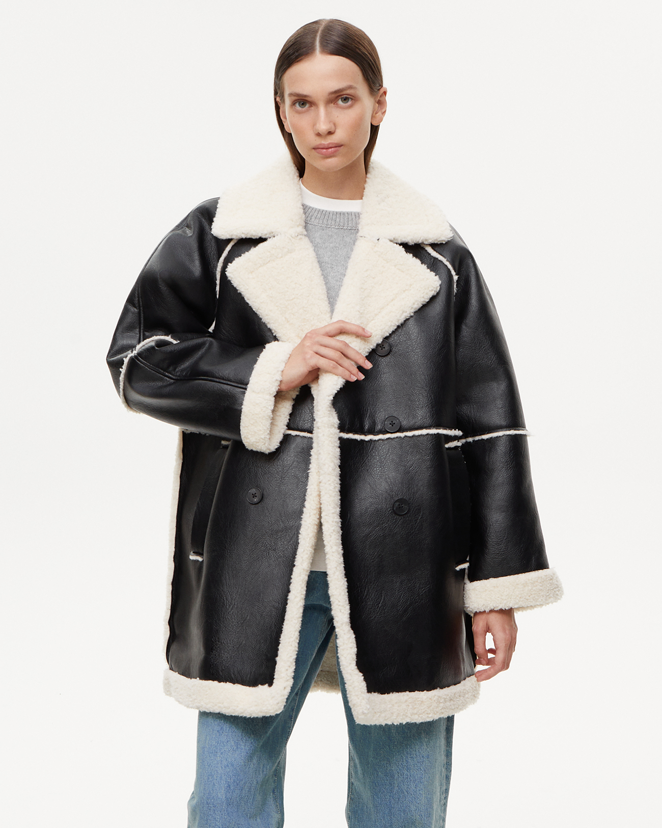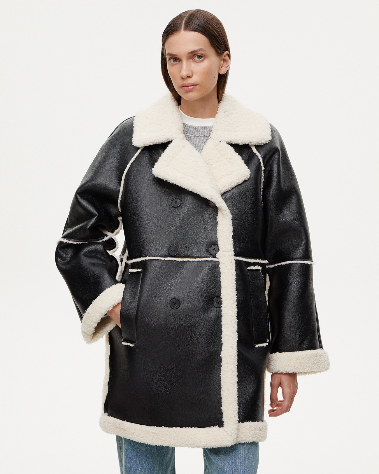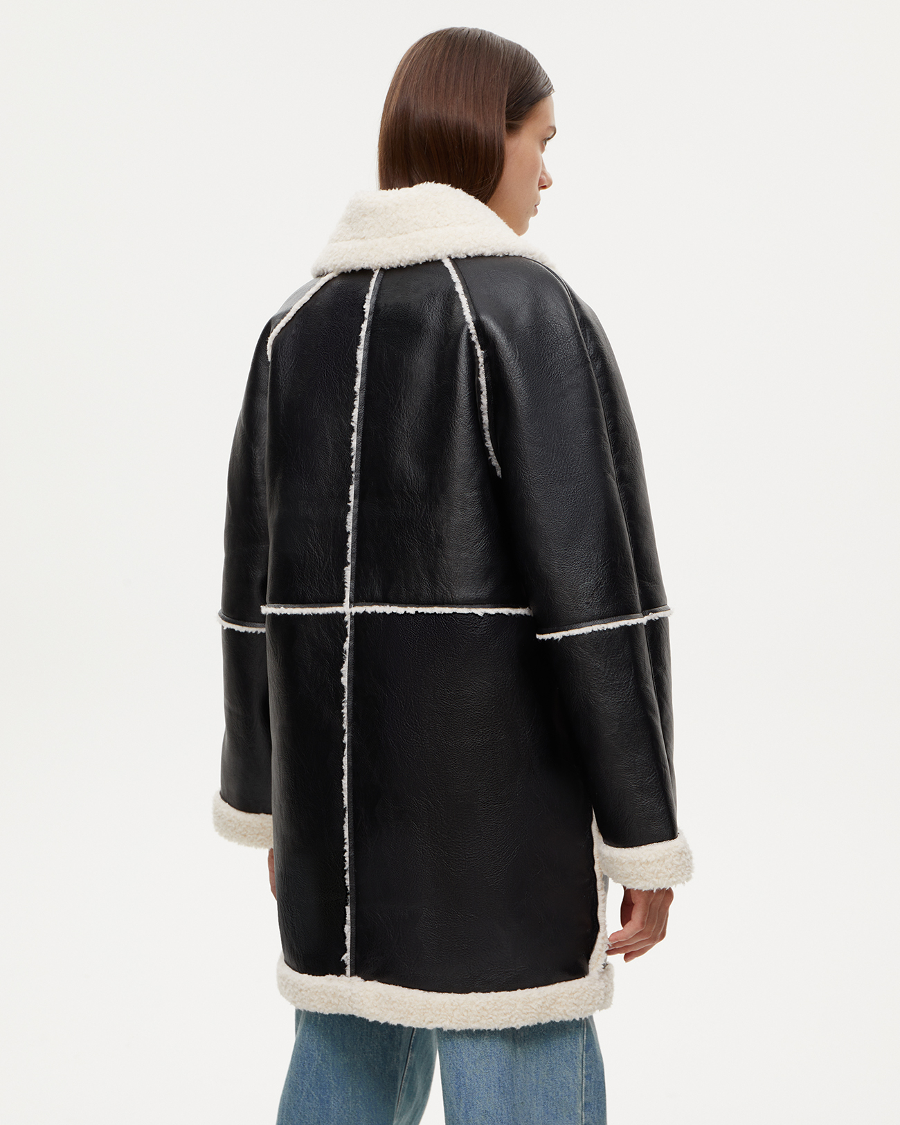 Дубленка из эко-кожи черного цвета