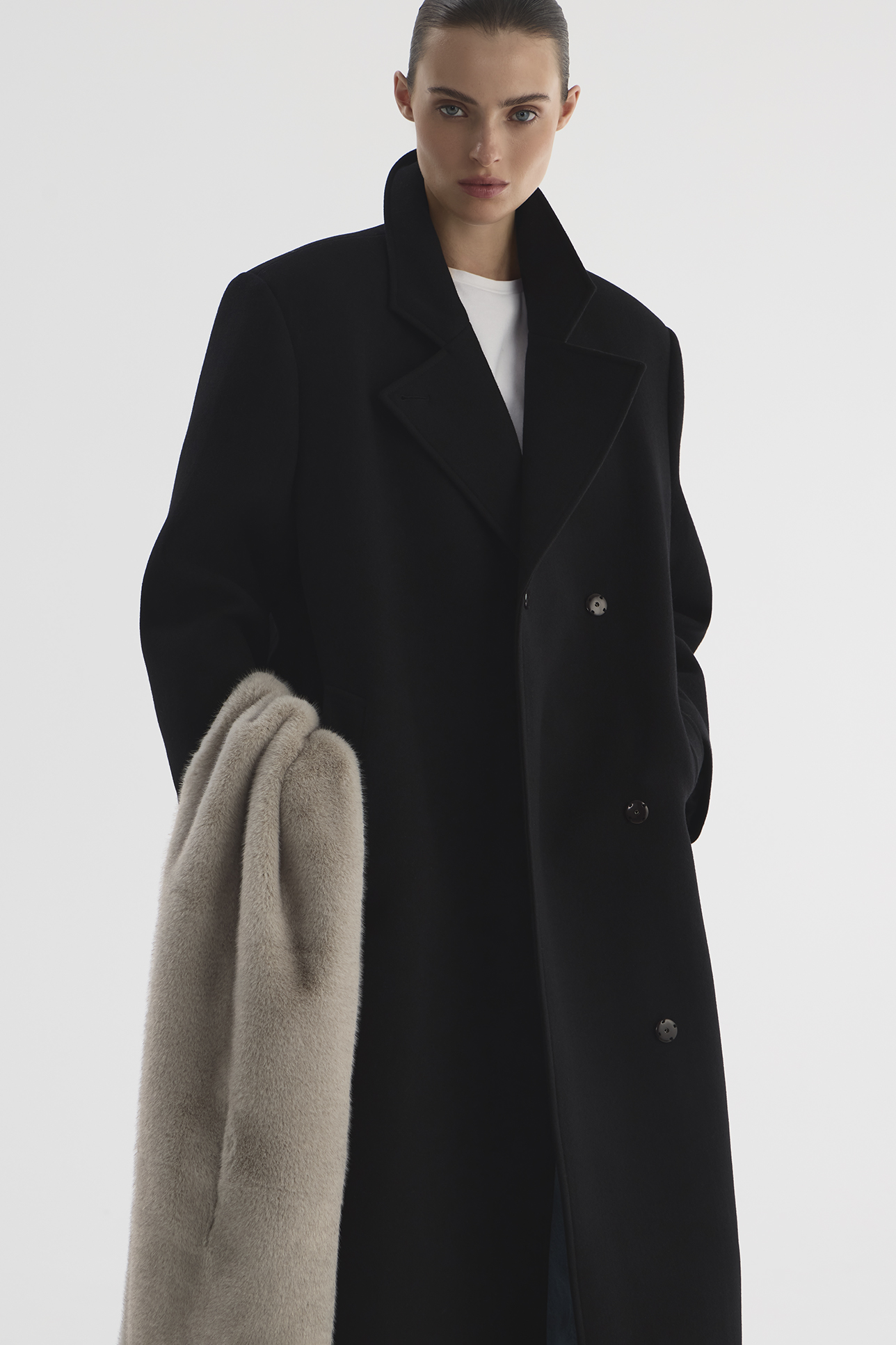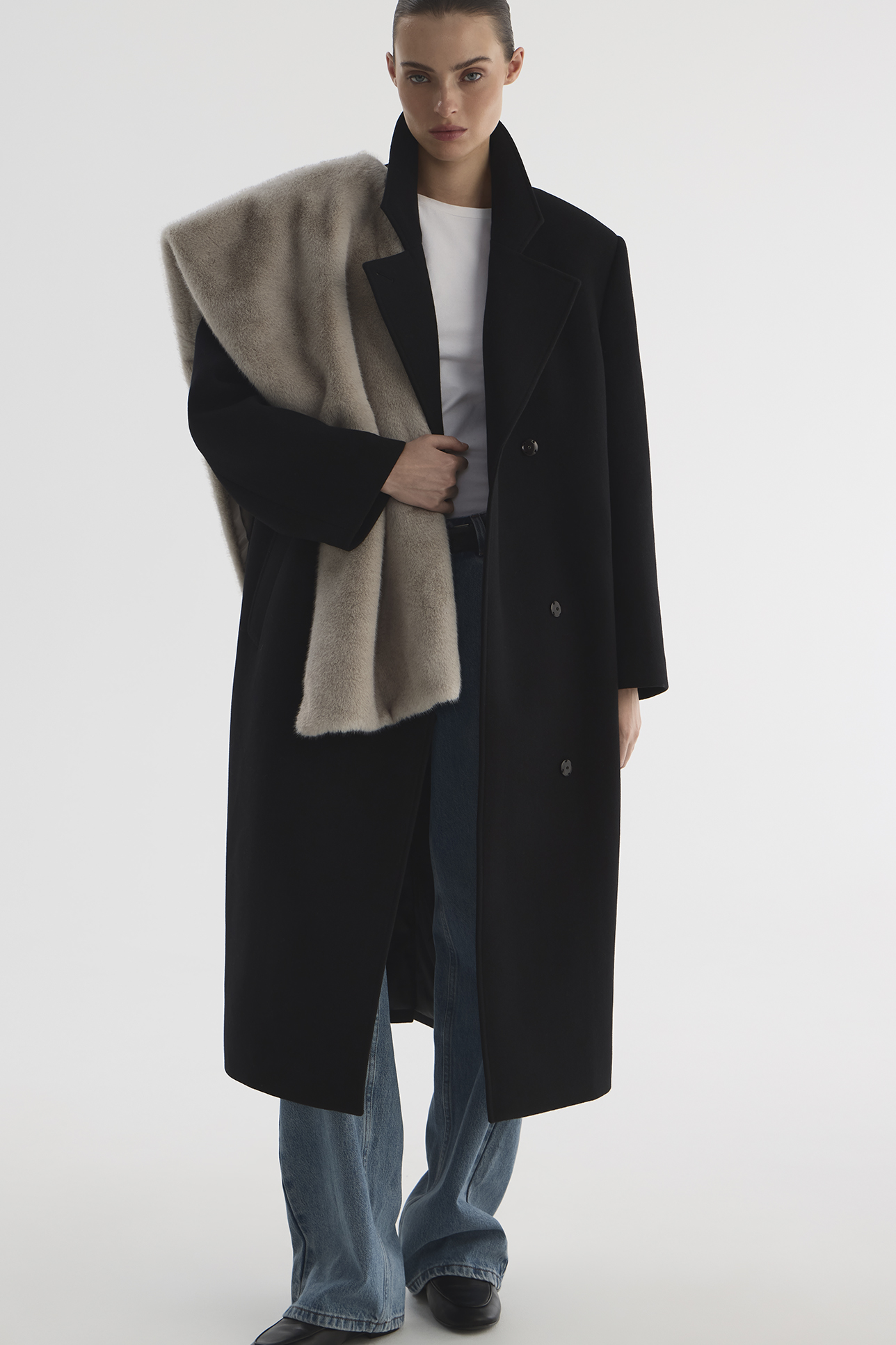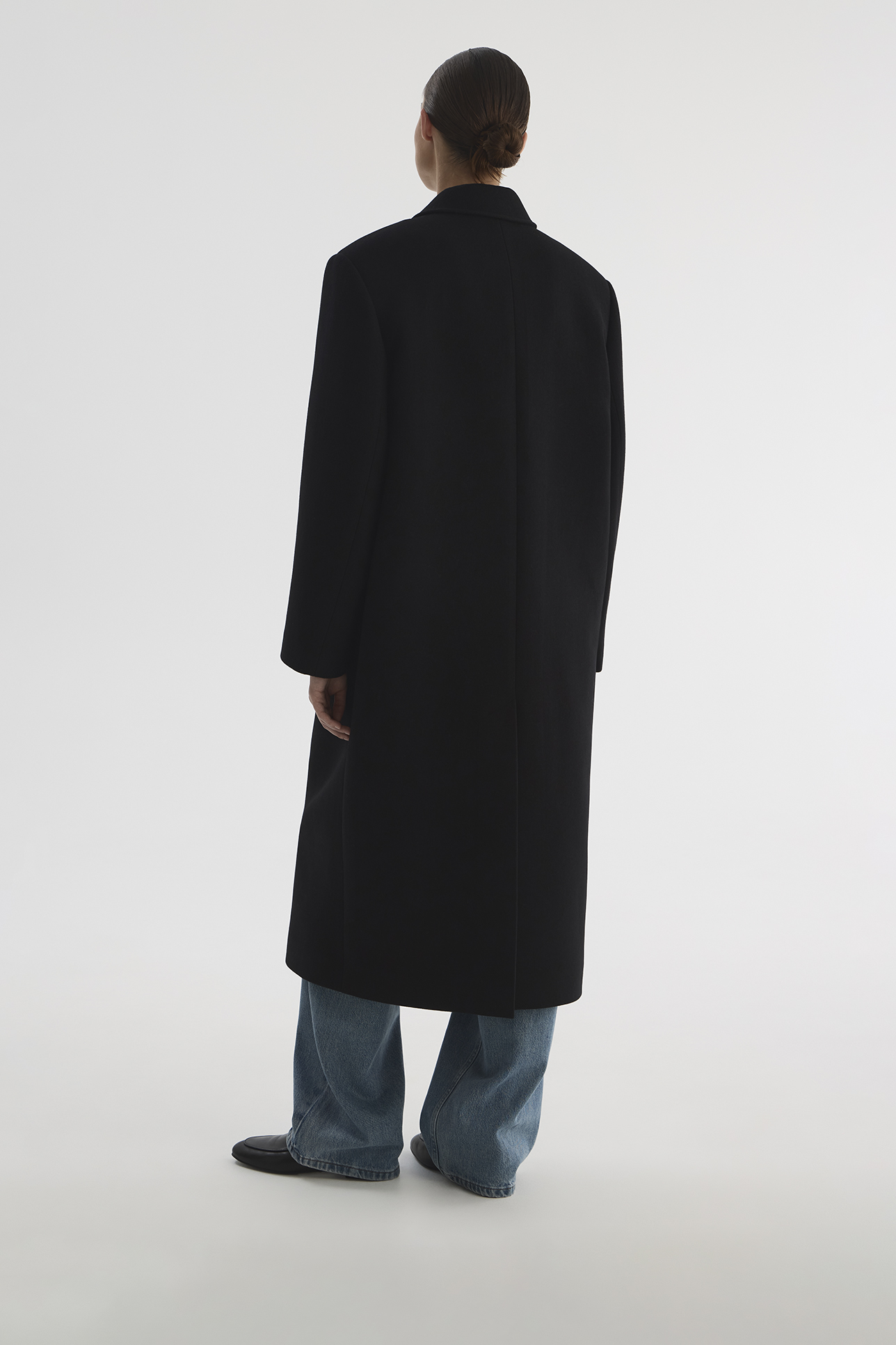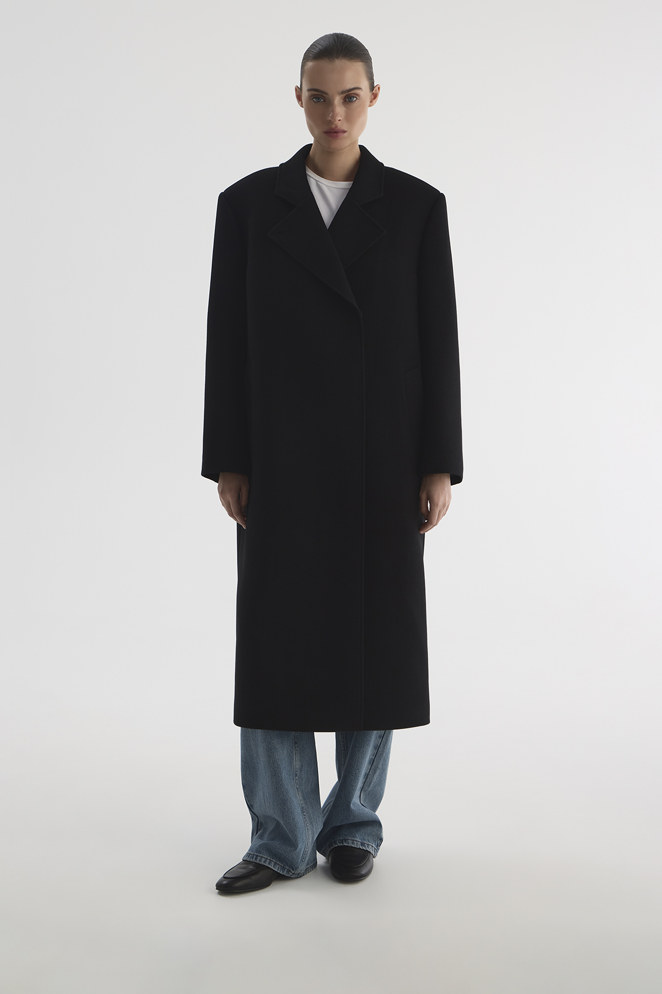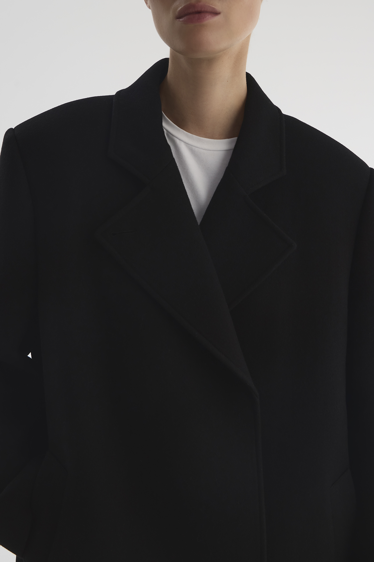 Пальто с акцентными плечами черного цвета