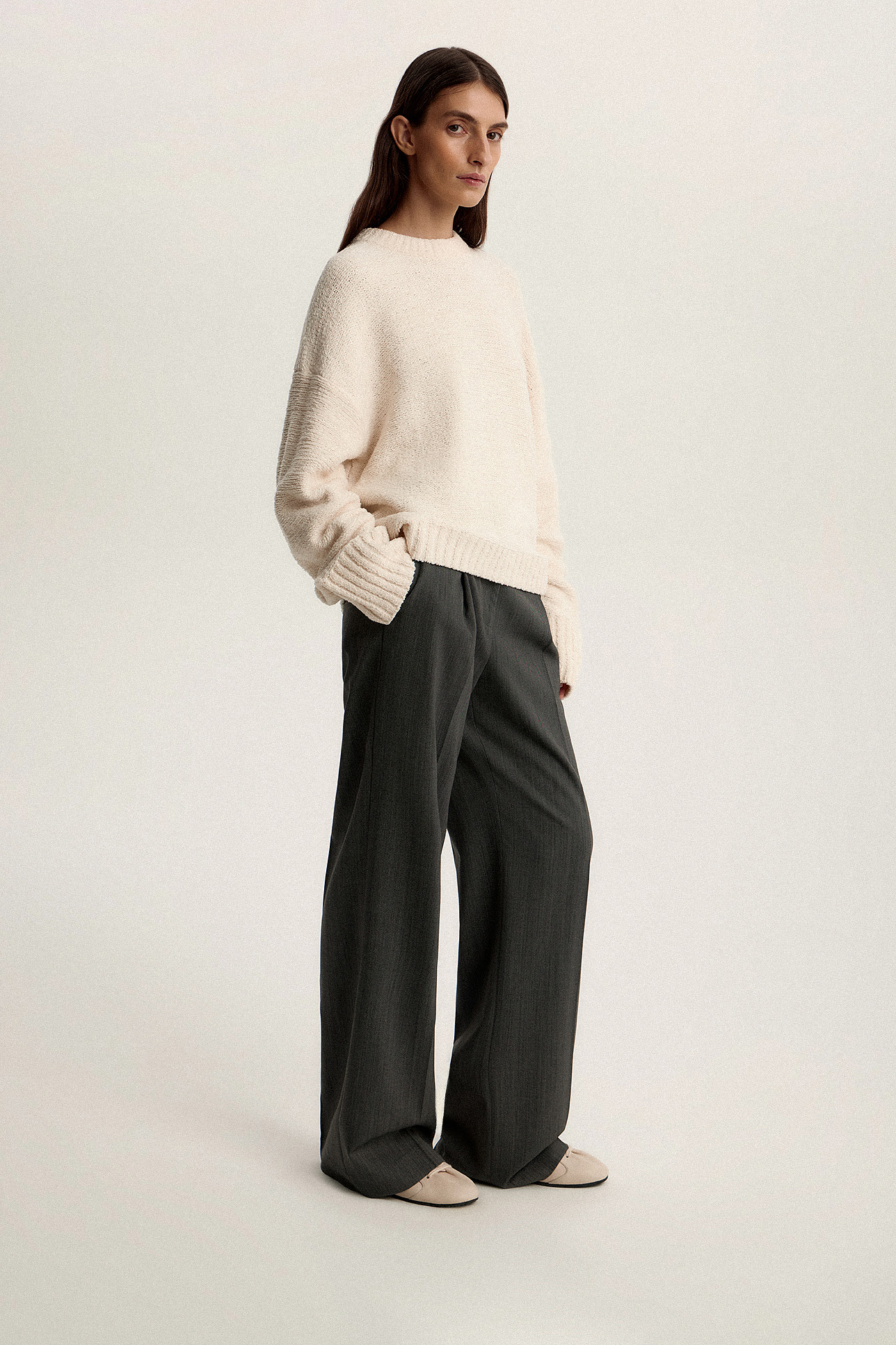 Джемпер из фактурного хлопка молочного цвета