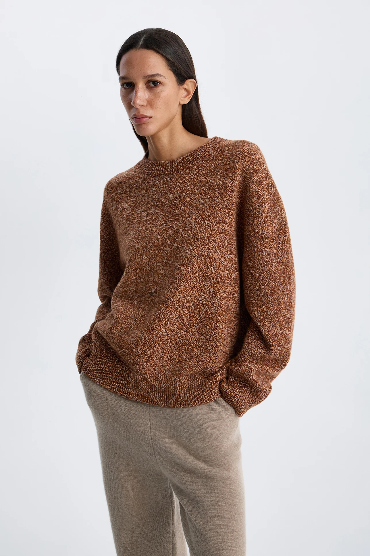 Джемпер из меланжевой шерсти мериноса терракотового цвета