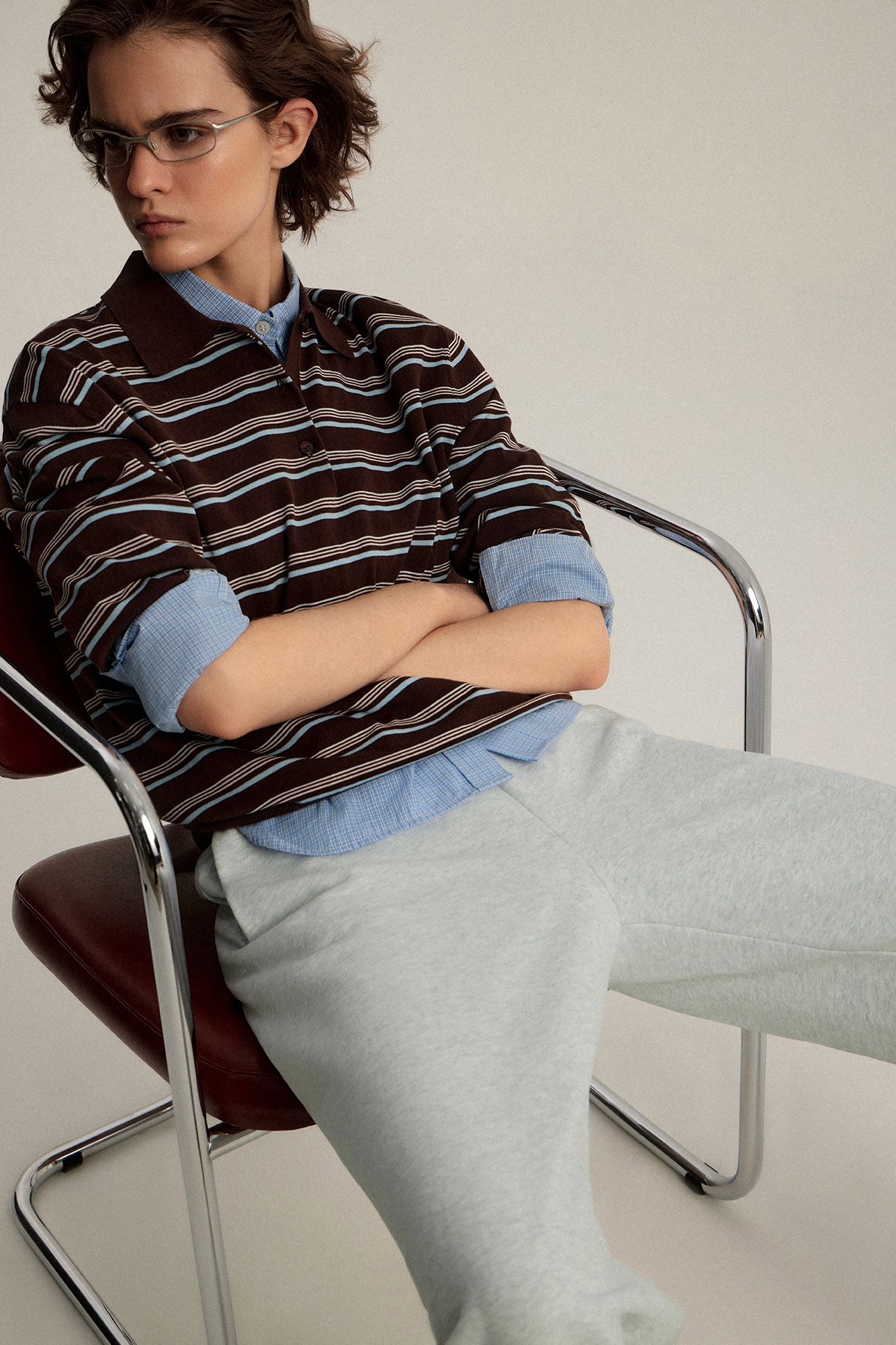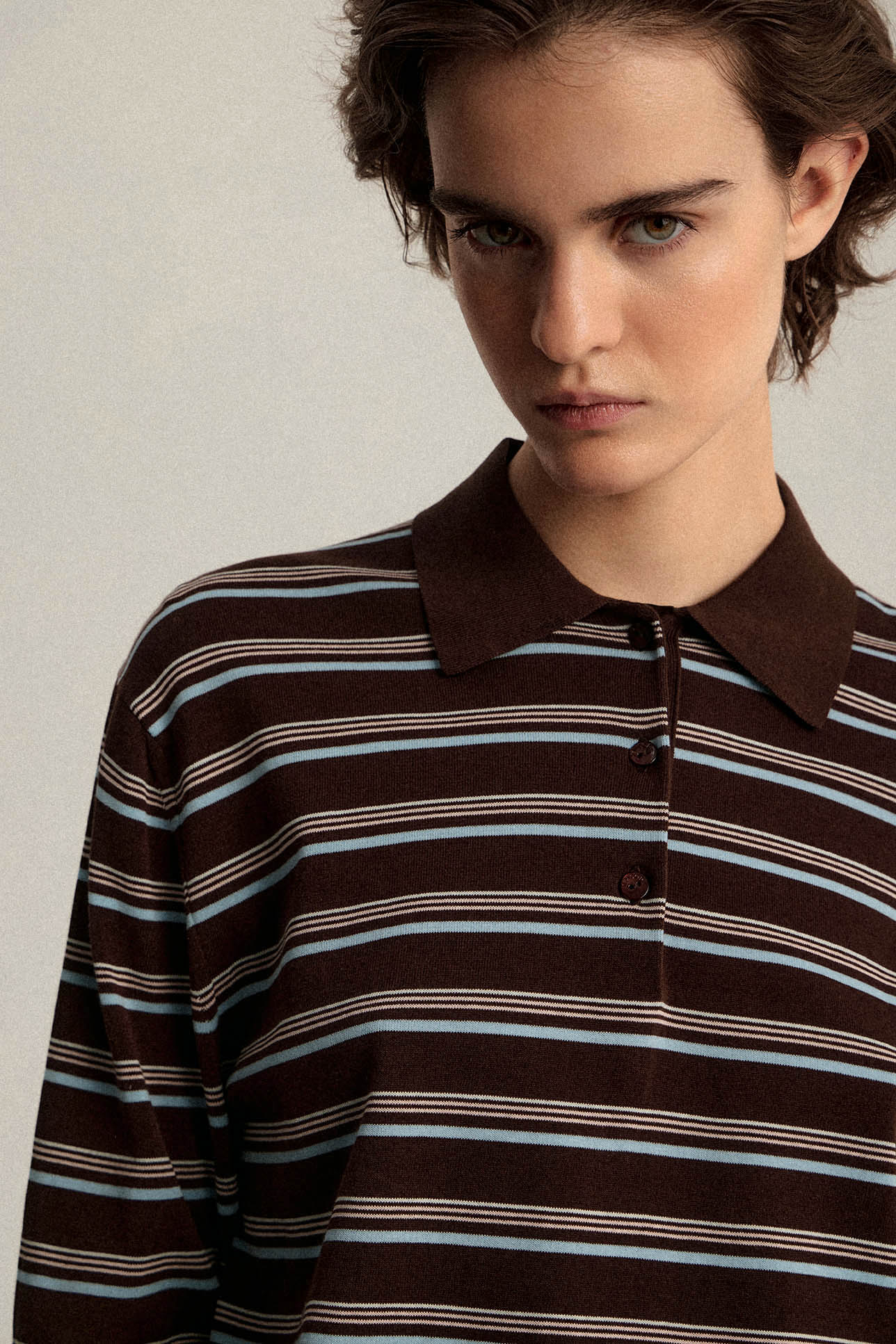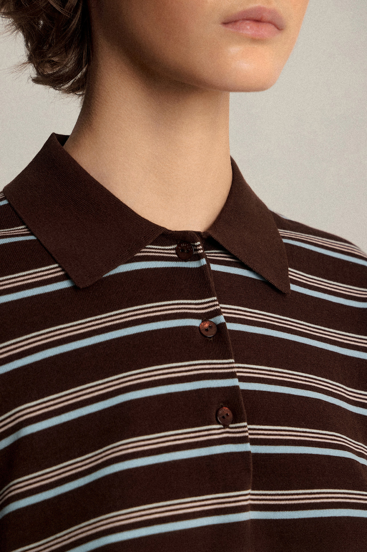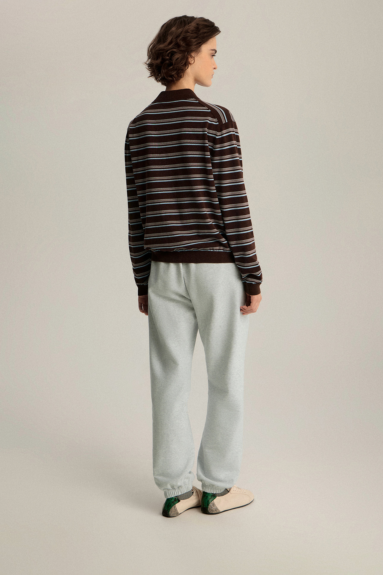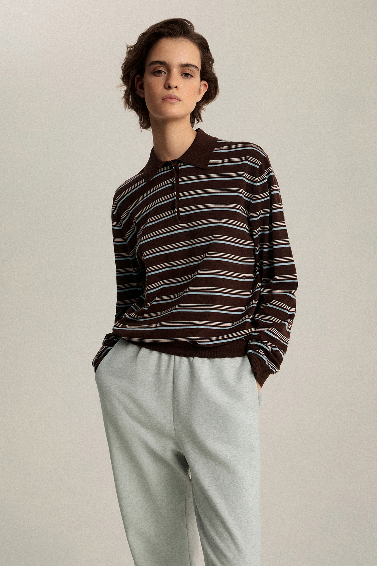 Джемпер-поло с длинным рукавом в полоску