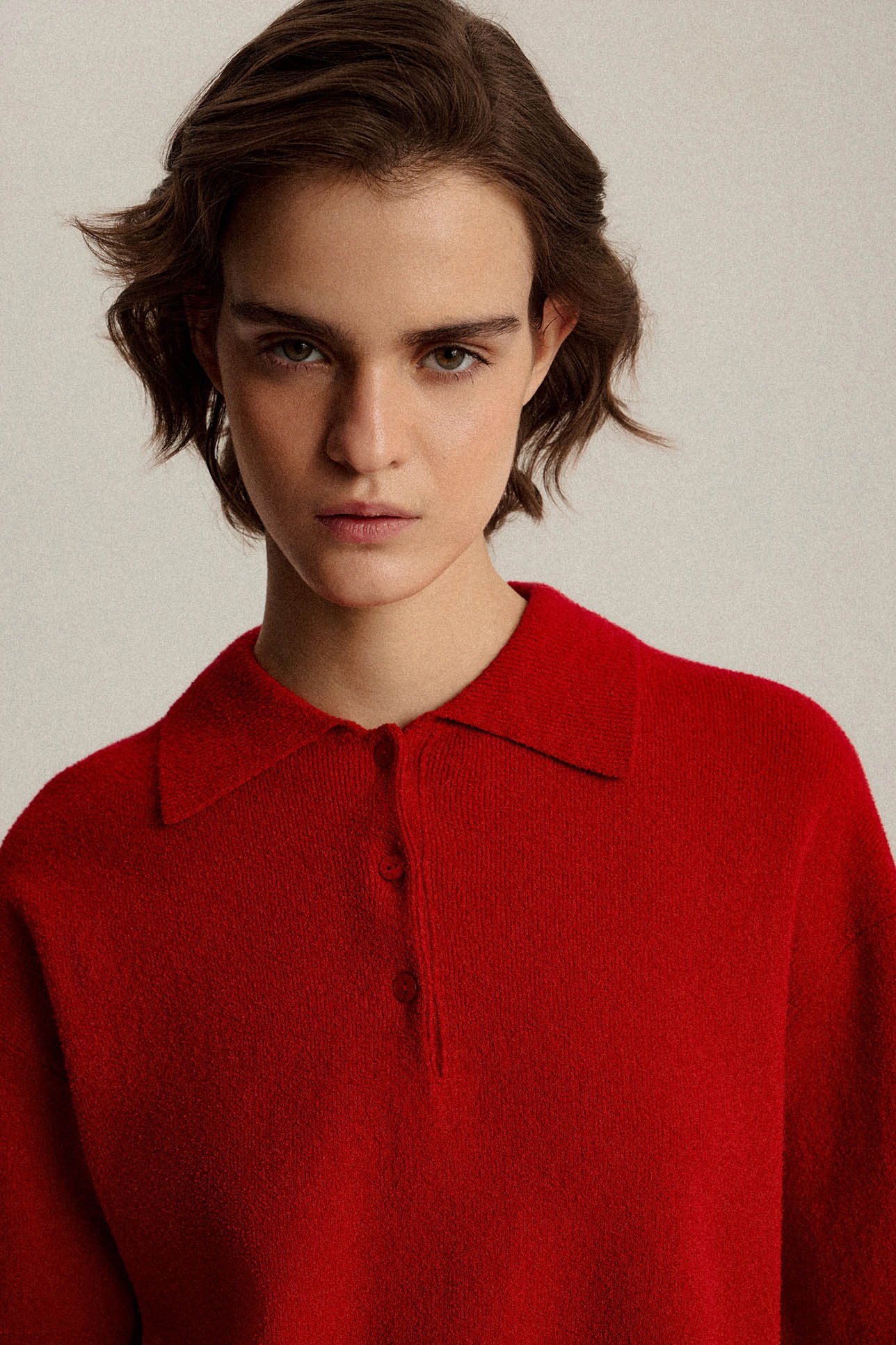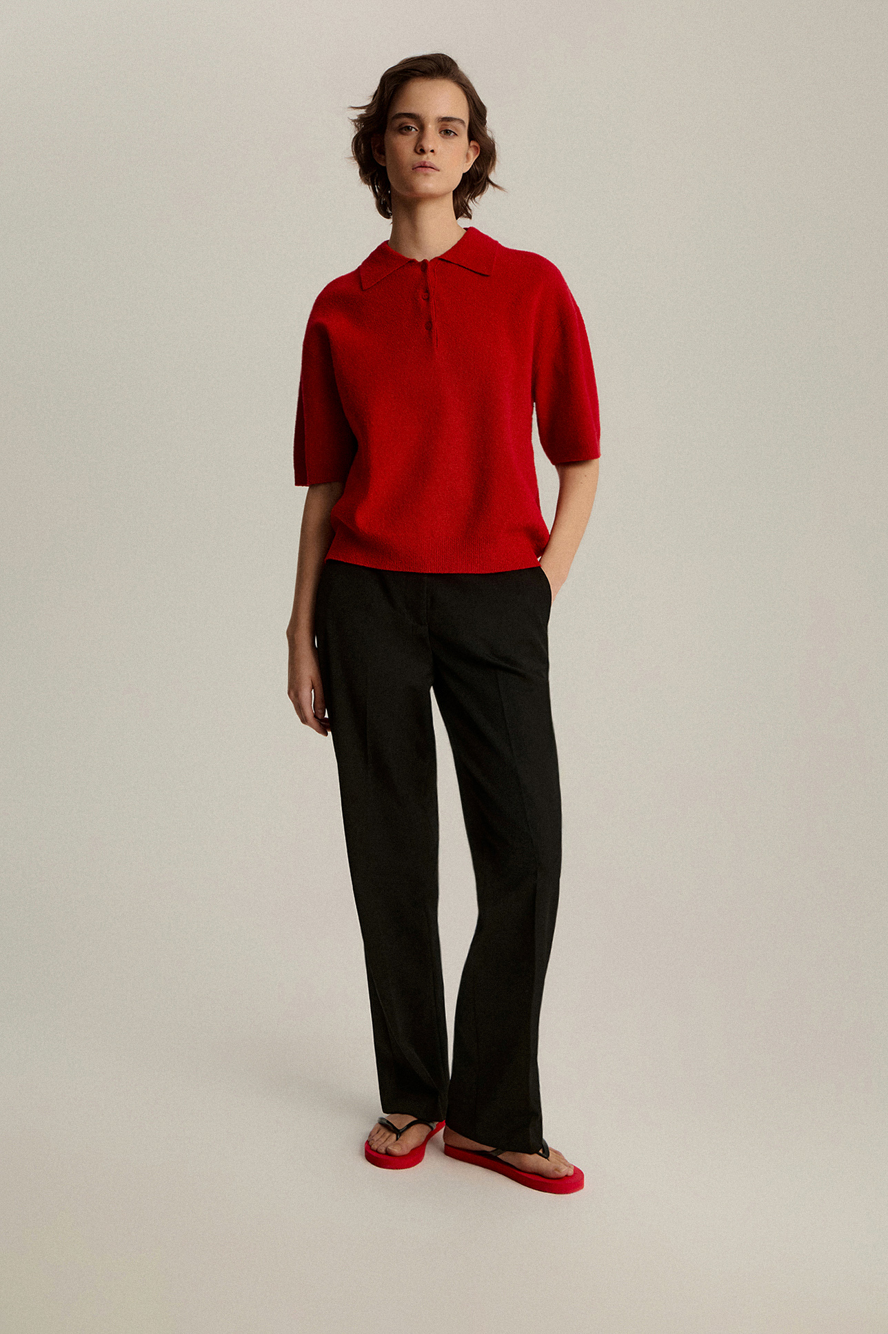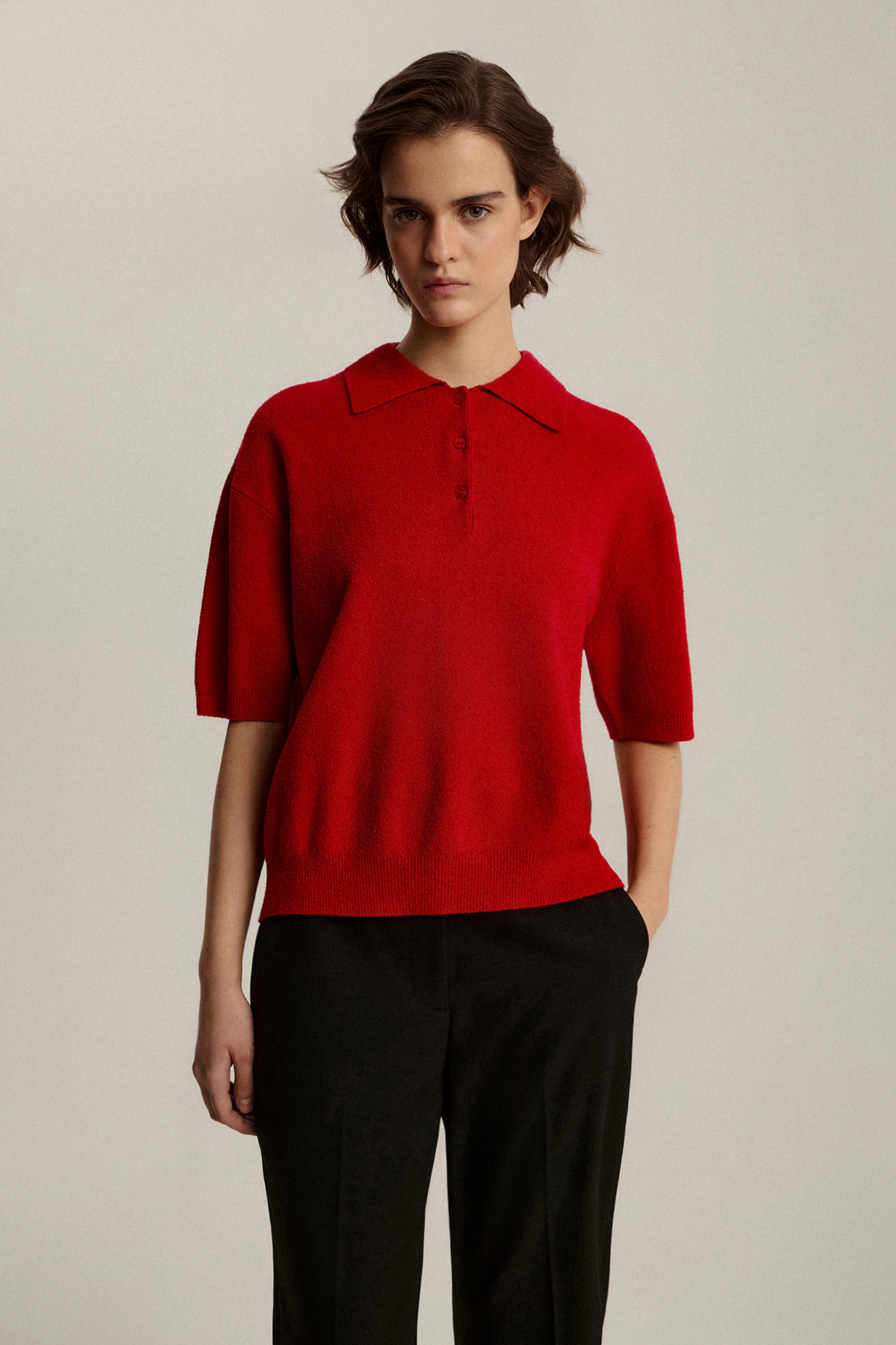 Джемпер-поло фактурный с коротким рукавом