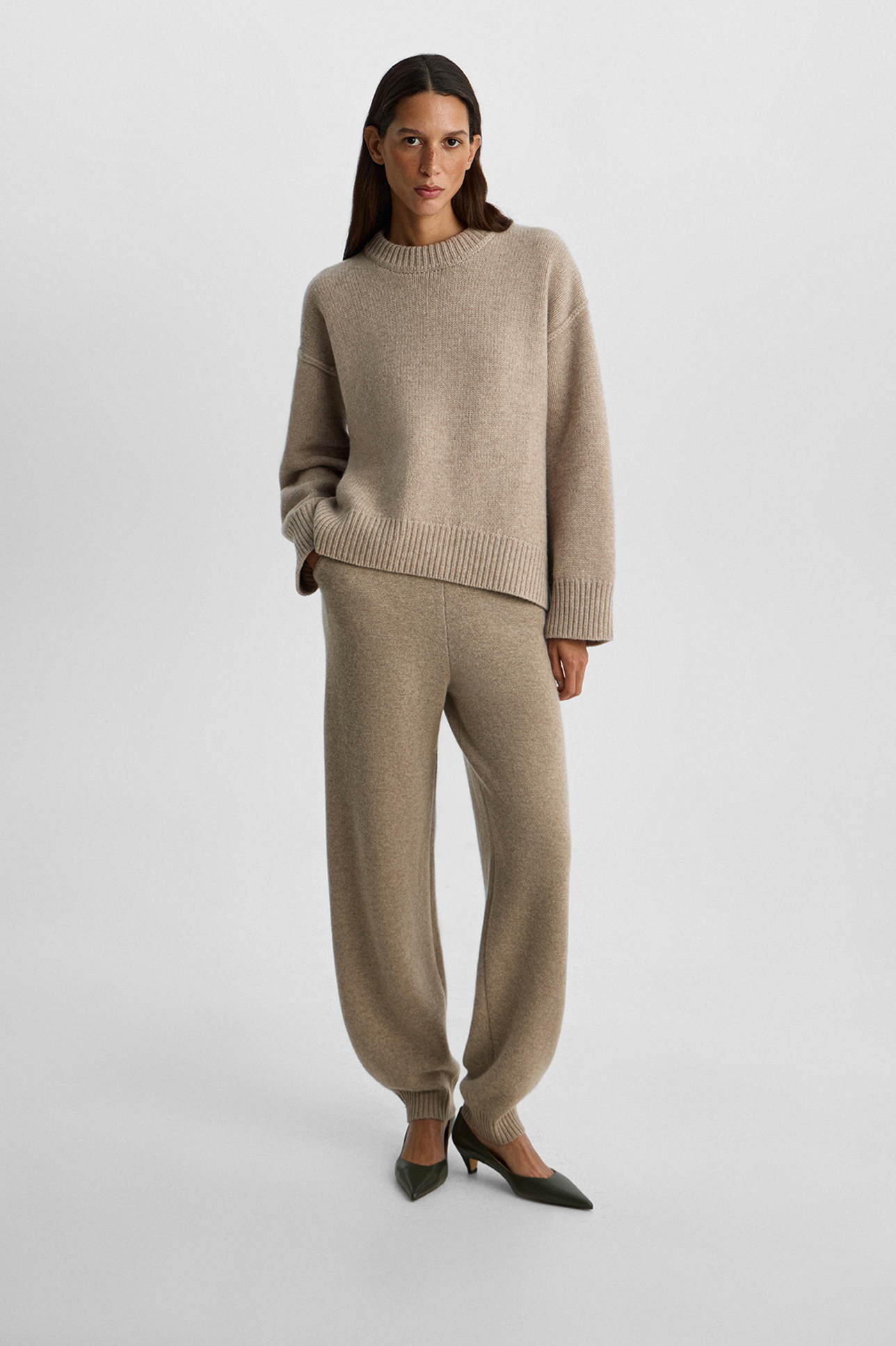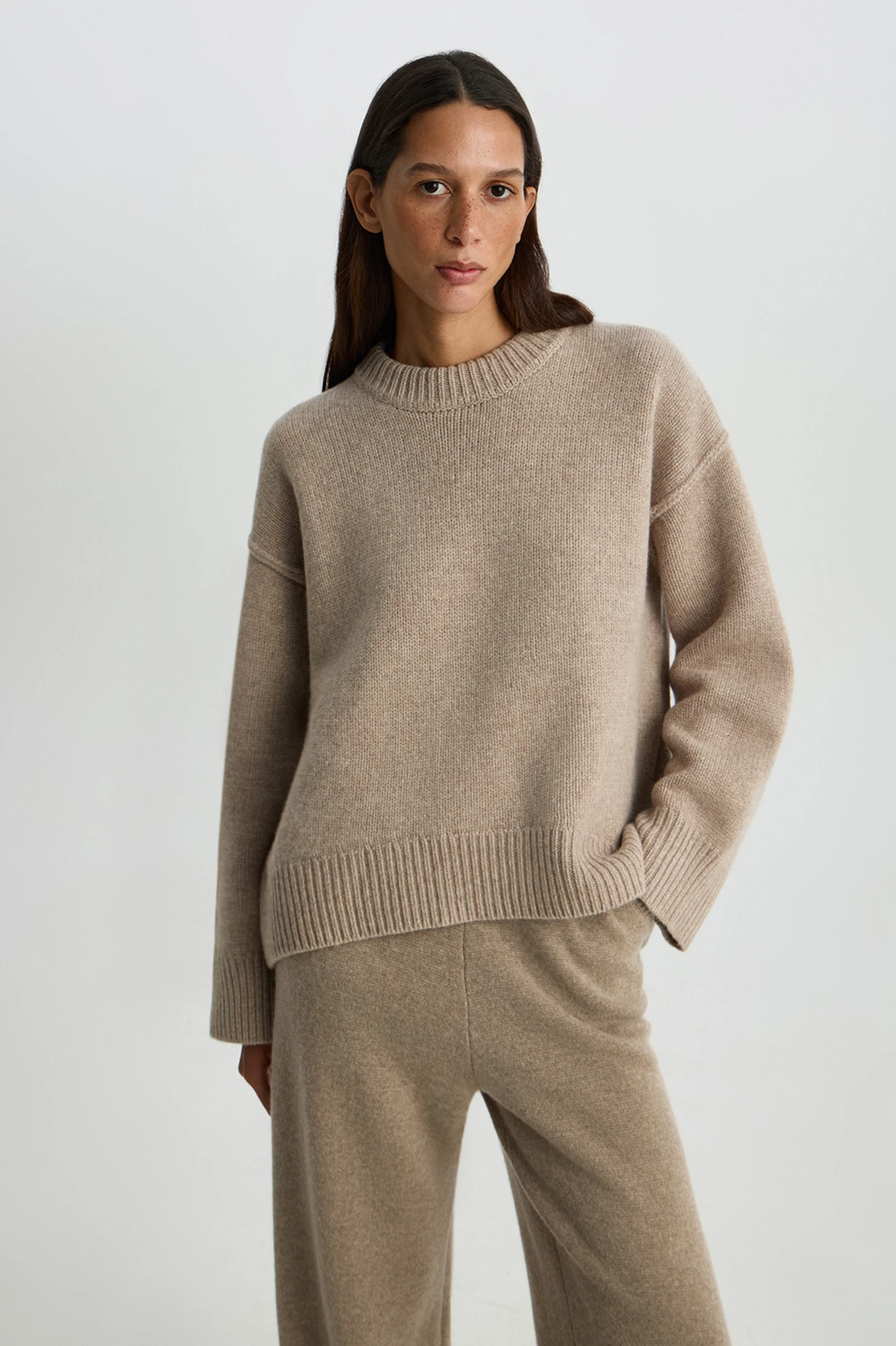 Джемпер с декоративными швами бежевого цвета
