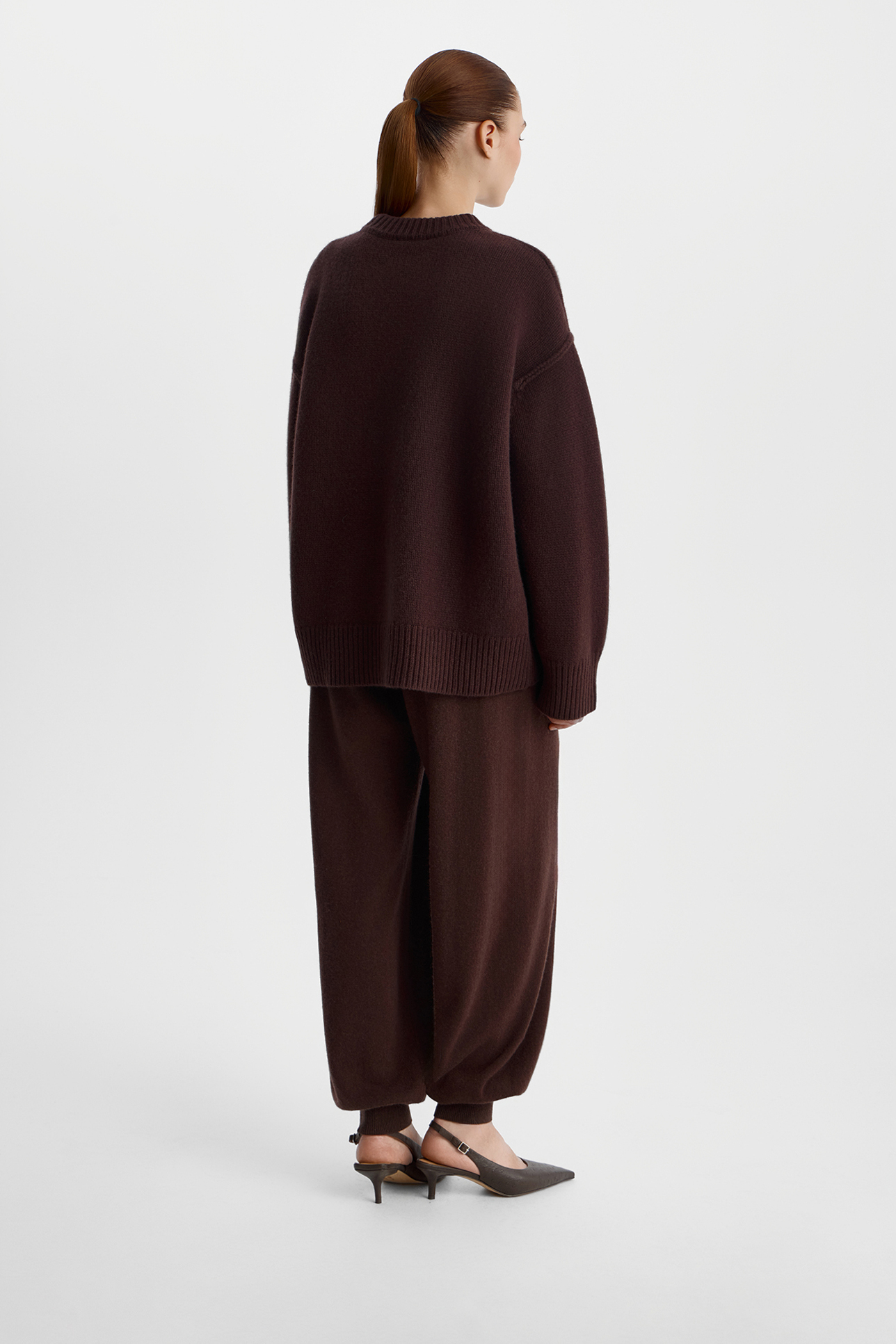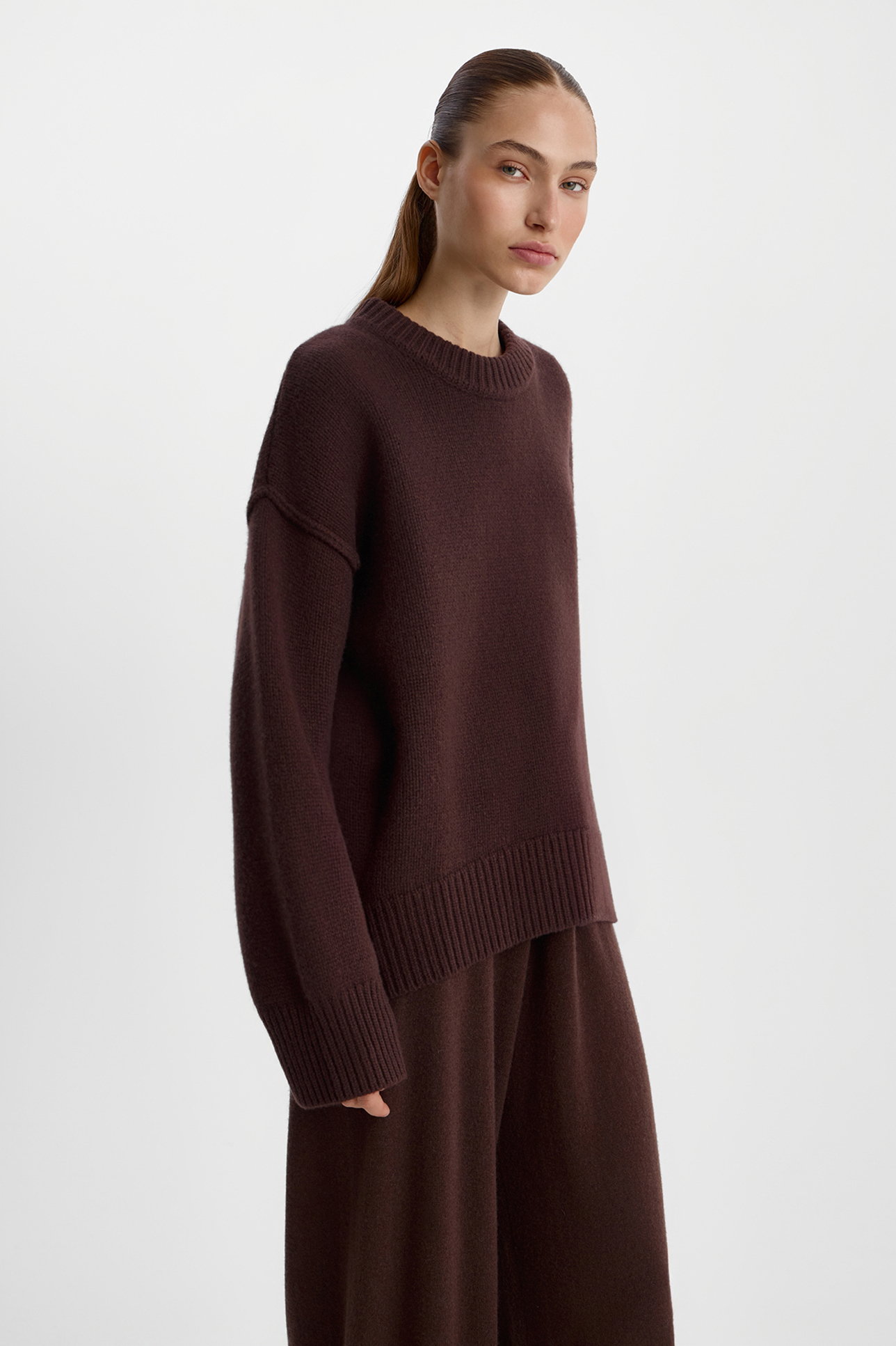 Джемпер с декоративными швами шоколадного цвета
