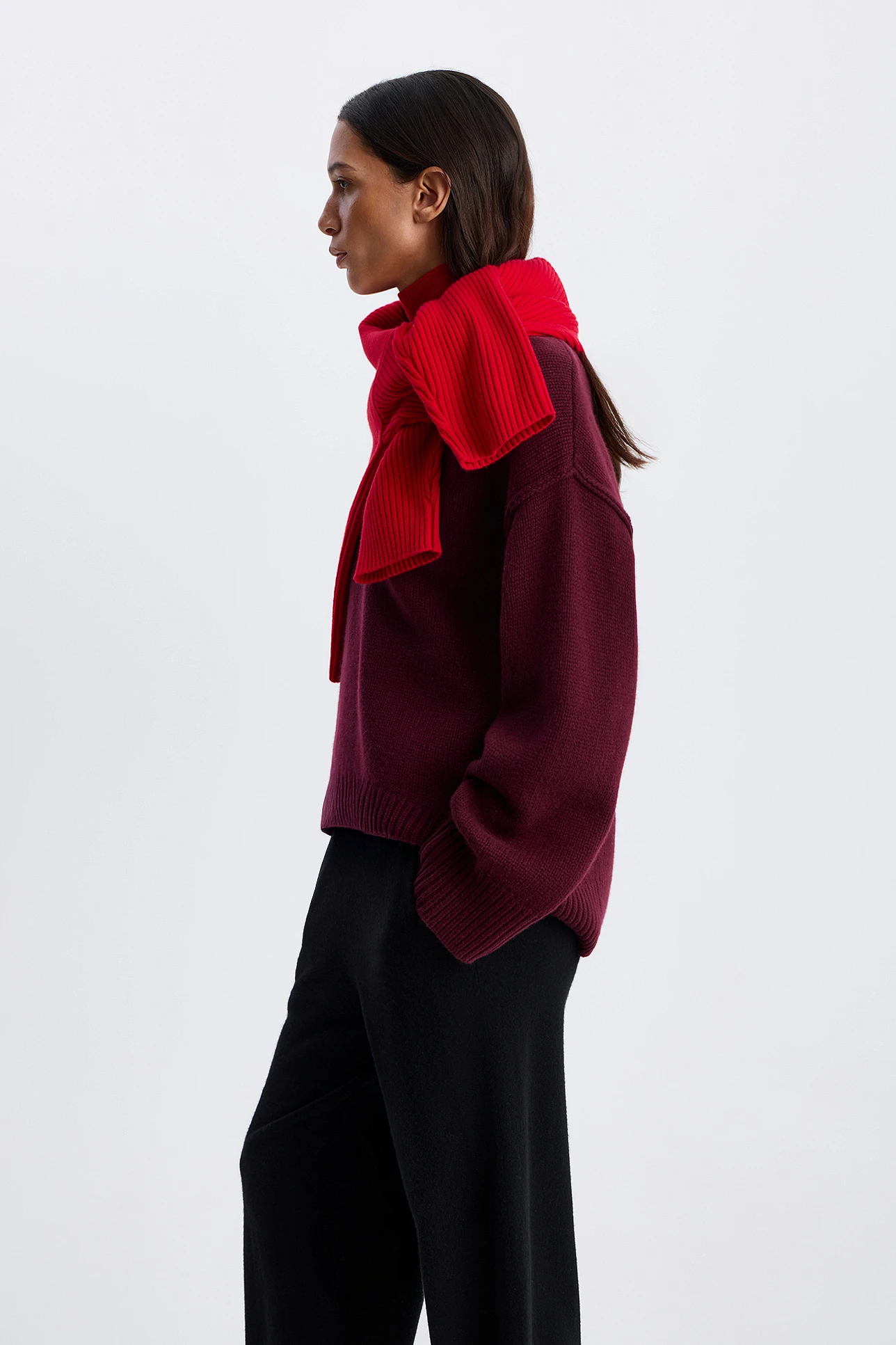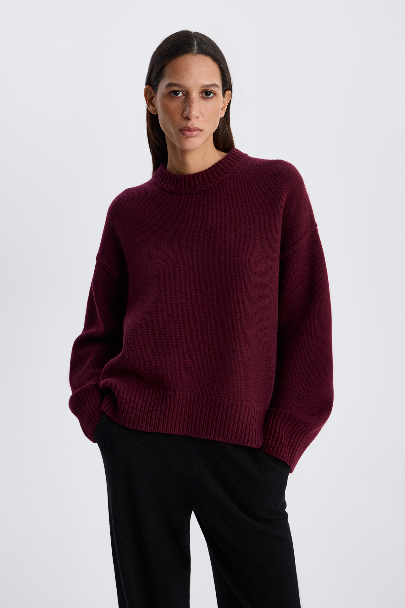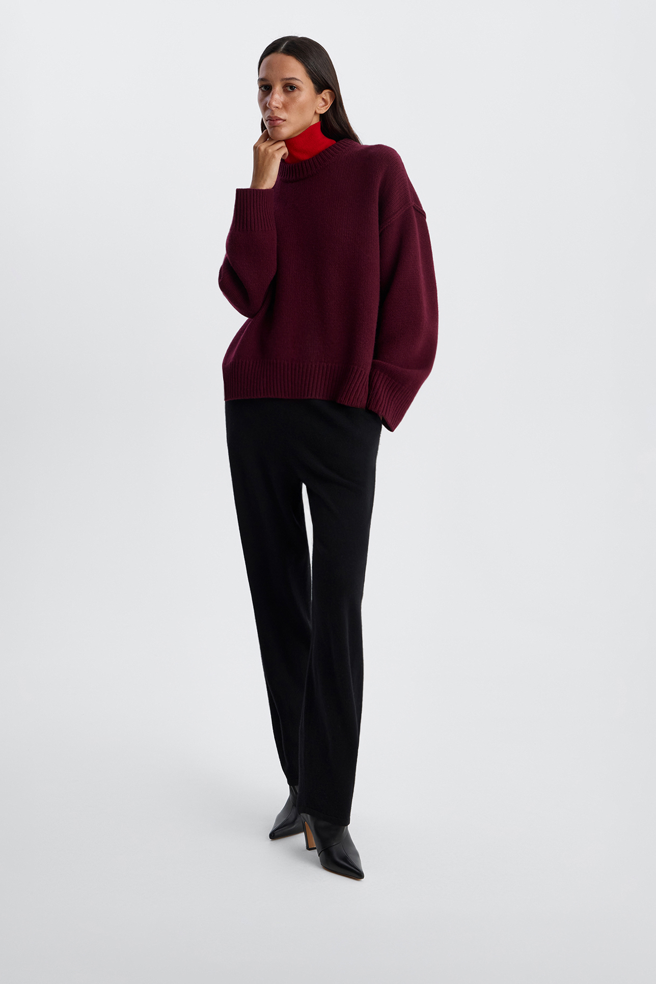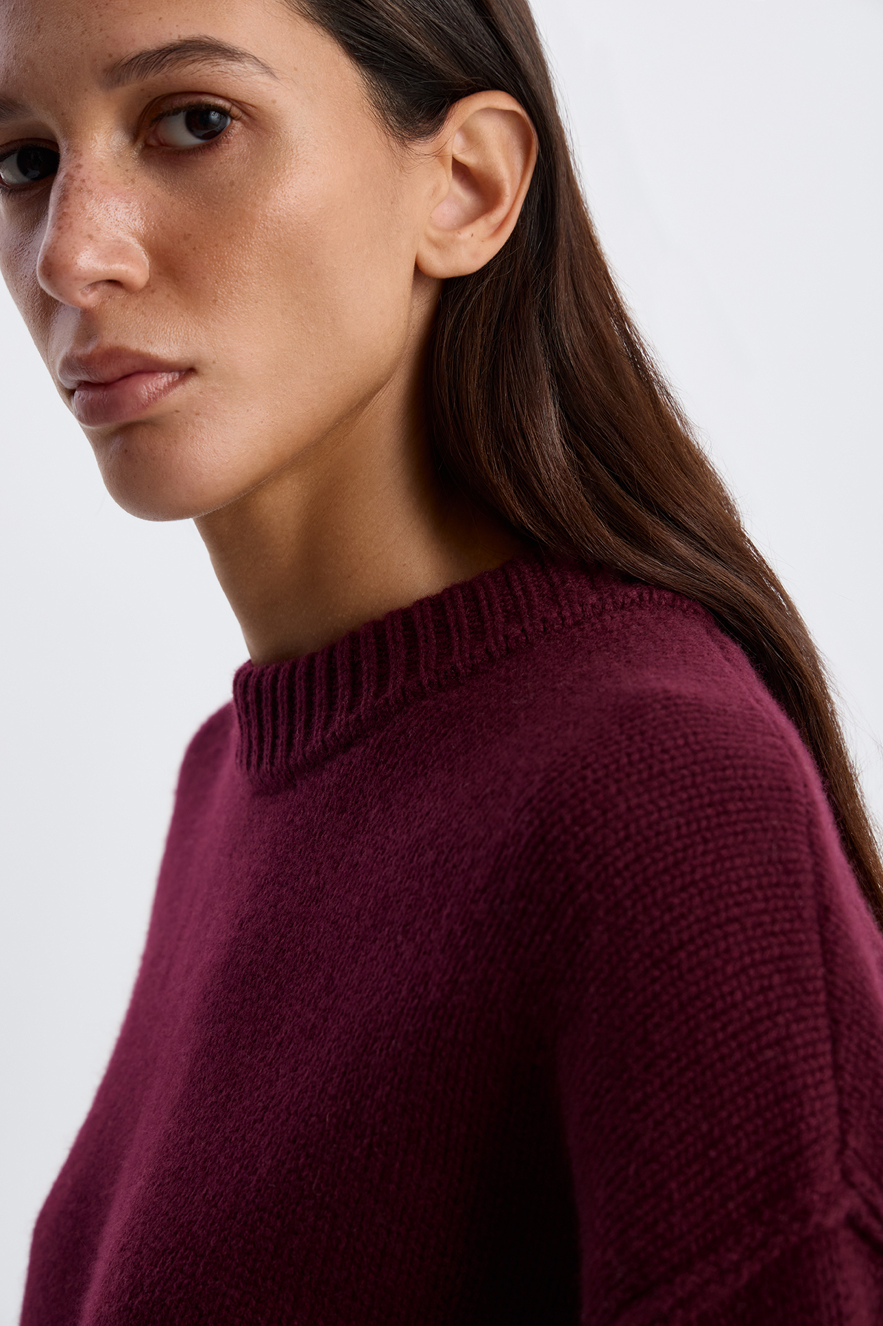 Джемпер с декоративными швами сливового цвета