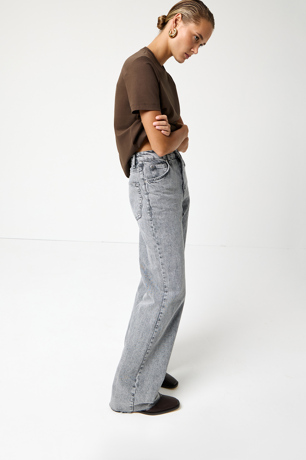 Джинсы Wide leg WL100 с необработанным низом светло-серого цвета