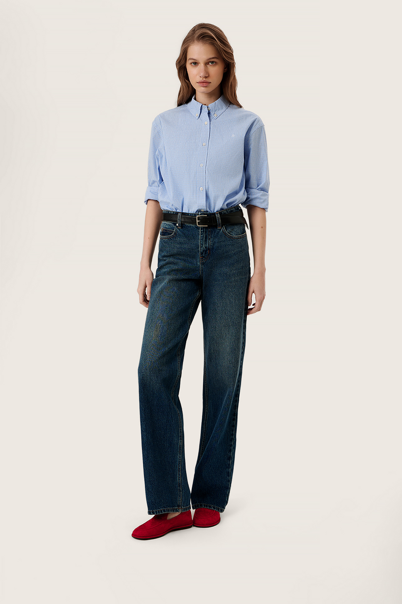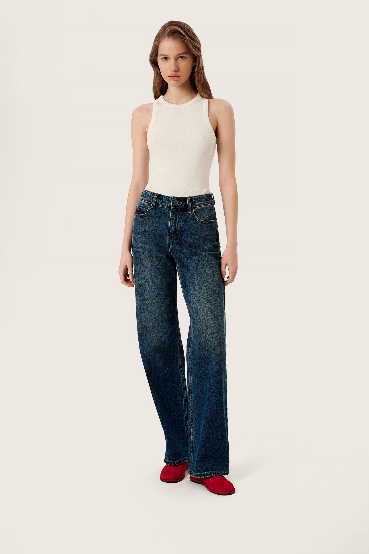 Джинсы широкие с высокой посадкой WL106