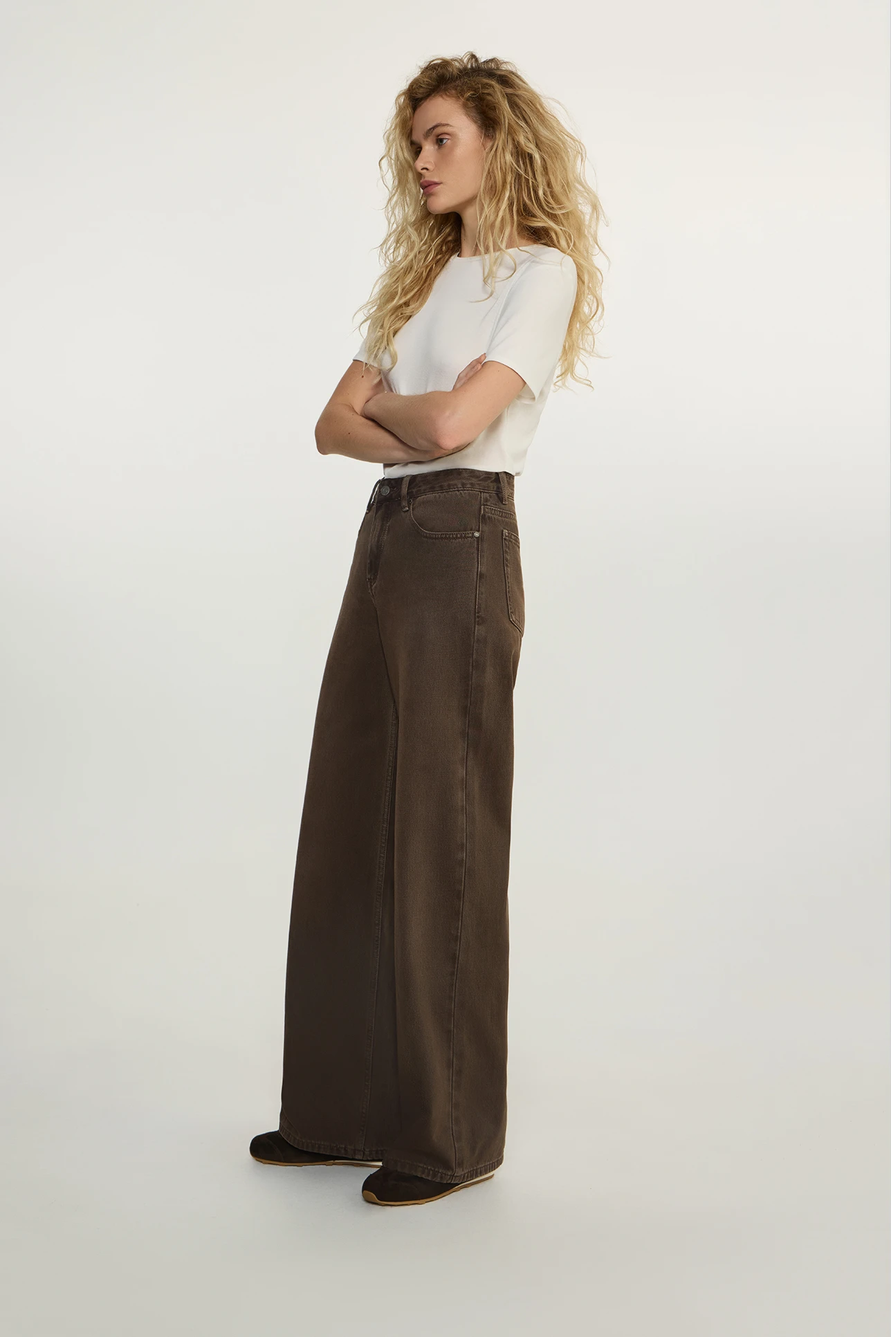 Джинсы Wide leg WL202 табачного цвета