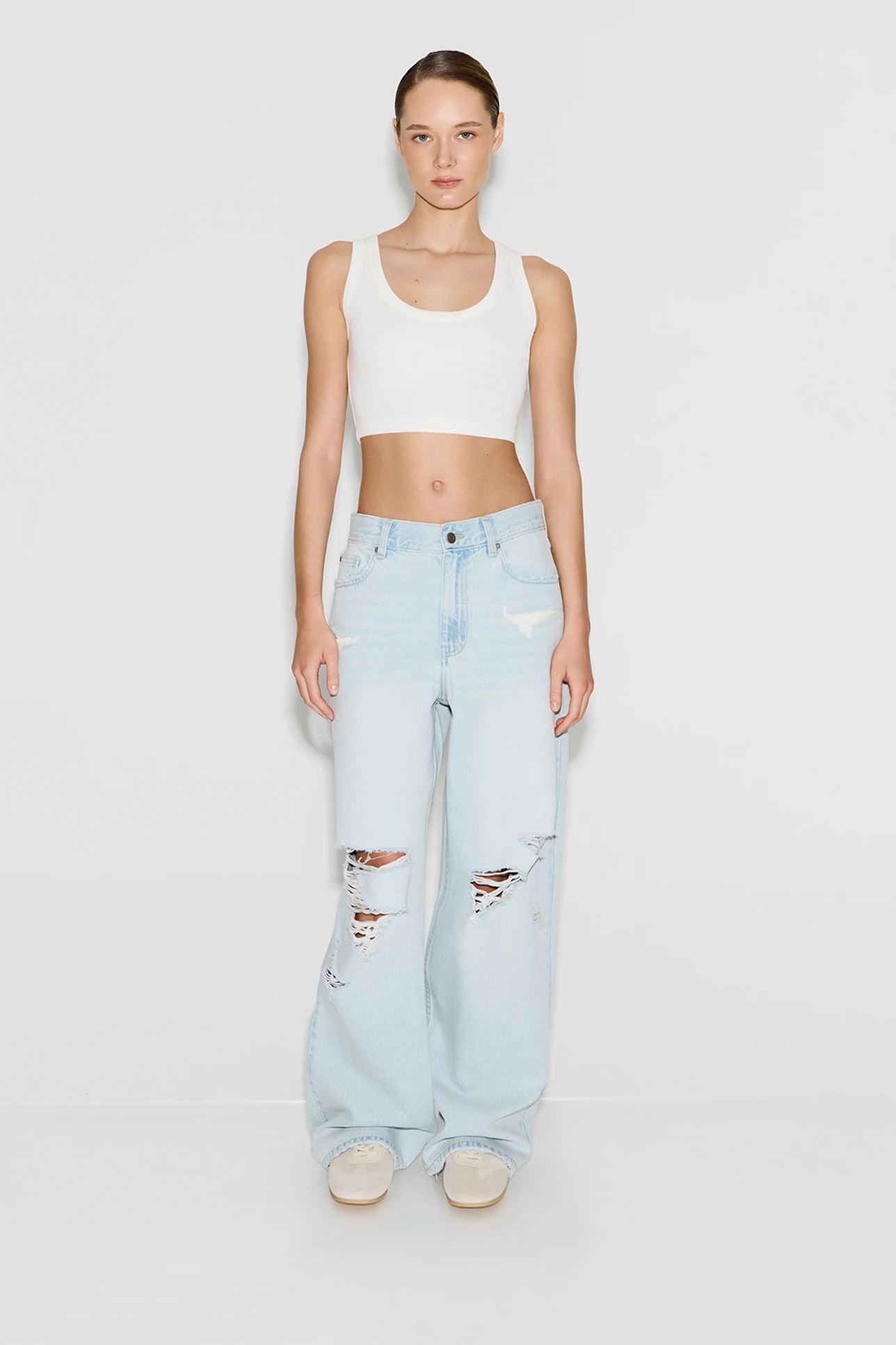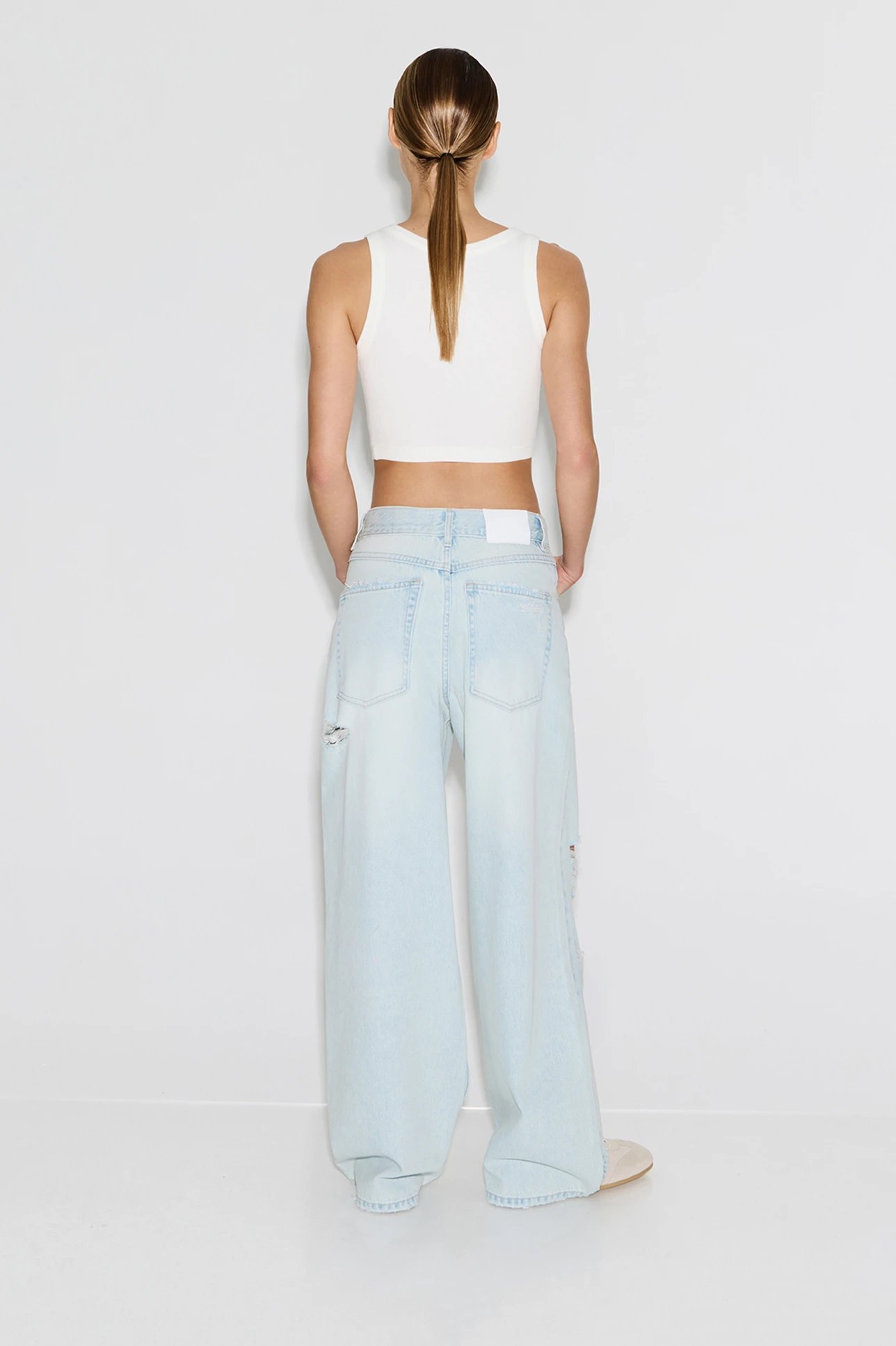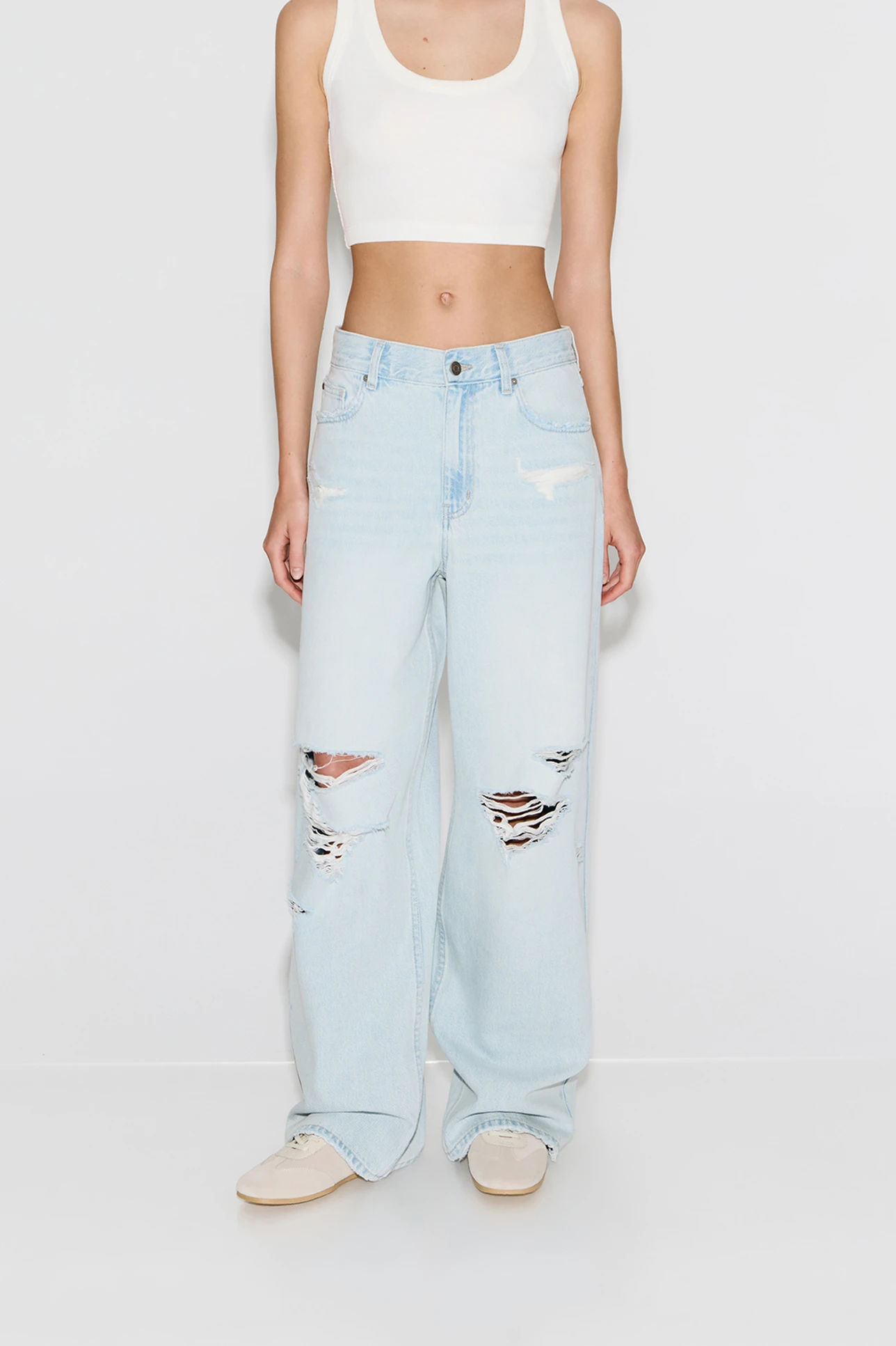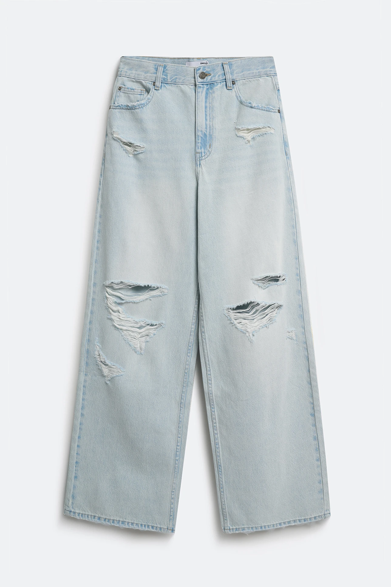 Джинсы Wide leg WL300 с разрывами цвета арктик