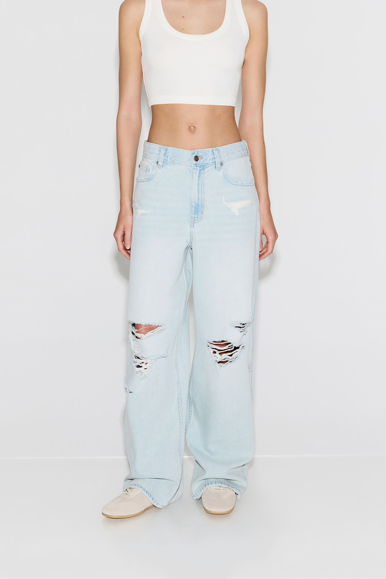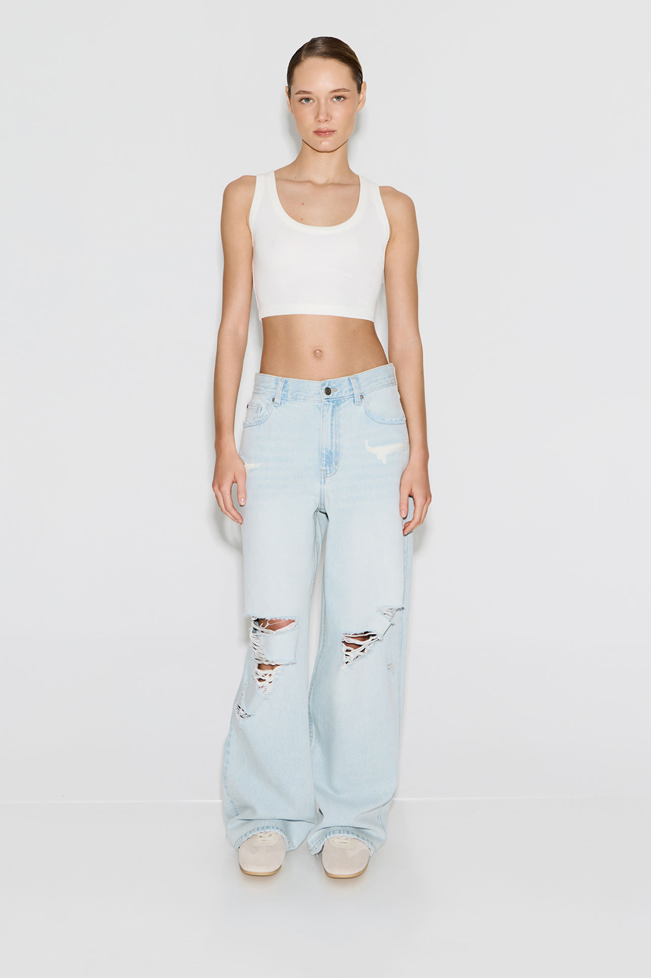 Джинсы широкие с разрезами WL300