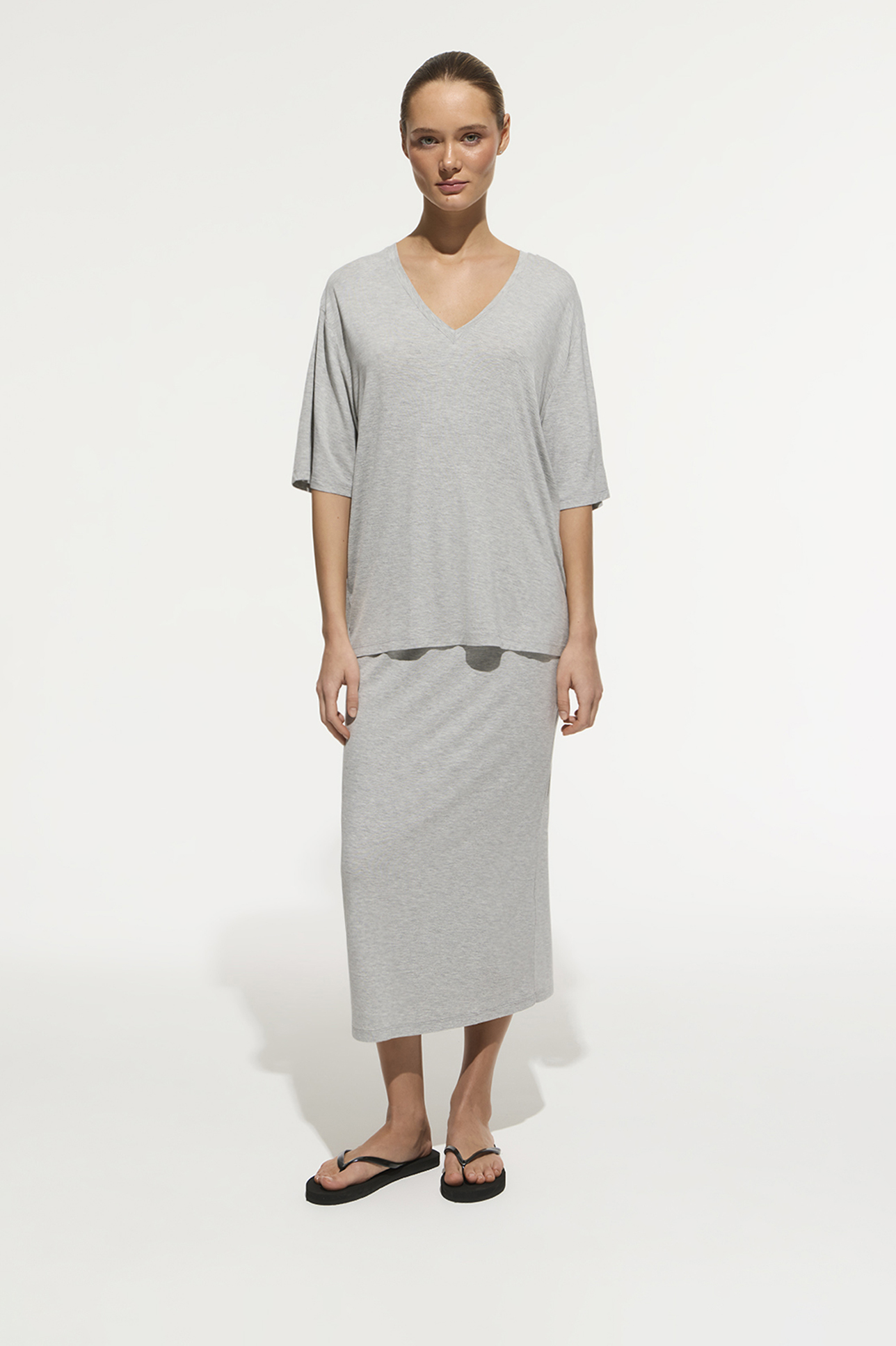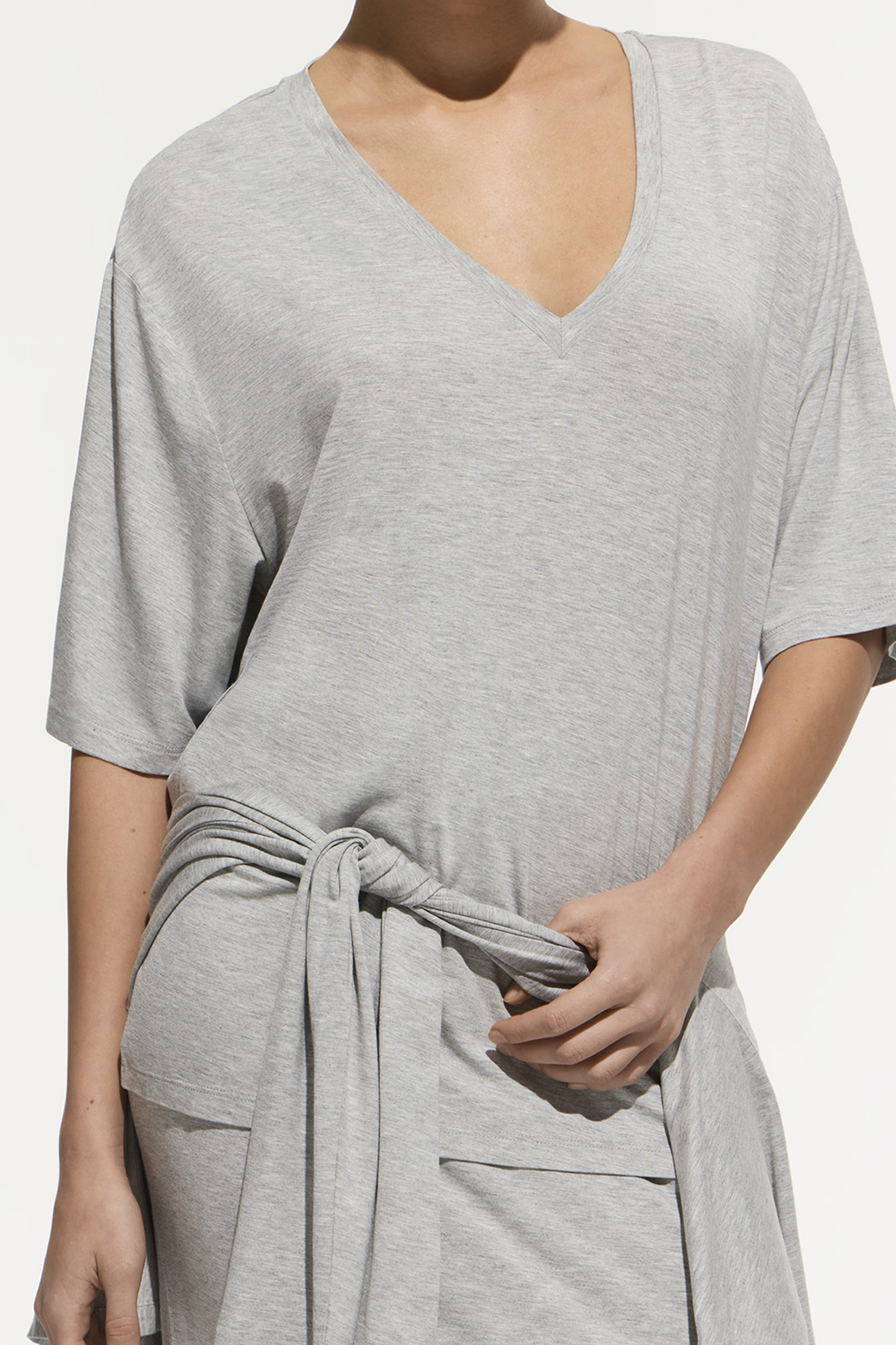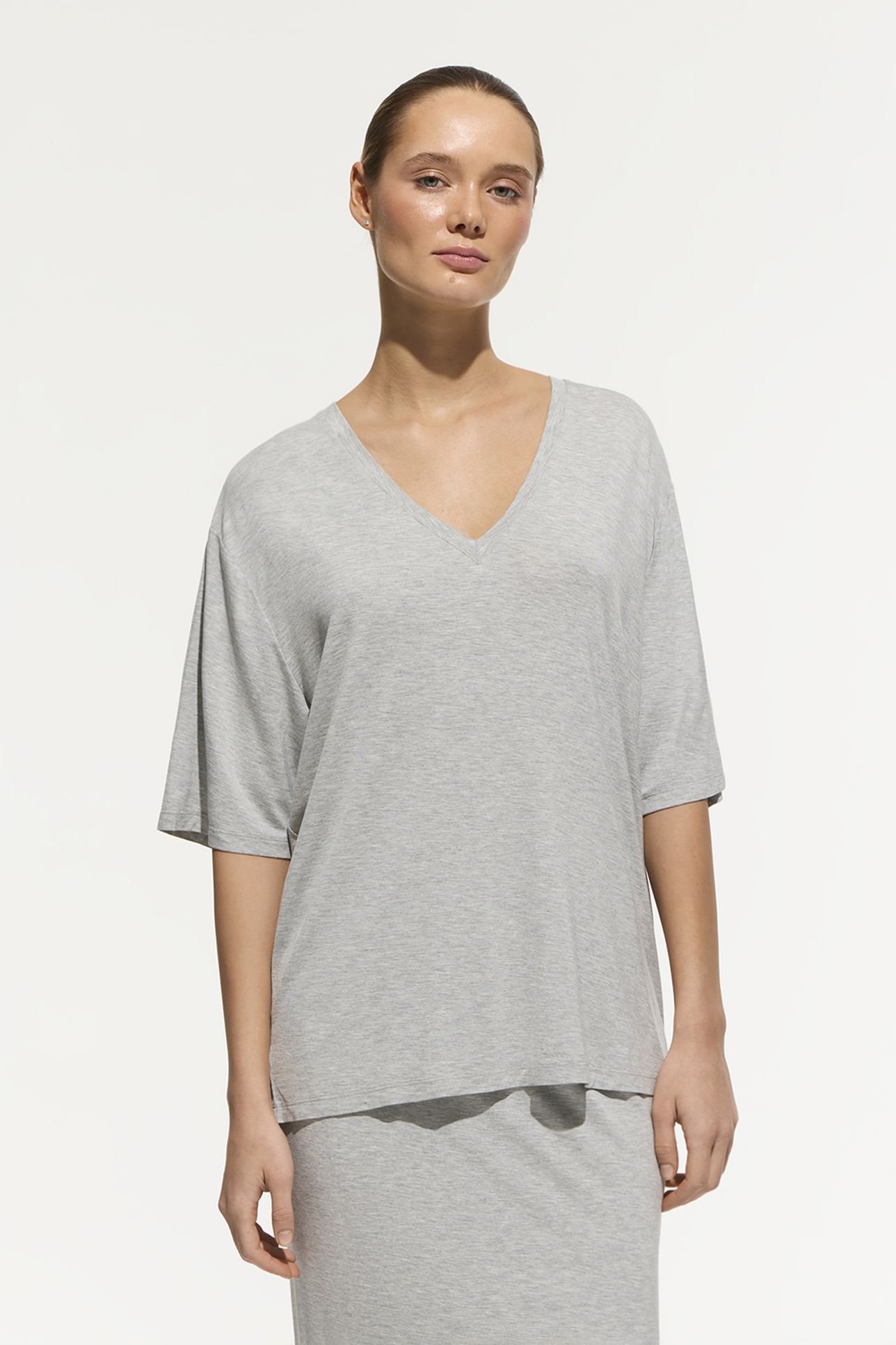 Футболка c V-образным вырезом из тонкого трикотажа серого цвета