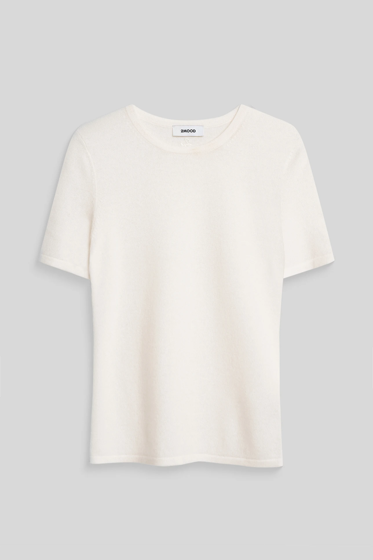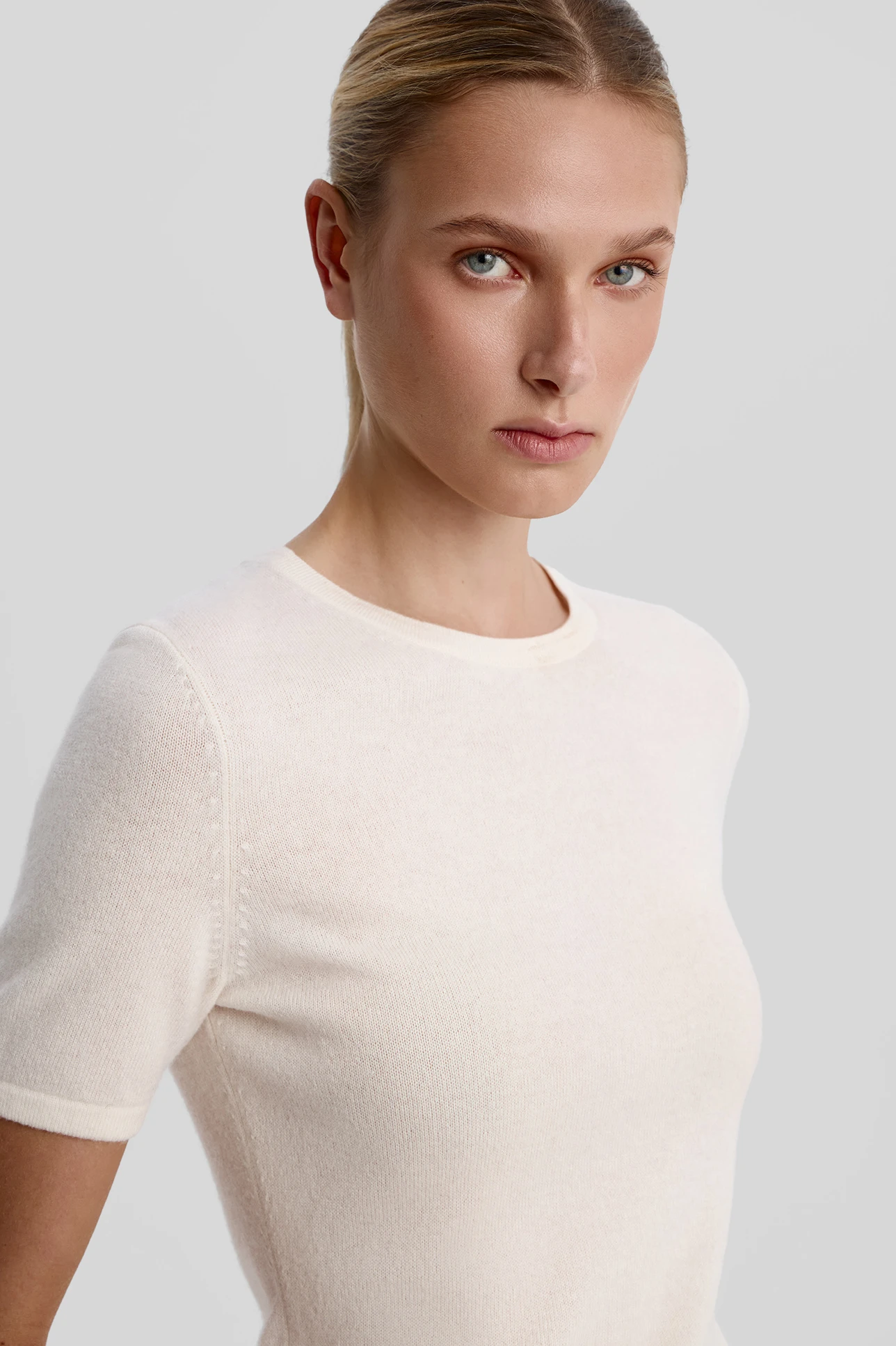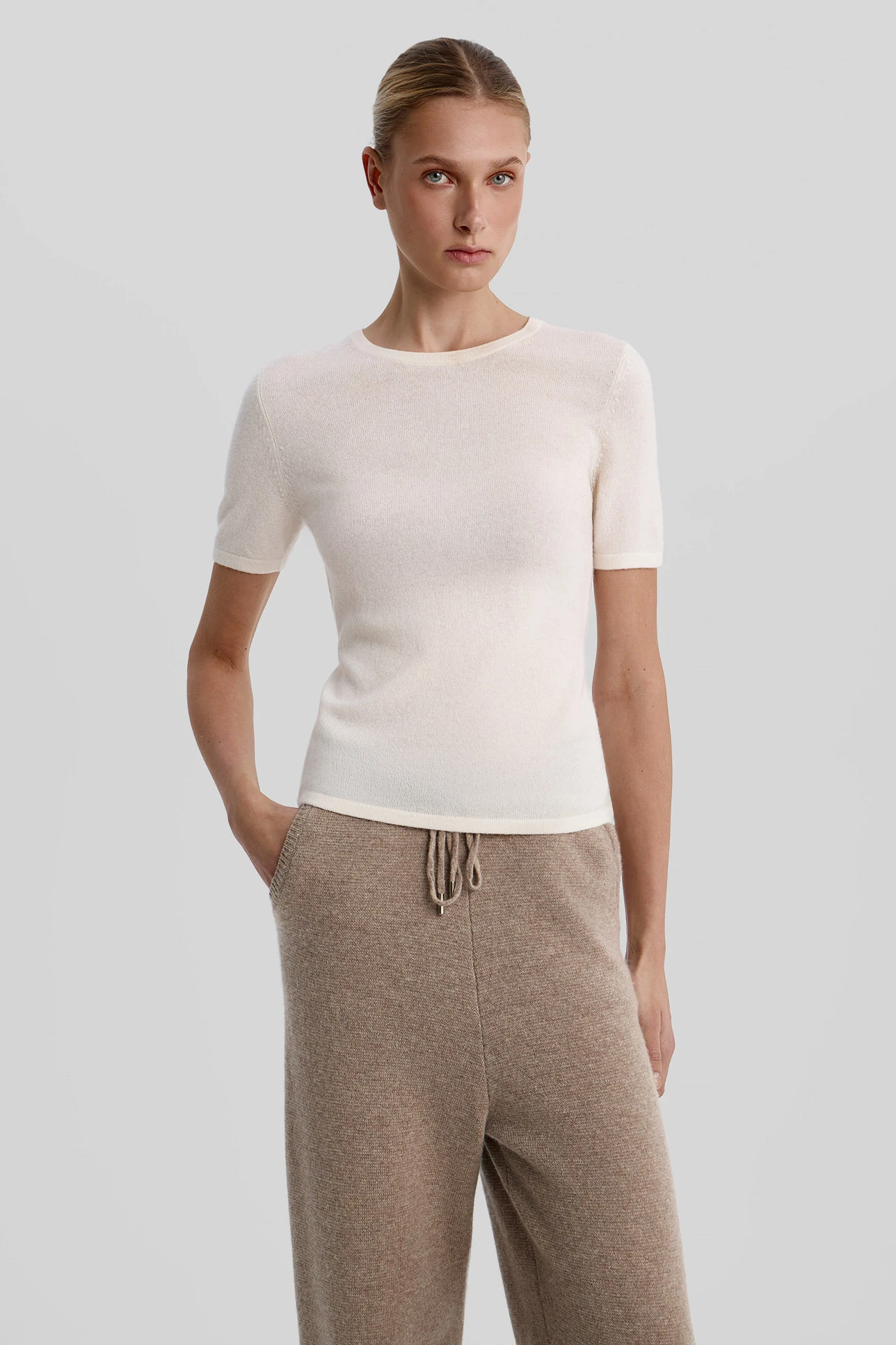 Футболка из шерсти с добавлением кашемира молочного цвета