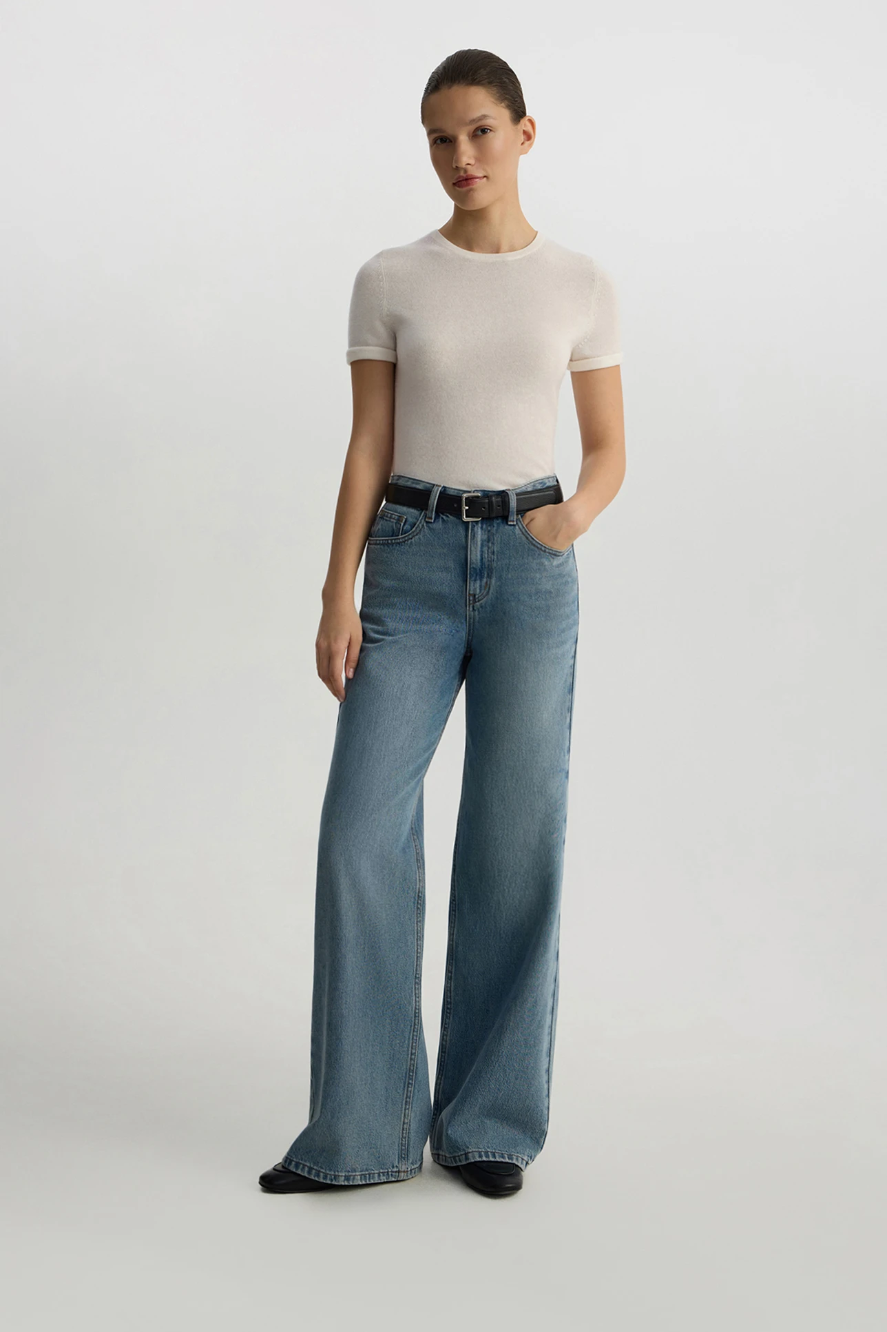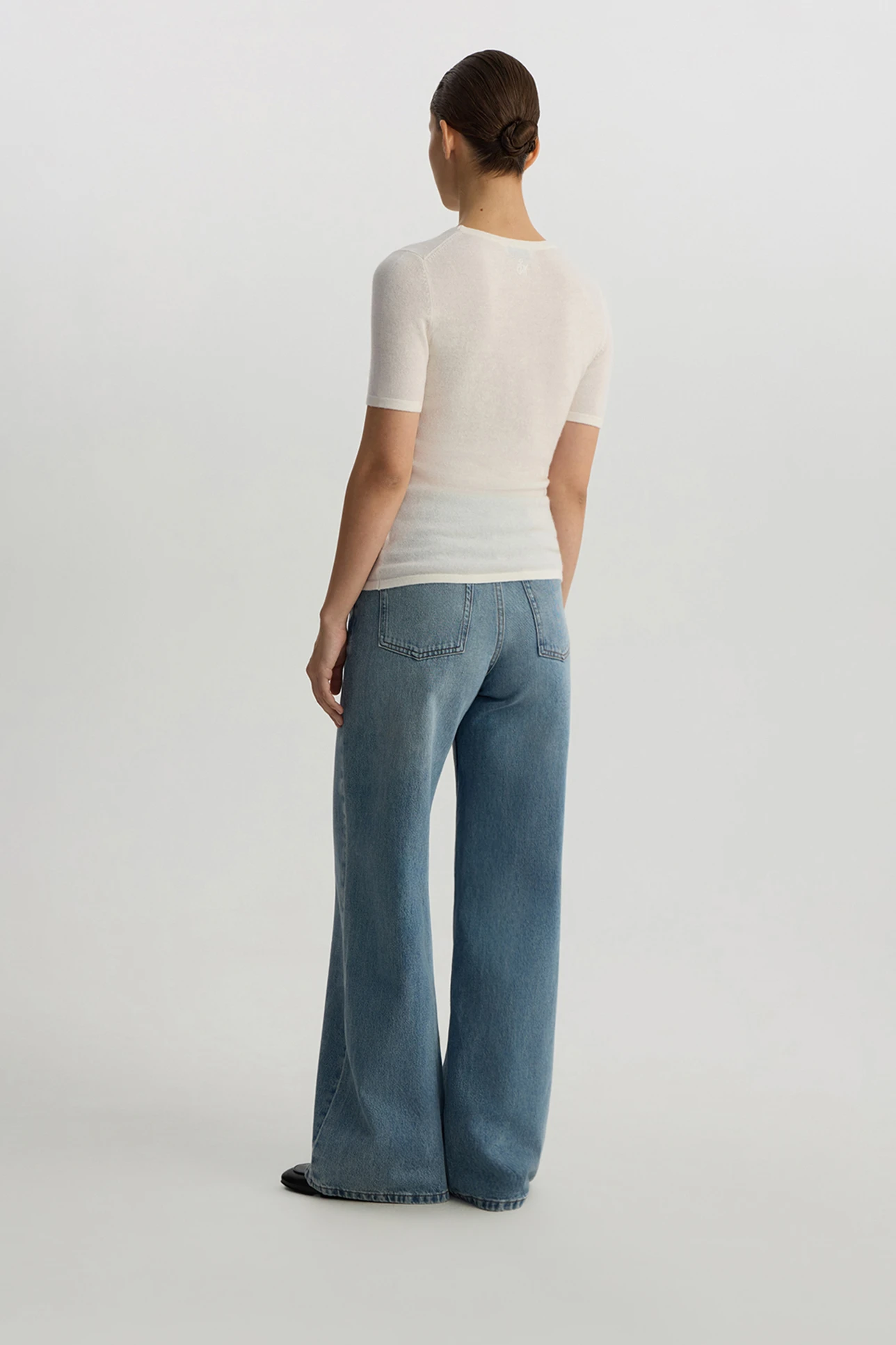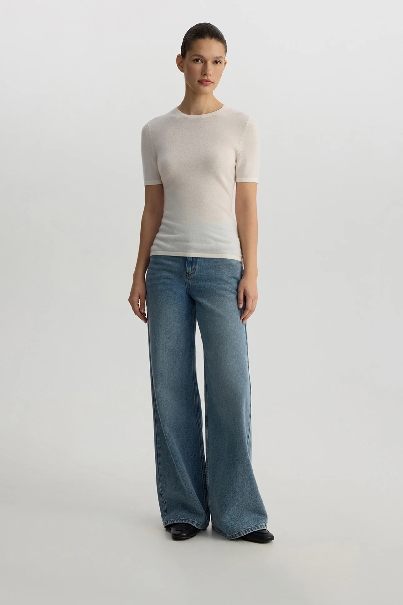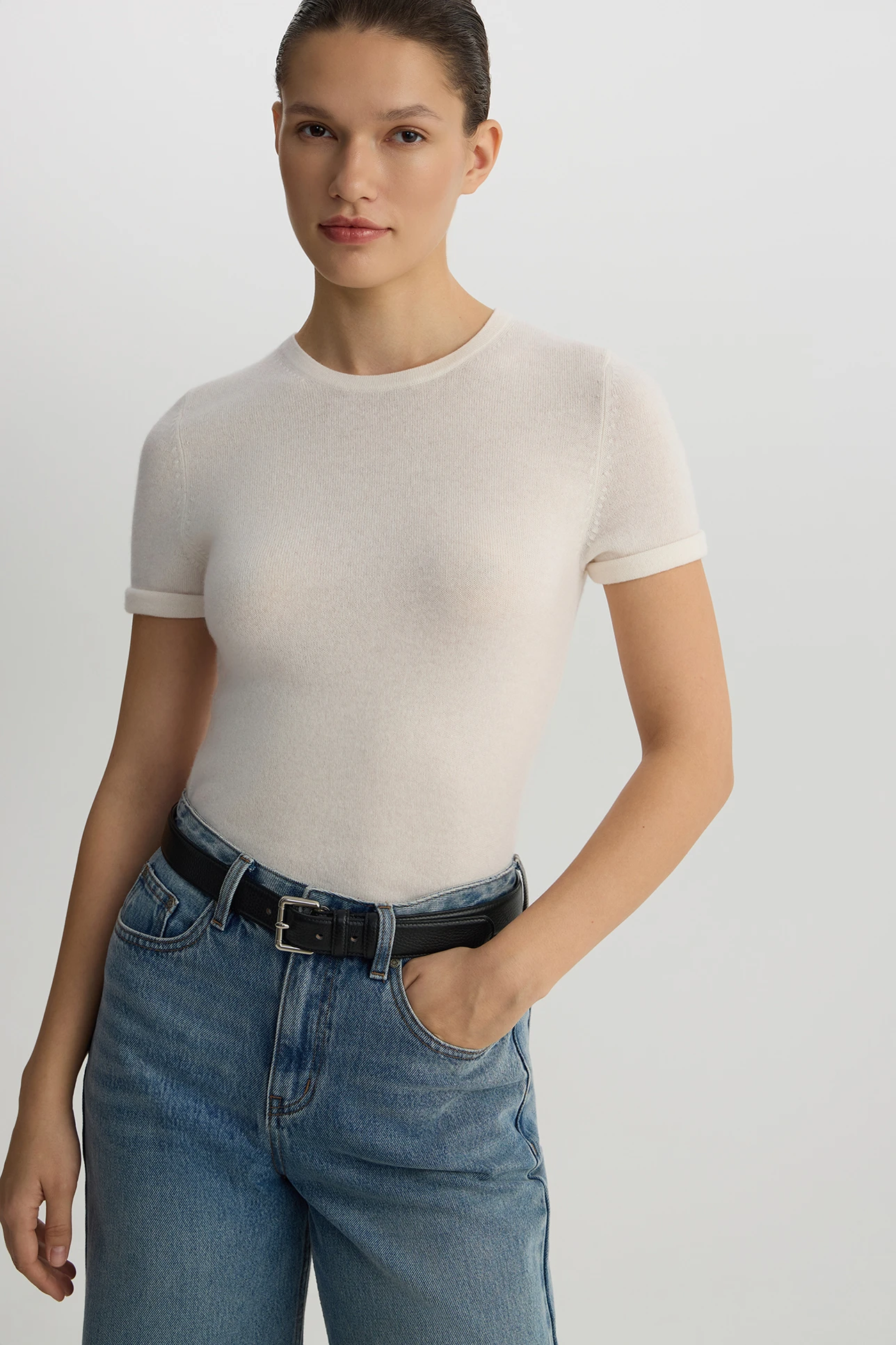 Футболка из шерсти с добавлением кашемира молочного цвета
