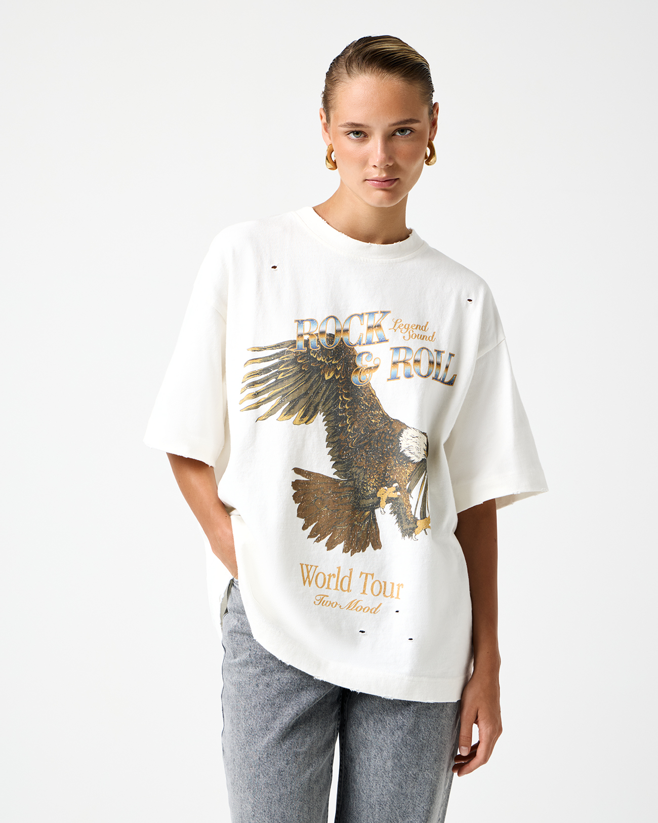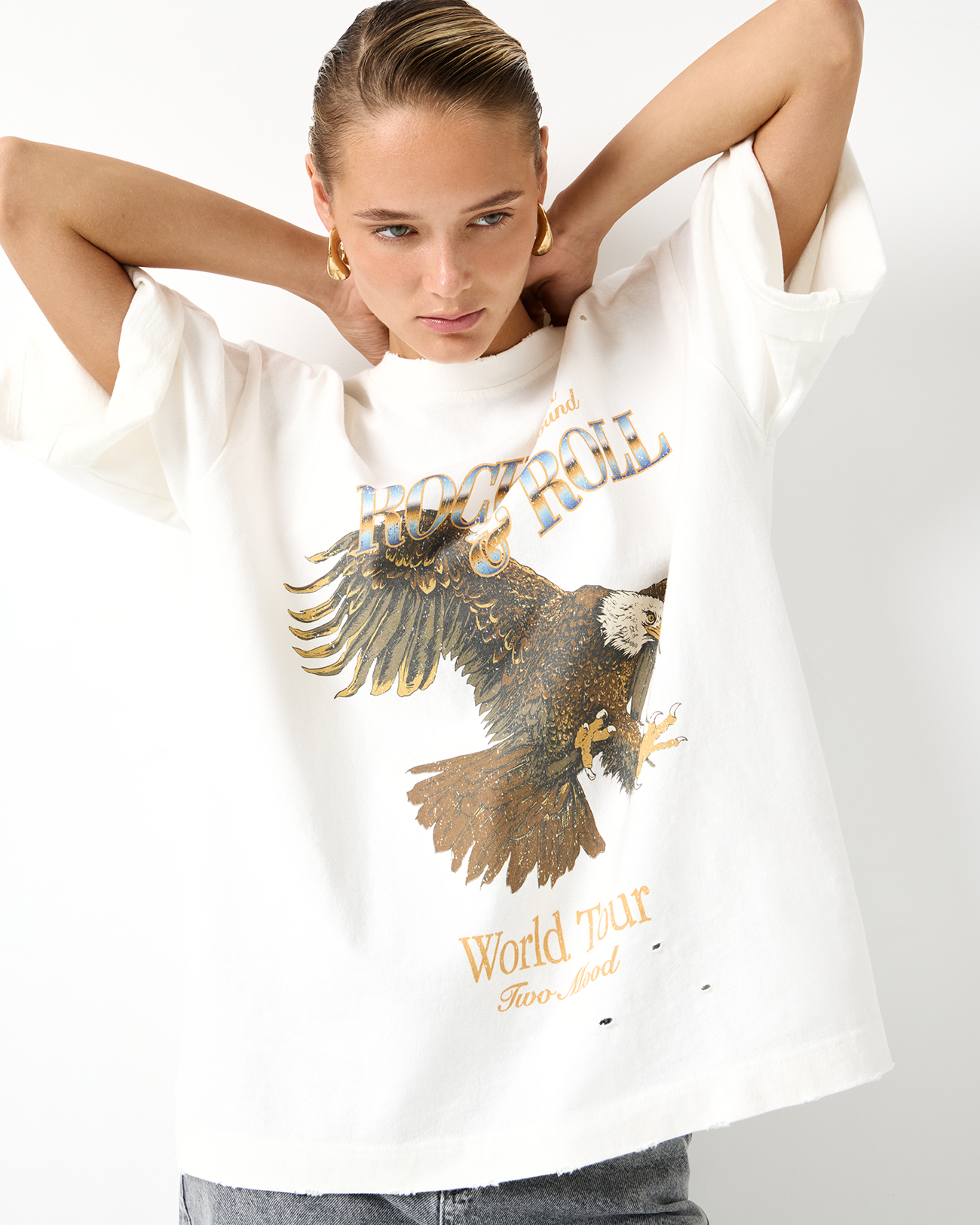 Футболка оверсайз с принтом Орел молочного цвета