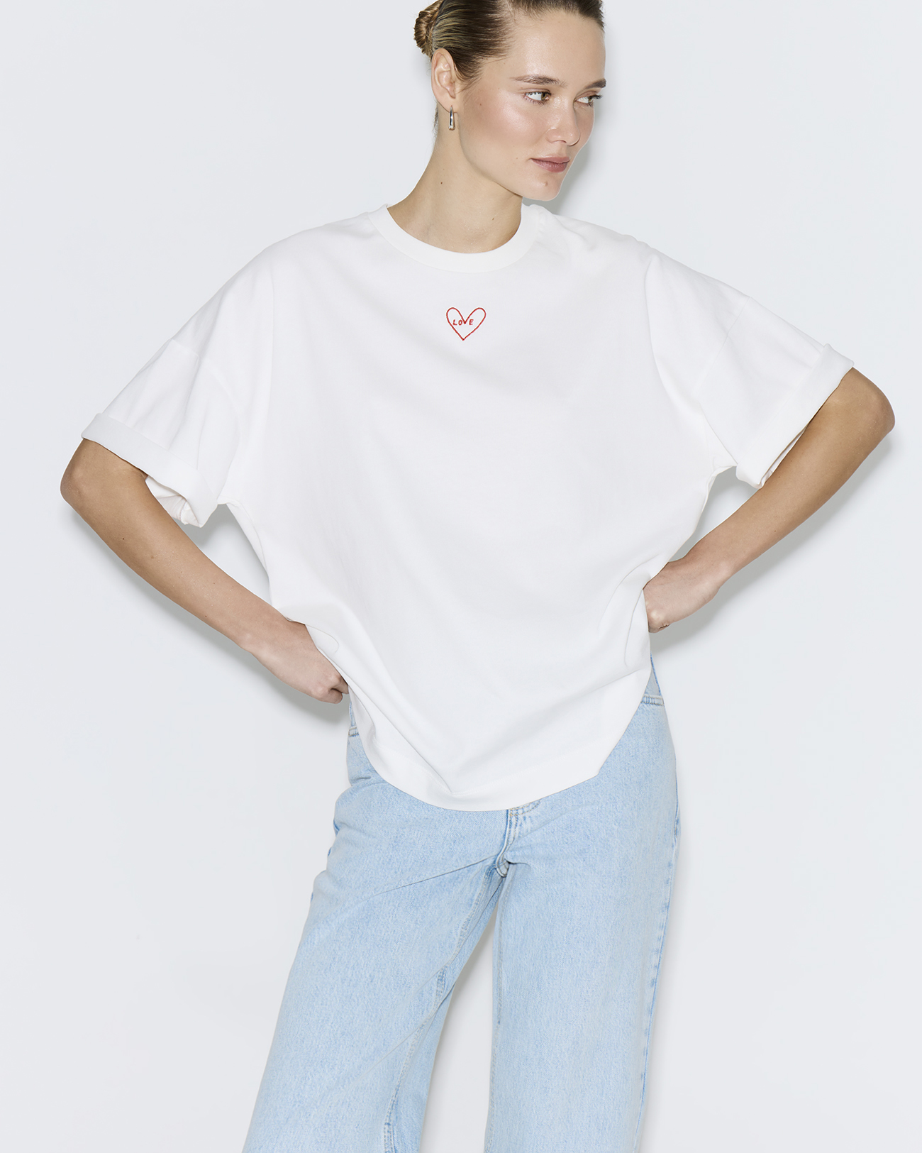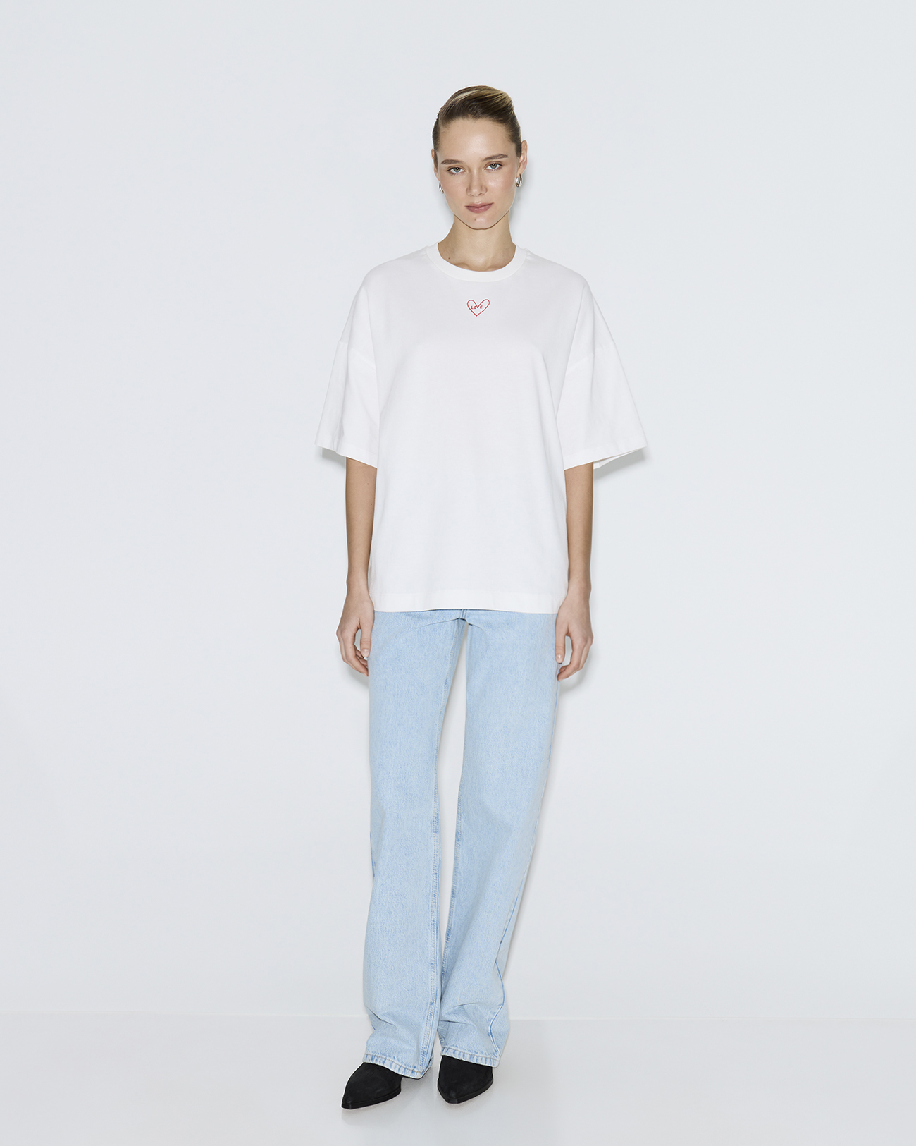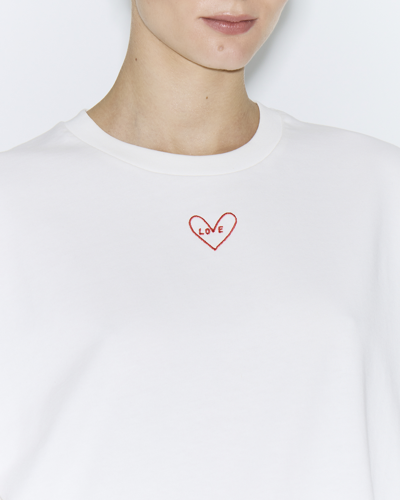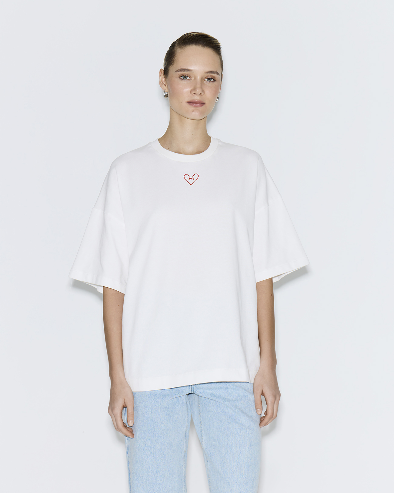 Футболка оверсайз с вышивкой LOVE молочного цвета