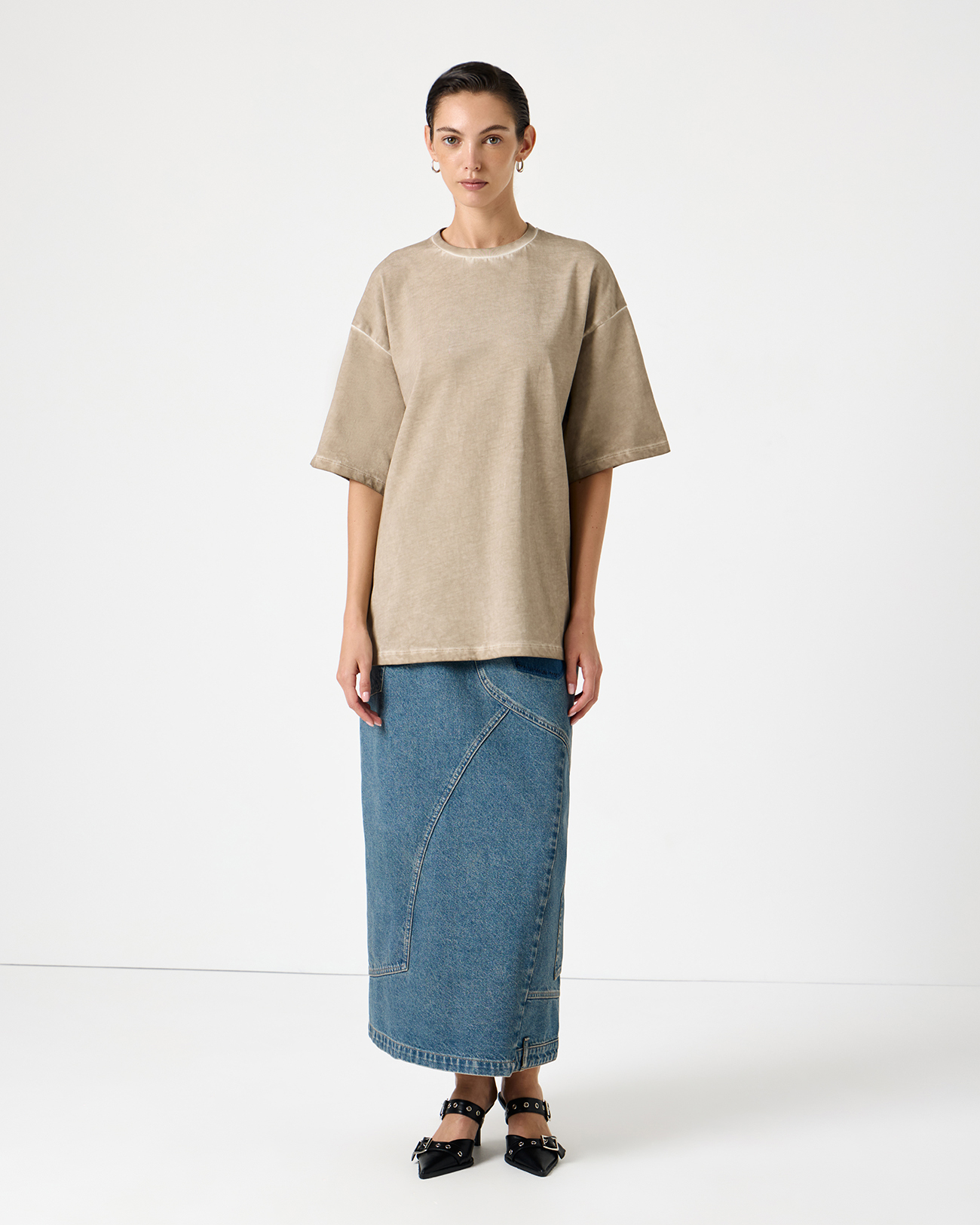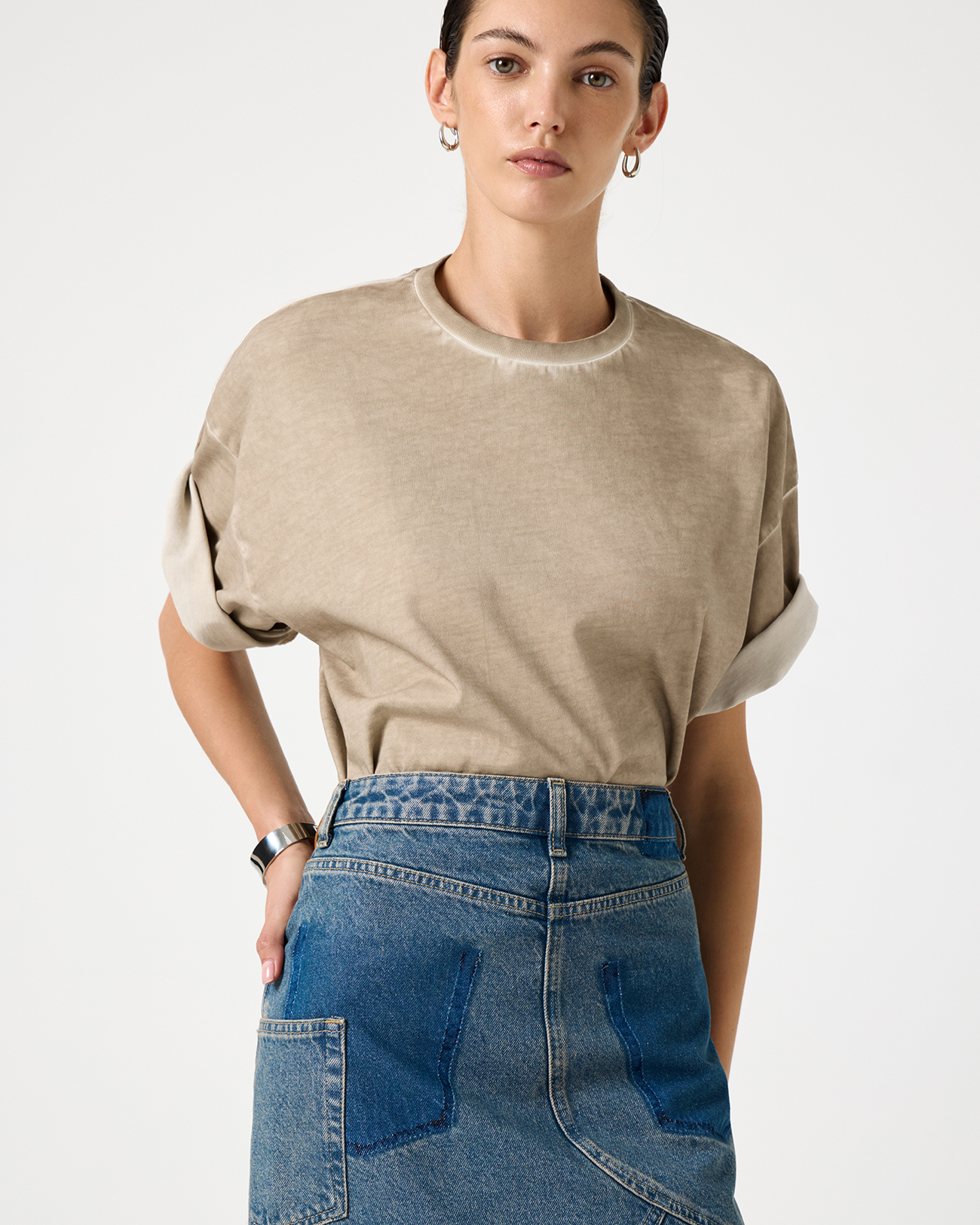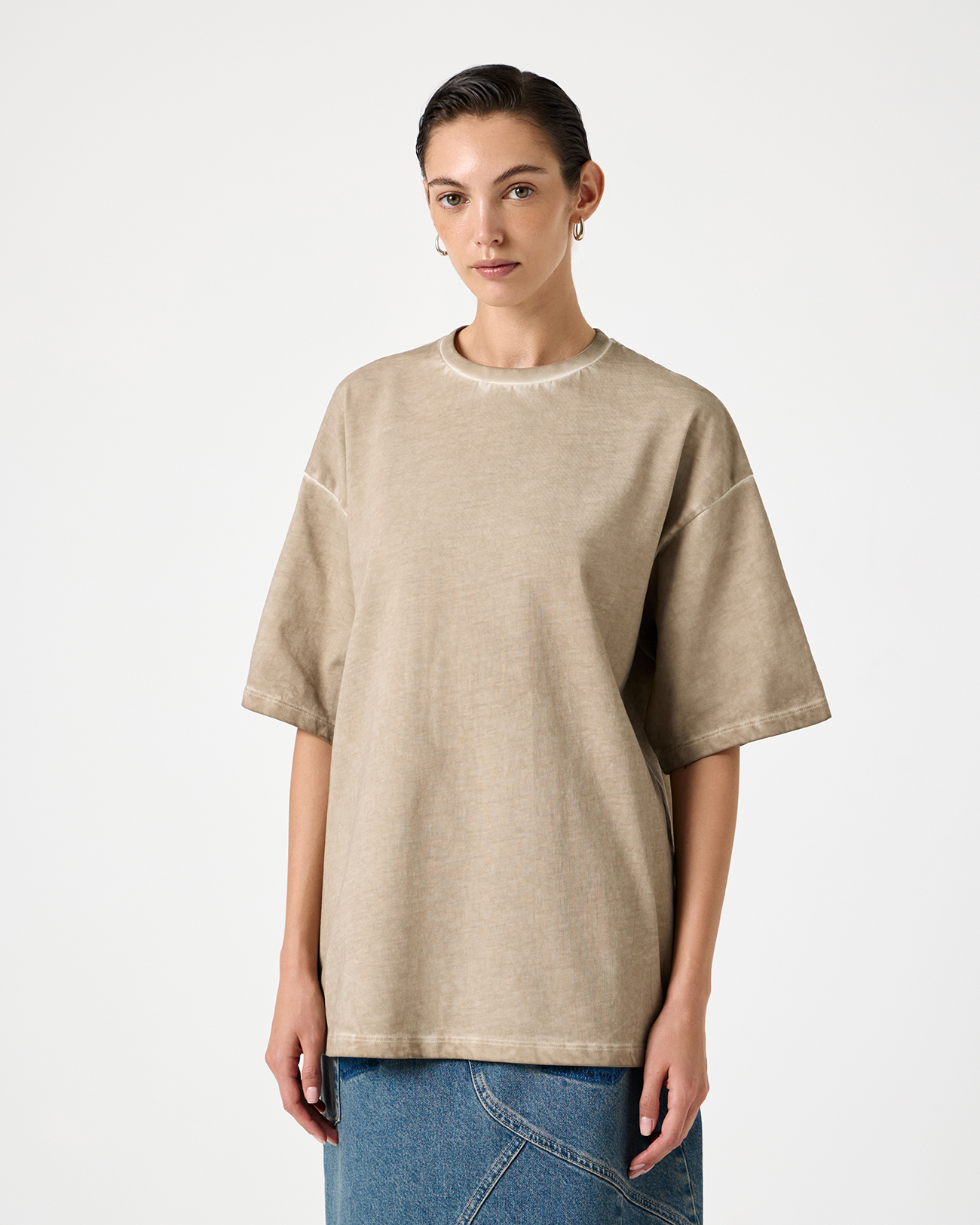 Футболка оверсайз бежевого цвета с выбеленными швами