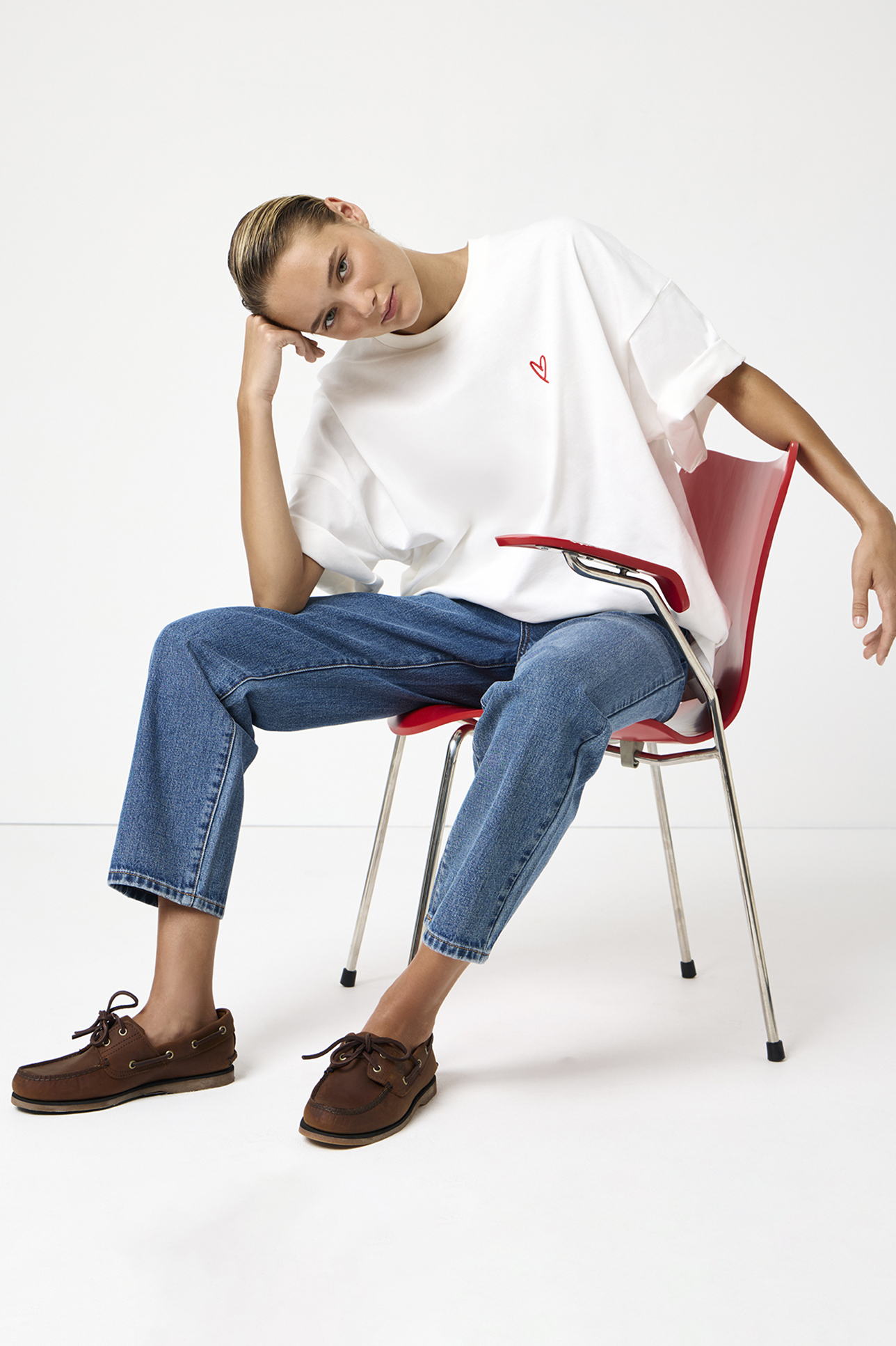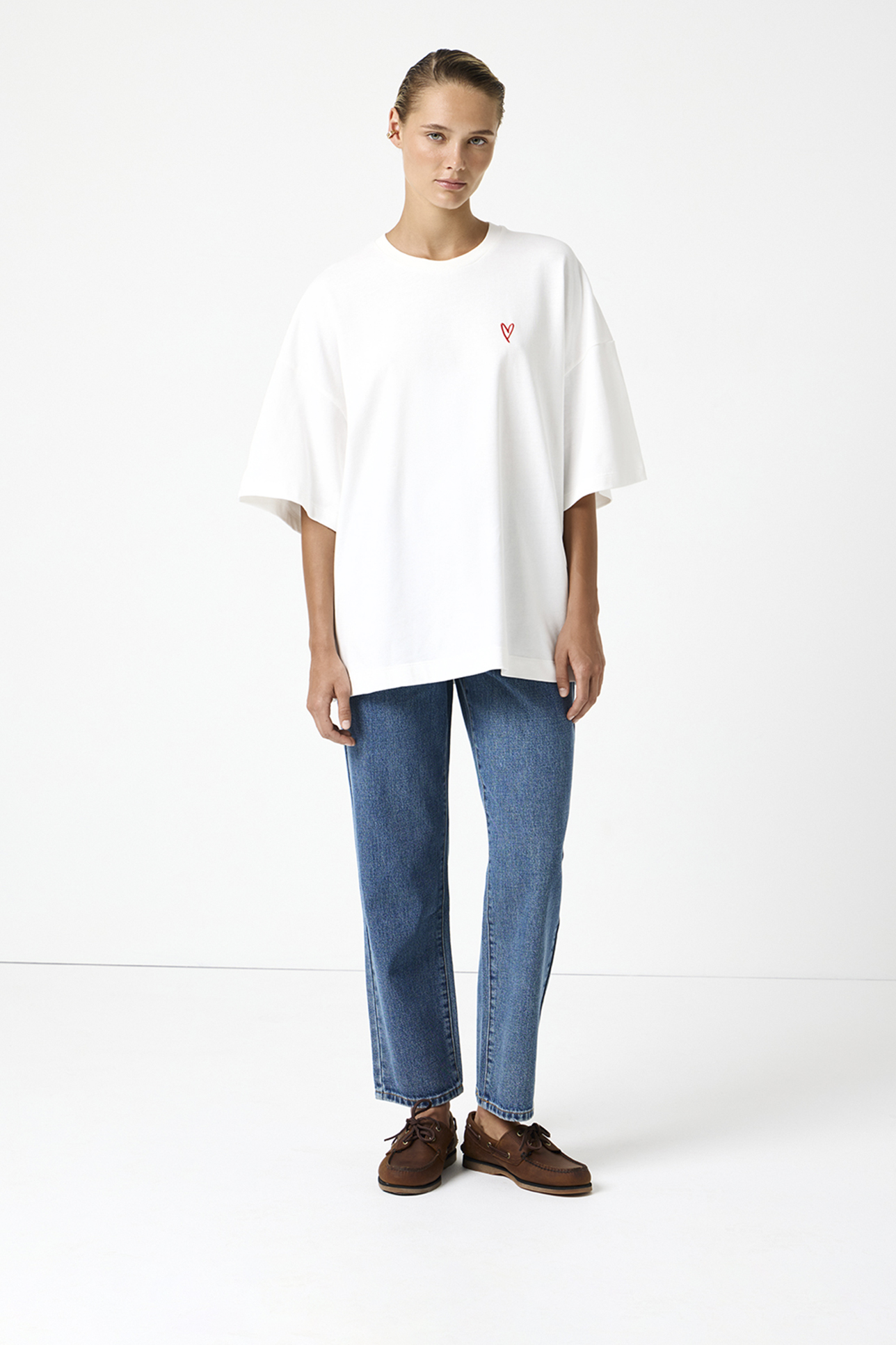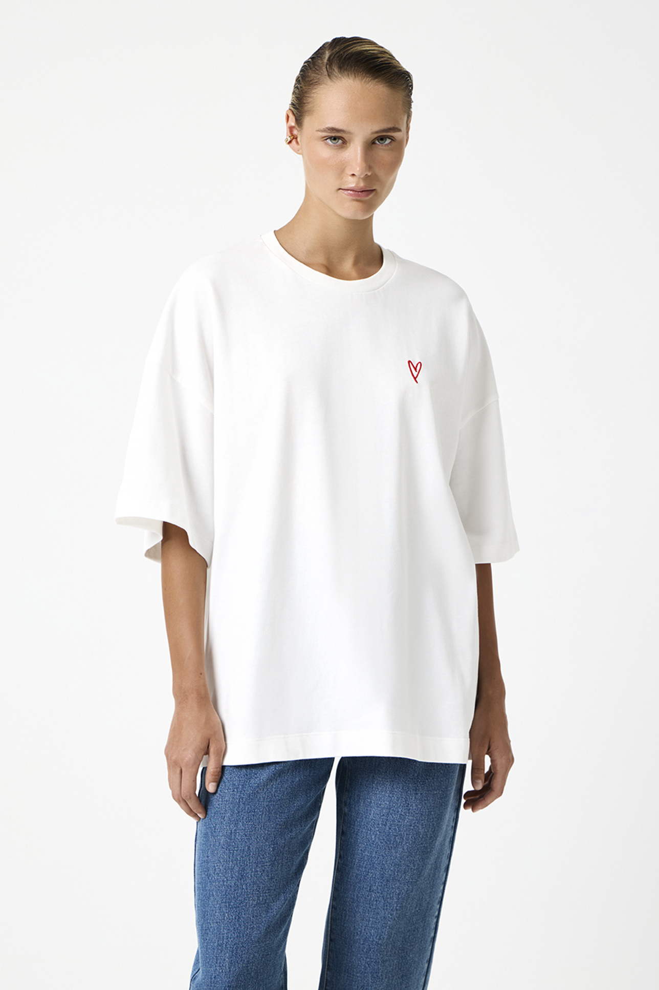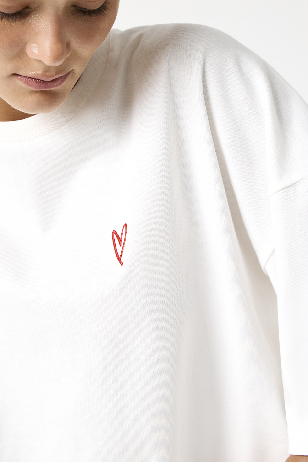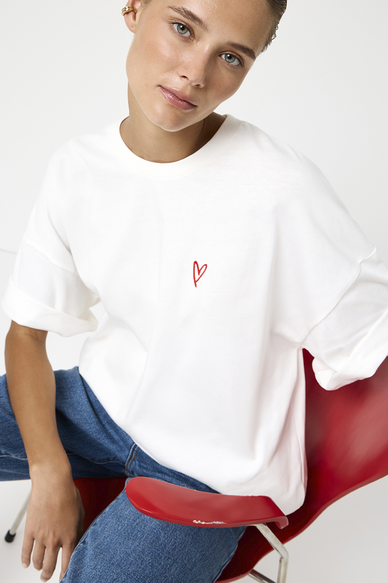 Футболка оверсайз с вышивкой "Сердце" молочного цвета