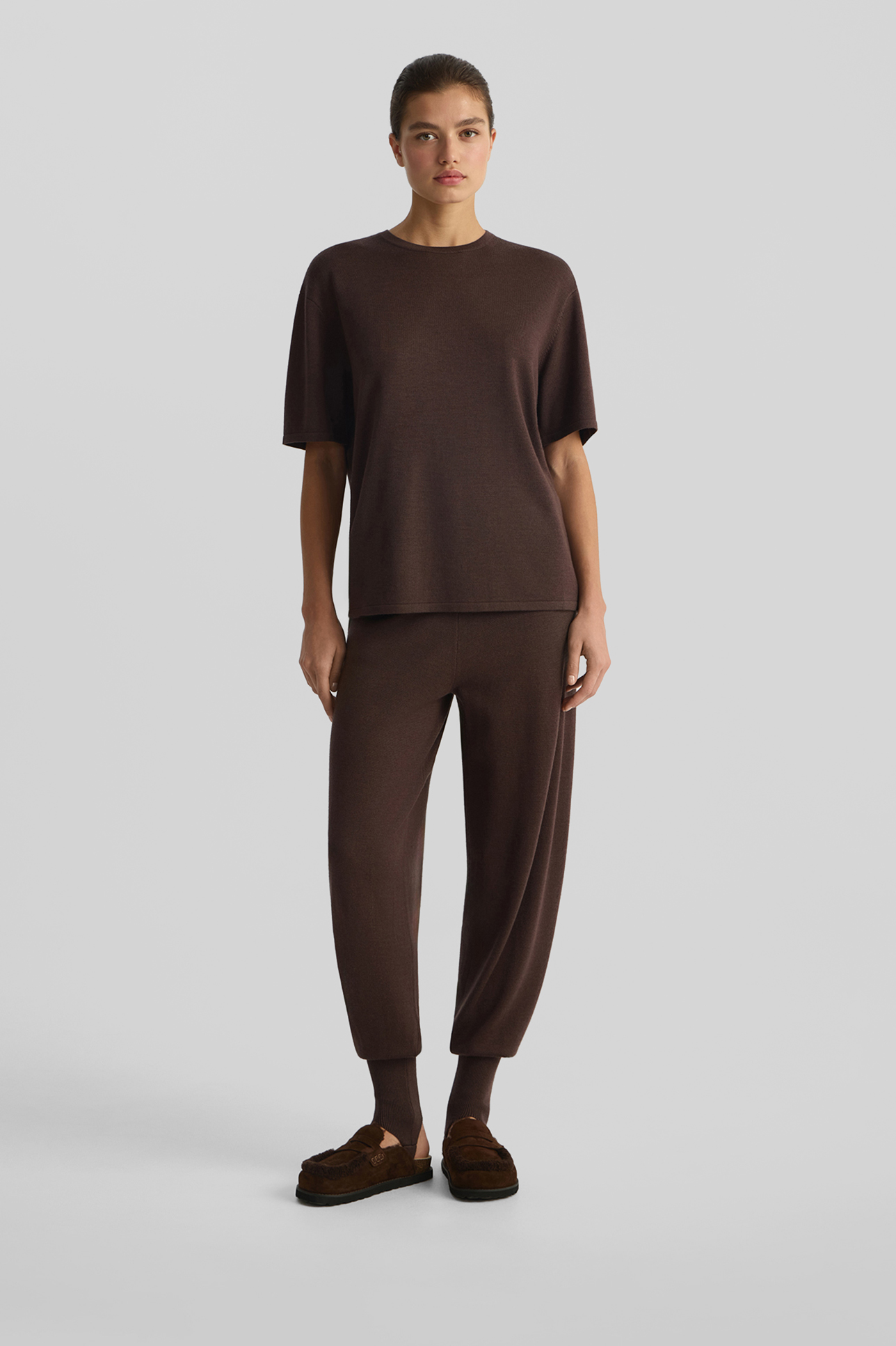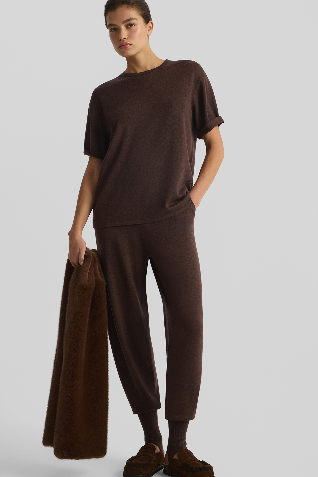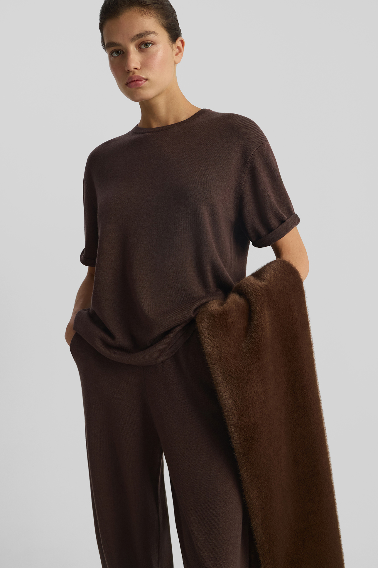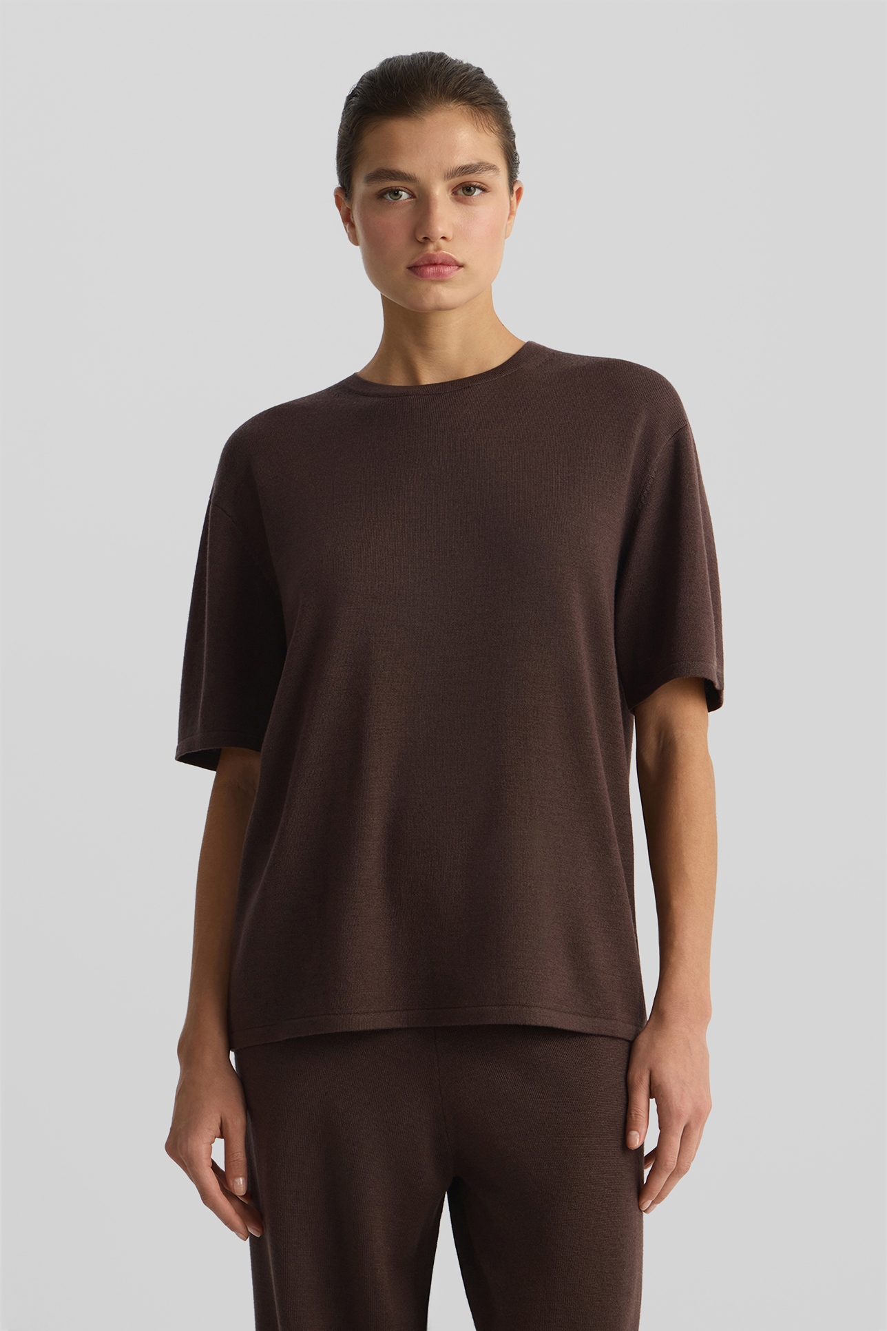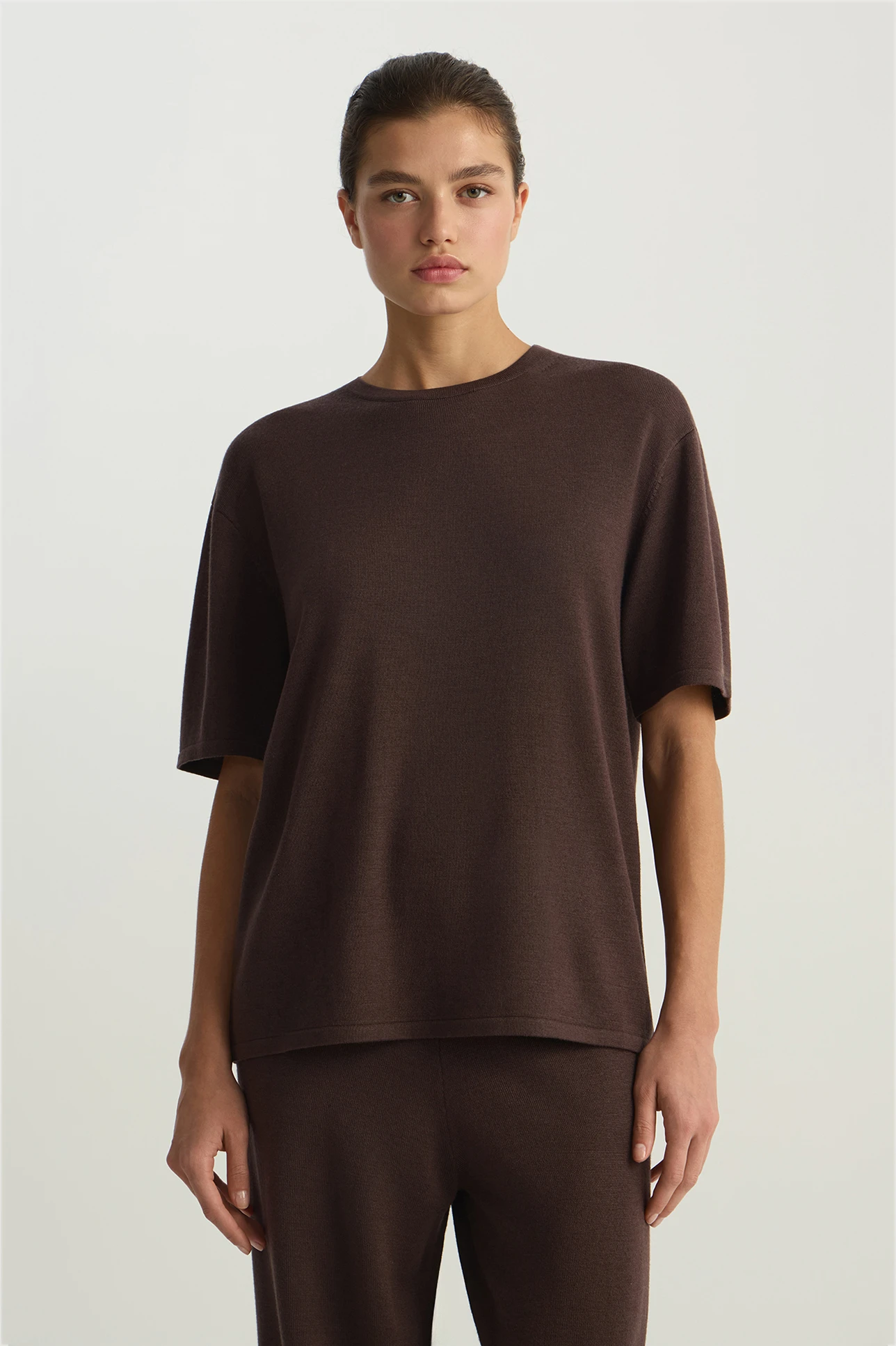 Футболка oversize из шерсти мериноса шоколадного цвета
