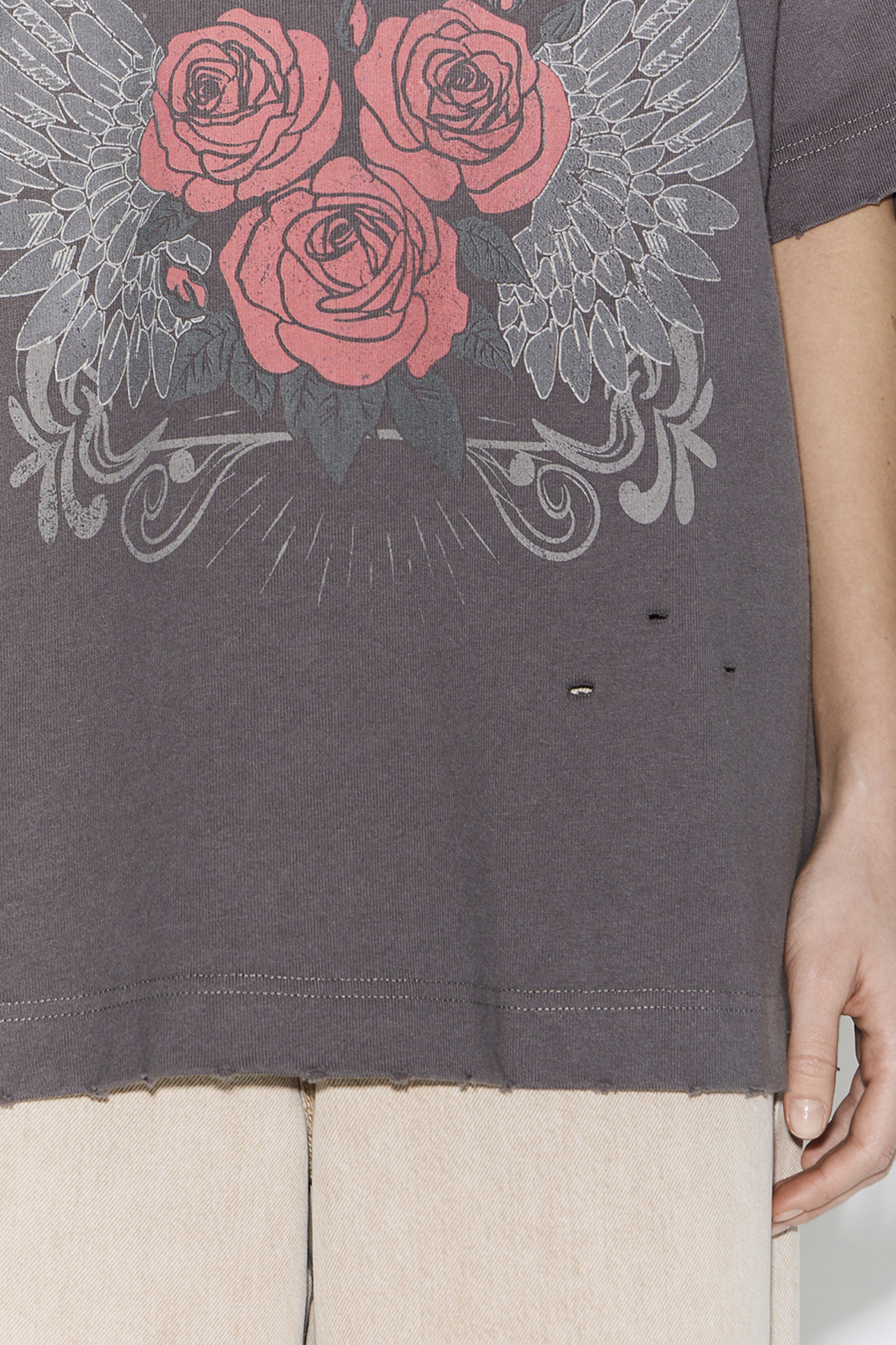 Футболка вареная с принтом "Розы" графитового цвета