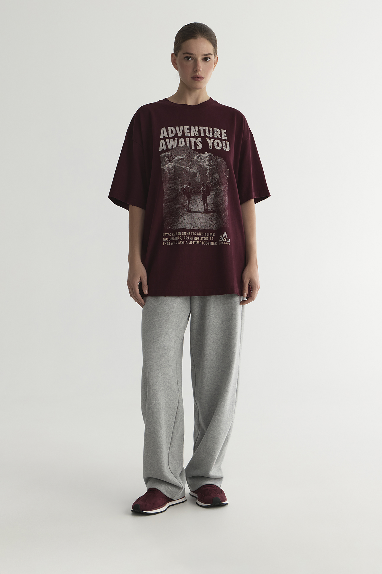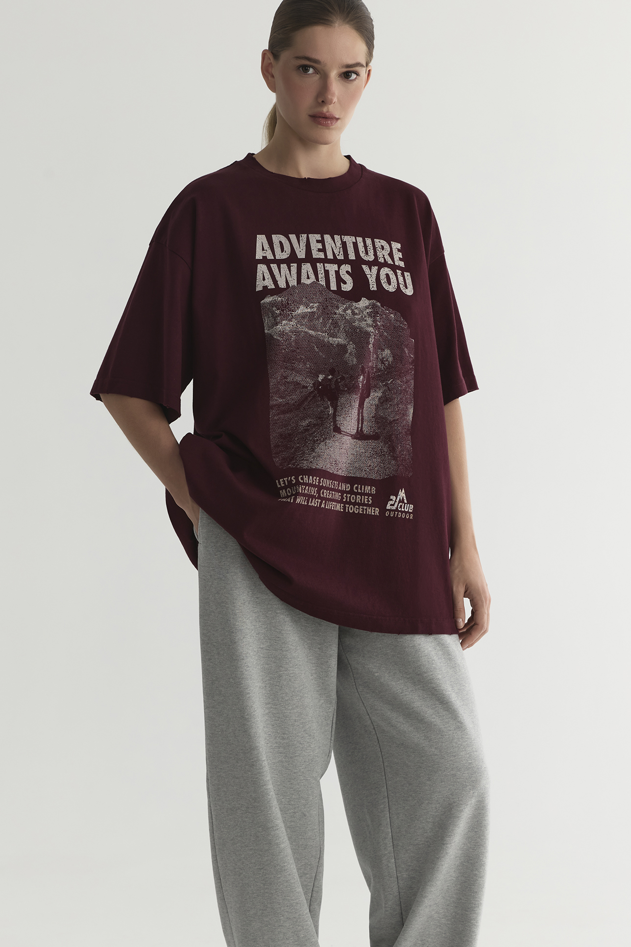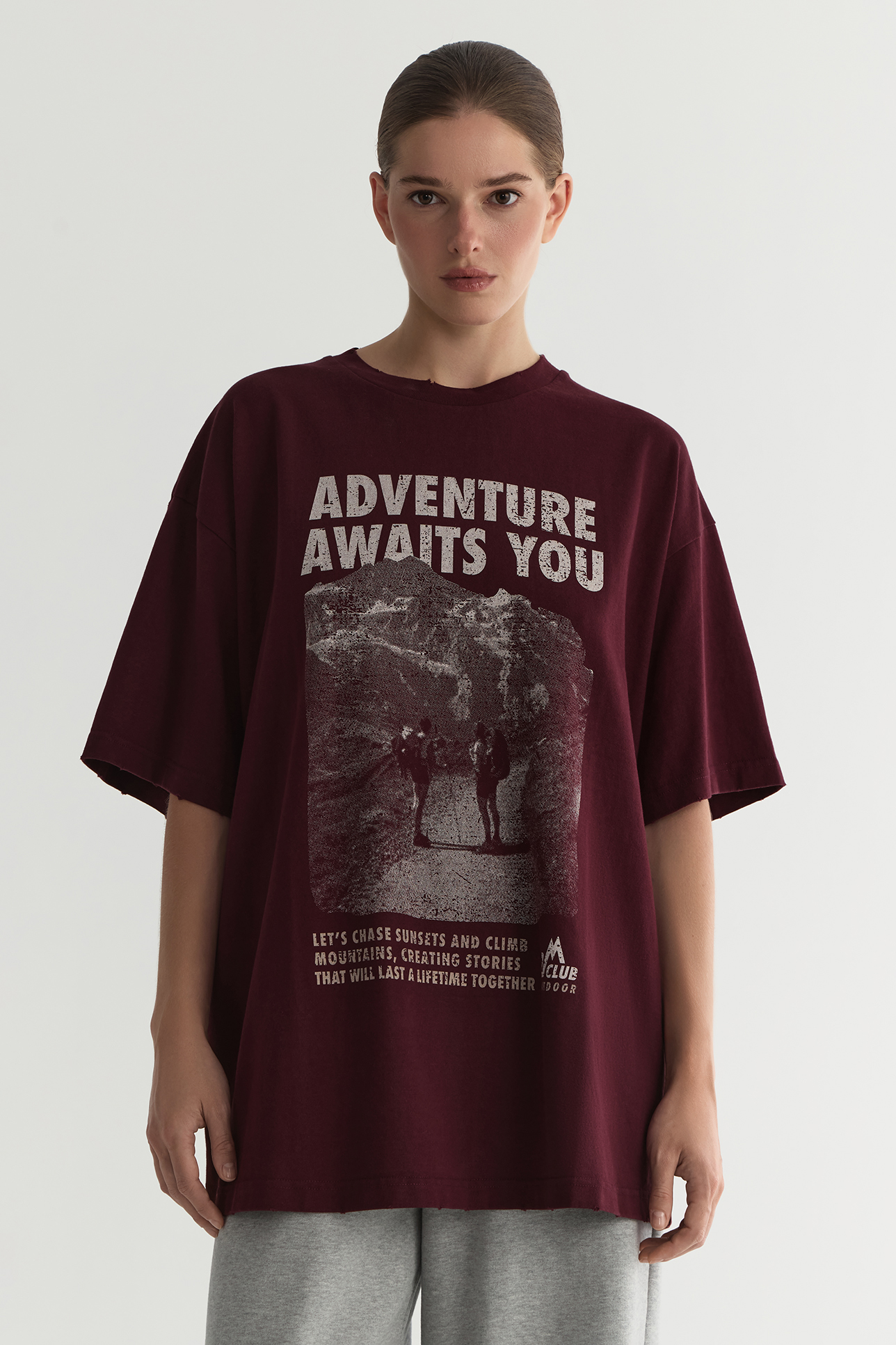 Футболка vintage vibe с принтом Adventure сливового цвета