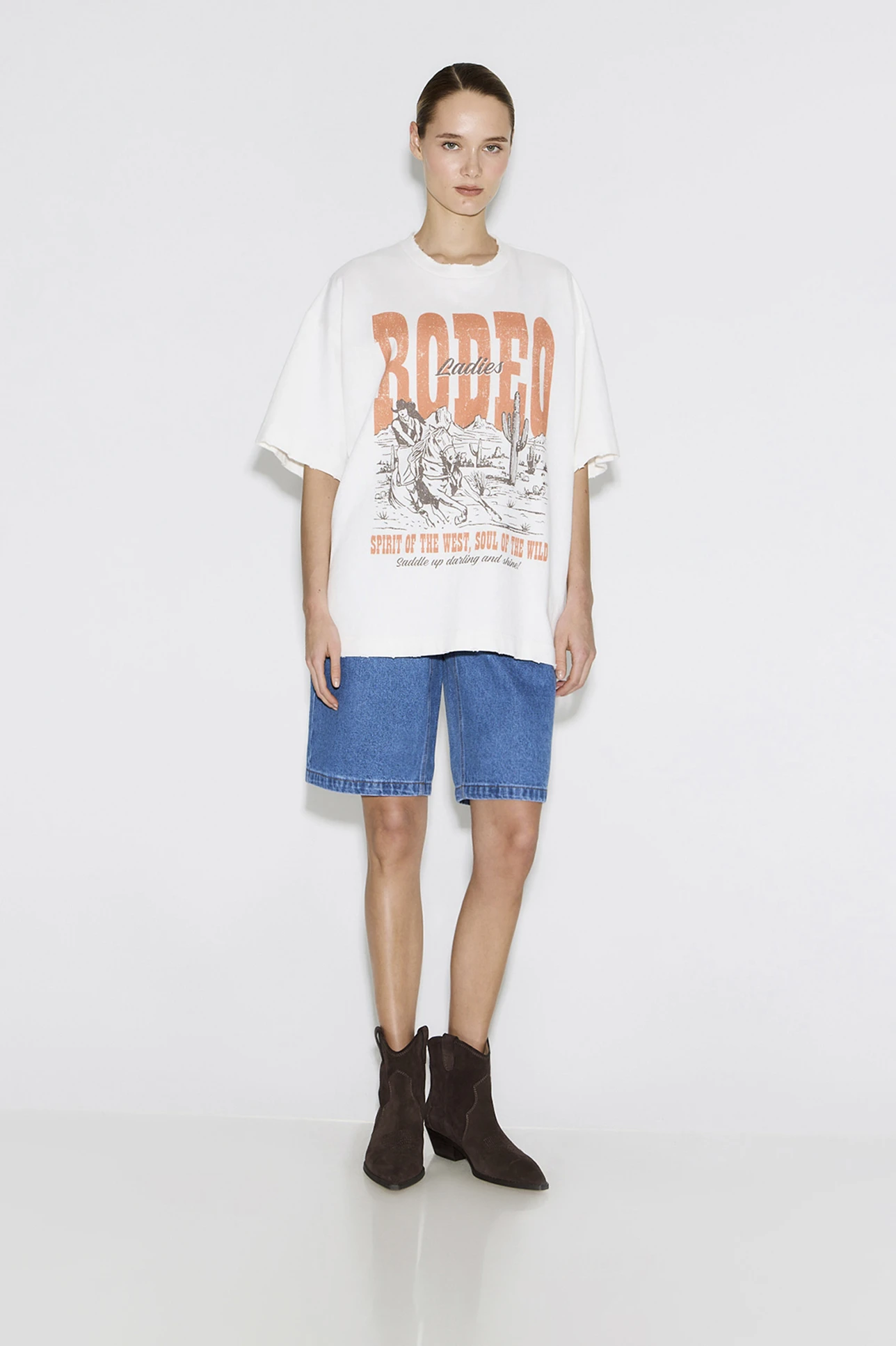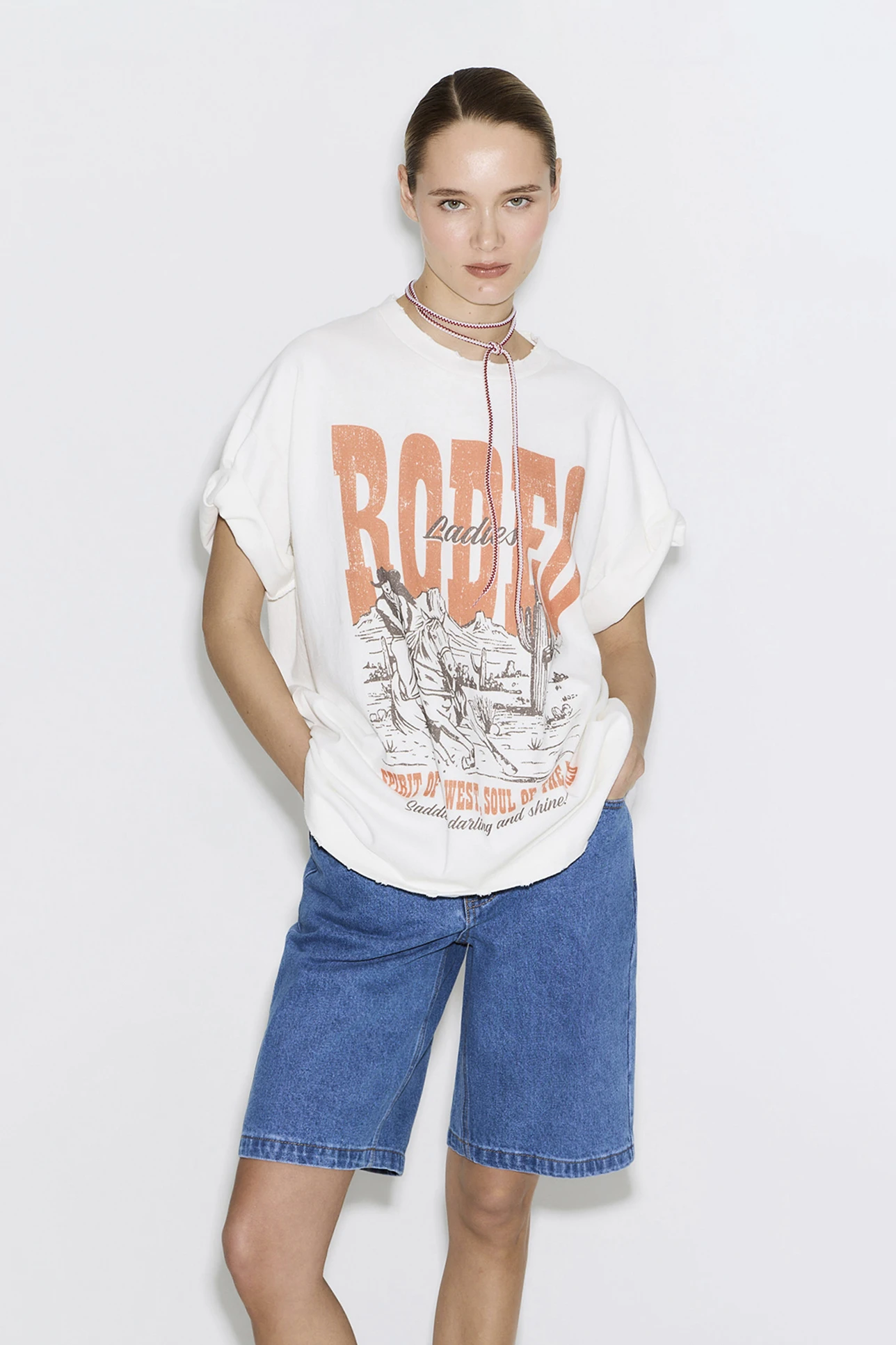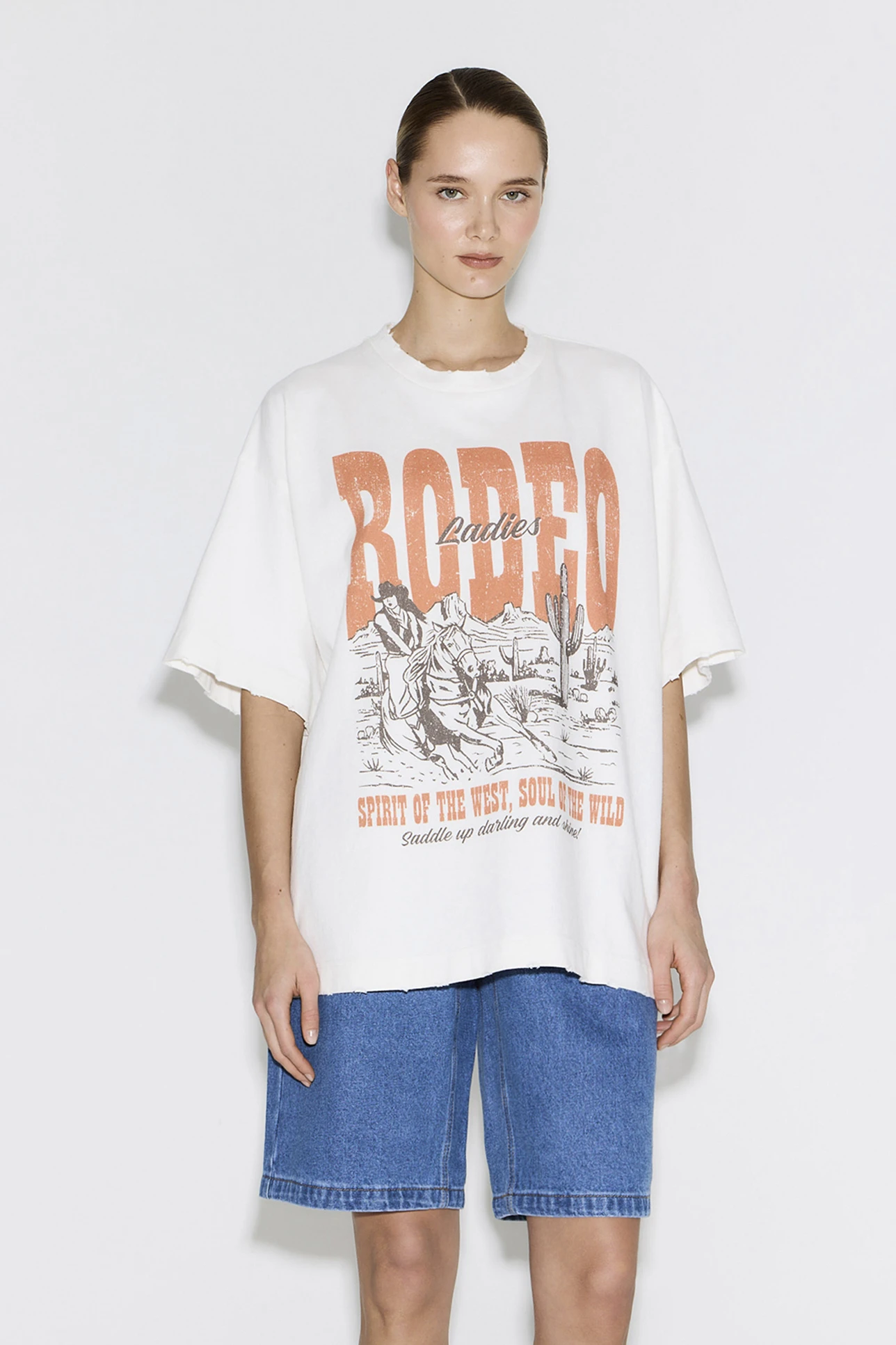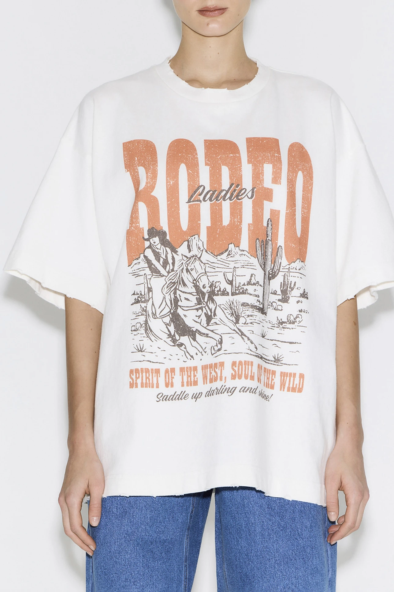 Футболка vintage vibe с принтом Rodeo молочного цвета