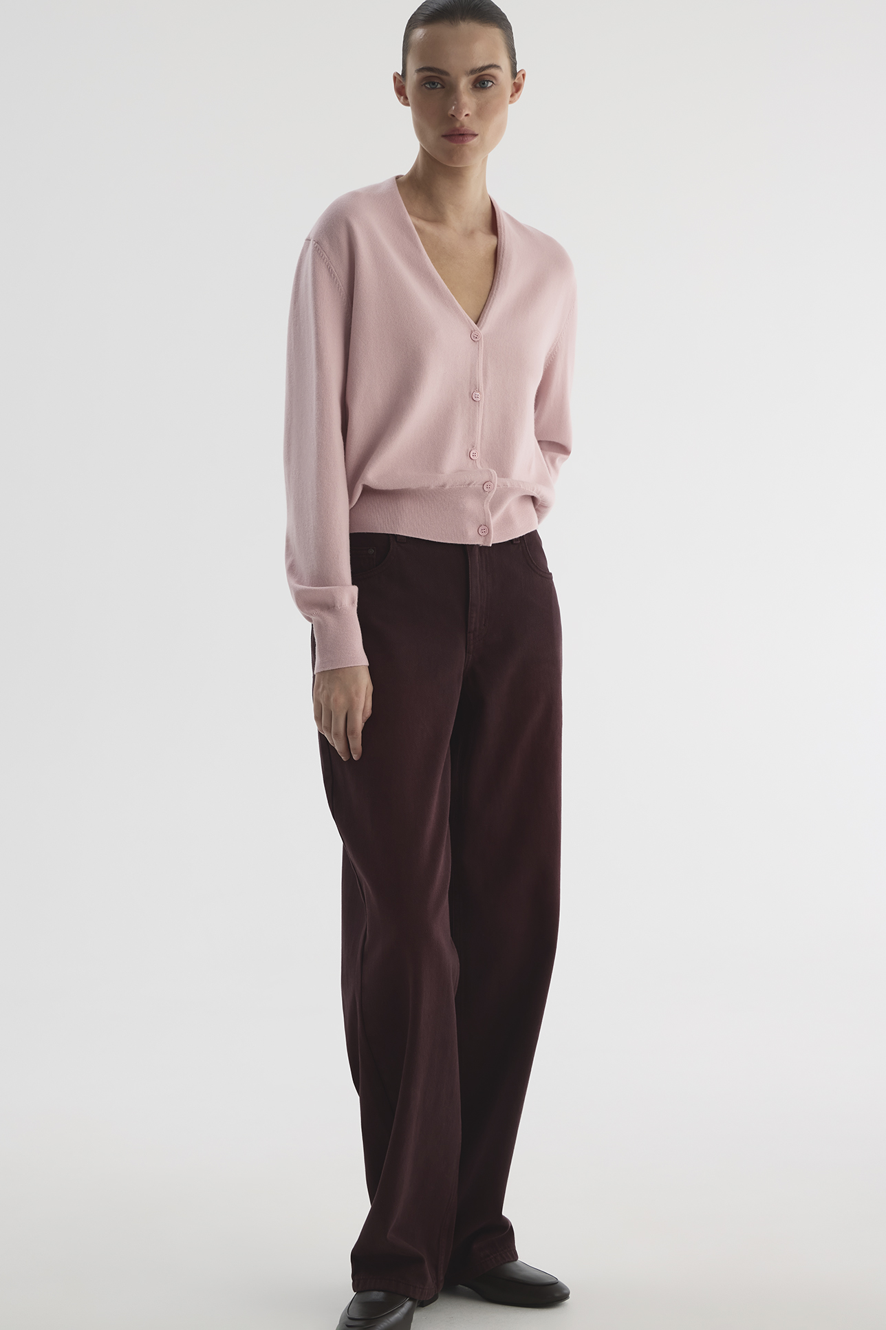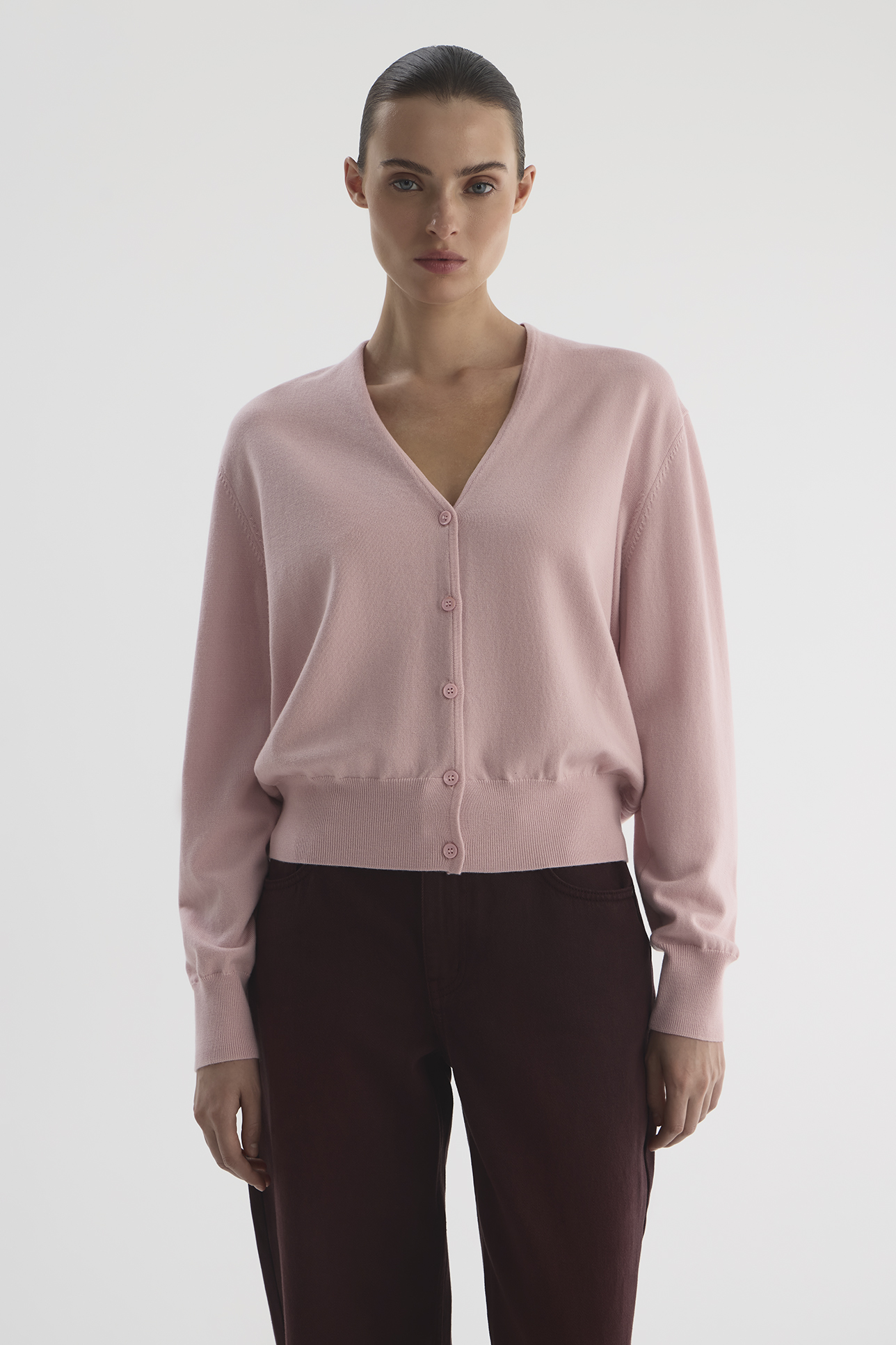 Кардиган из шерсти мериноса светло-розового цвета